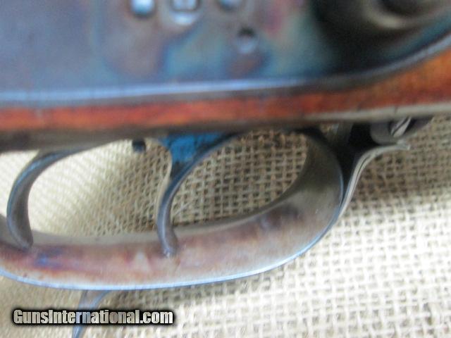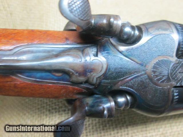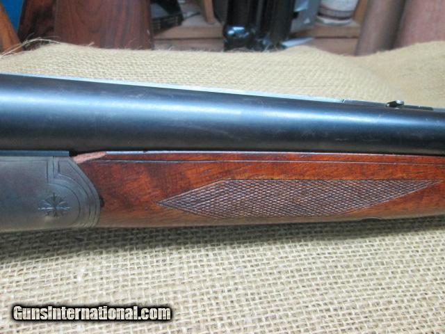 Description: H. OLBORF DRILLING , NITRO PROOFED 16 GA. OVER 9.3X72 • 2 5/8 CHAMBERS • 27 INCH BARRELS • PENNISULA LOCKS WITH REBOUNDING HAMMERS • UNDER LEVER ACTION • FOLDING RIFLE SIGHT • MATTED RIB WITH DOLLS HEAD THIRD FASTENER • DOUBLE TRIGGERS • 90% PLUS OF CASE COLOR REMAINING • SLING SWIVELS • DEALY LEVER FORE ARM RELEASE • 13 ¾ LOP • VERY GOOD ORIGINAL CONDITION OVERALL PRICE 1500.00 , SHIPPING 40.00 N0 CREDIT CARDS TAKEN CHECKS TAKE TEN DAYS TO CLEAR AND MONEY ORDERS TAKE 5, CALL US AT 828=698=8804 SOLD |