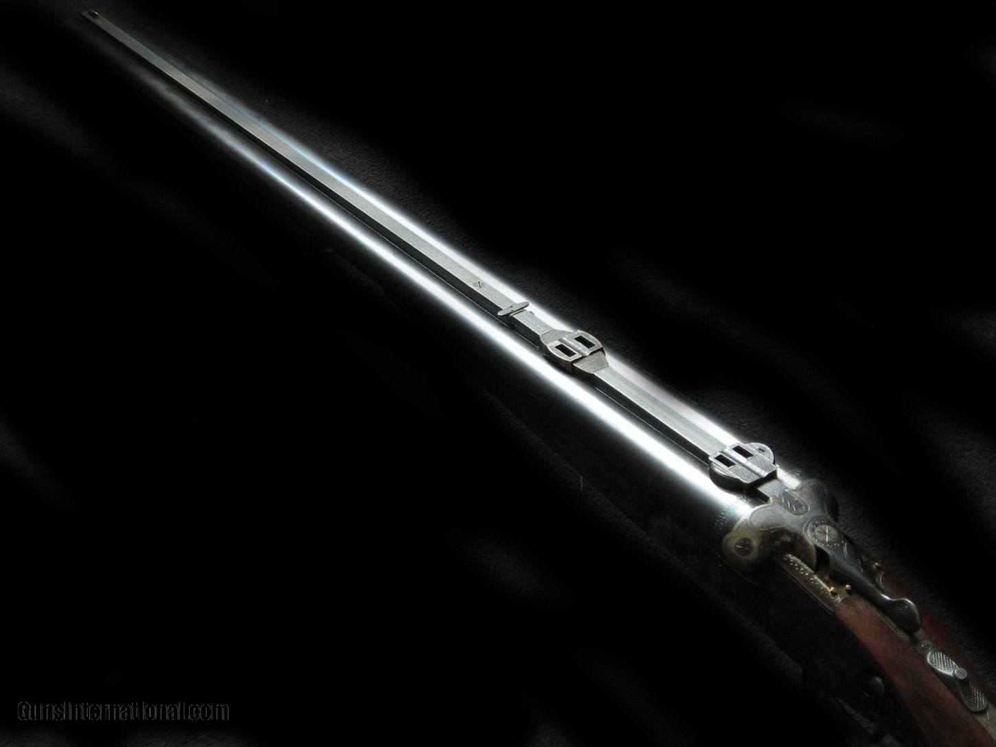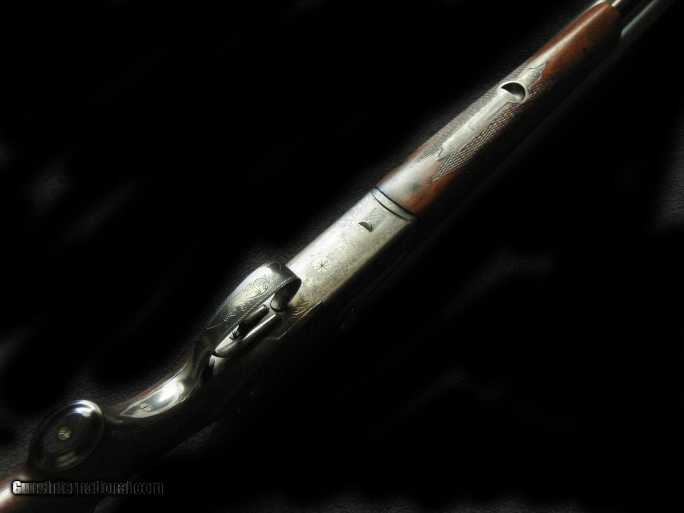 Description: Very tight gun retaining most of the original finishes, in useful 12ga x 2 3/4" over 7x57R, compact 24" barrels choked F and XF. No cracks, strong checkering, LOP 13 5/8" thru nice original Merkel checkered buttplate, drops 1 3/4" by 2 3/4" with a small amount of cast off. Mint bores. 7 1/2lbs. SOLD |