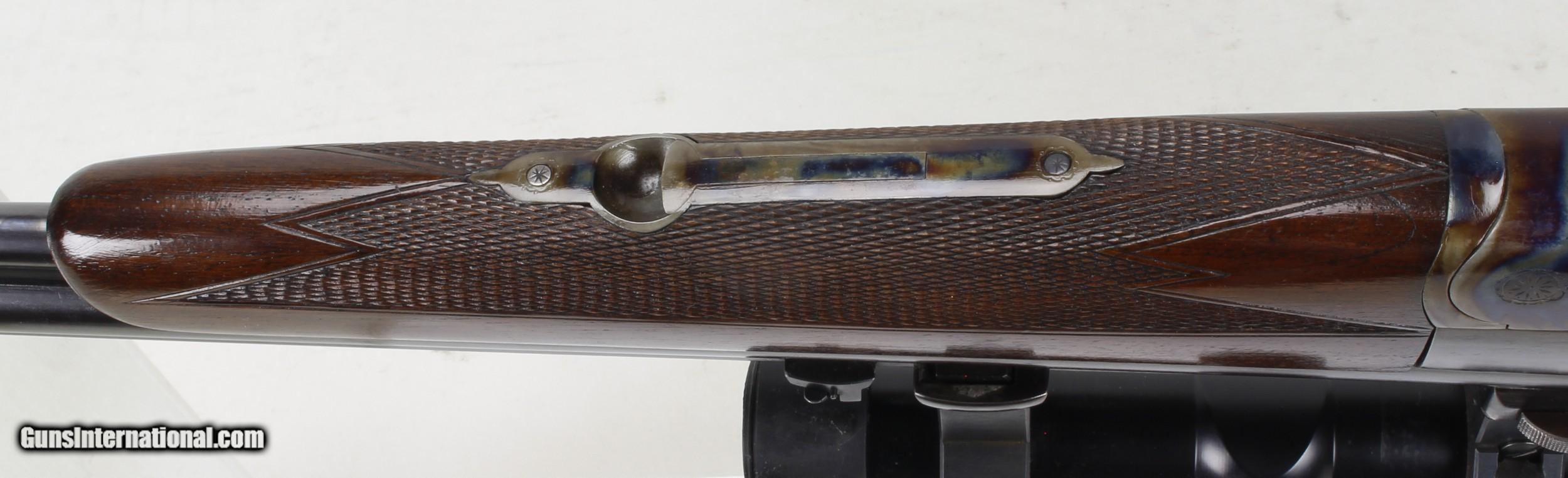 Description: J.F. PRAMESBERGER, COMBO SHOTGUN/RIFLE, 28GA/25-35 Win. 25 1/2" Barrels, W/Excellent Bores. Swarovski Habicht, 2.5-4.5 X 20A Scope. Quick Disconnet Claw Mounts. Fine Checkered Walnut Sporting Stock, w/13 7/8" LOP. SN#32402, MFG: 1930's Germany. "This is a Custom Made Weapon". Weight: 5lbs,9ozs, Without Scope. Wood Re-Finished & Re-blued. Ships to Lower 48, W/Insurance: $50.00 Note: Marking Indicate Rifle Caliber as 6.5 x 52R, Which is the same as 25-35Winchester. More Pictures on request: SOLD Curio/Relic: Yes |
