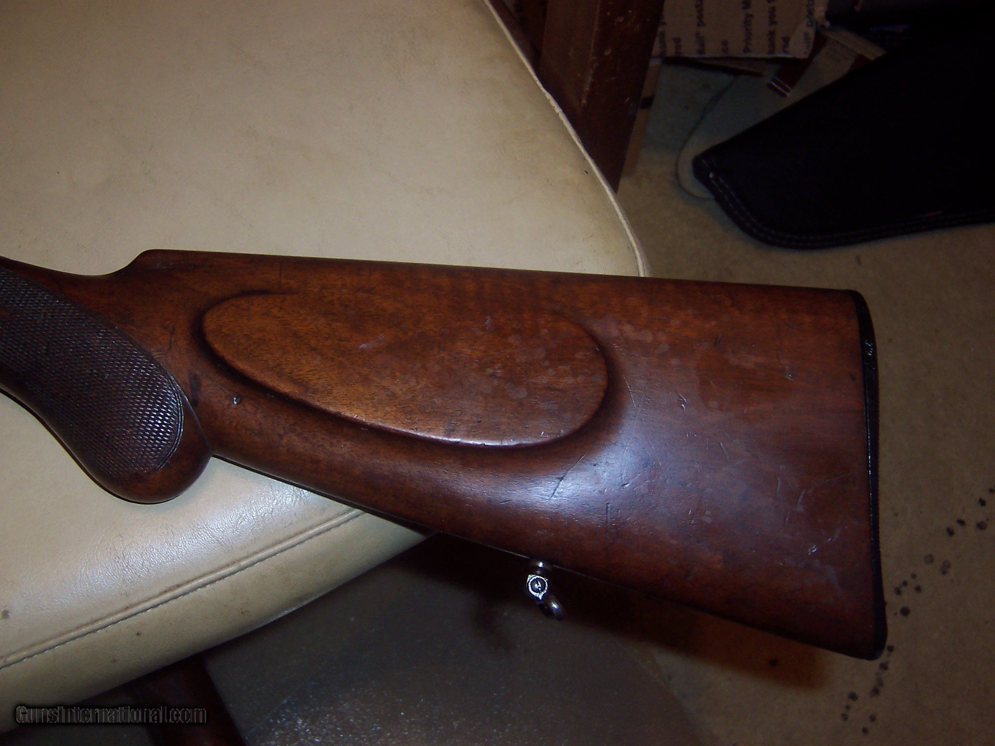 Description: 8x57JR x 16 GAGE LESS THAN 2 3/4 INCH CHAMBER either 2 1/2 or 2 9/16,,FINE BORES,,, GUN IS MECANICLY FINE 80% BARREl BLUE NO BREAkS OR CHIPS IN STOCK COCKING INDICATORS POP UP SIGHT GREENER SAFETY MADE IN 1930S WOOD SHOWS ONLY NORMAL HANDLING MARKS REPAIRE CHIPS IN BUTT PLATE barres marked krup laufstahl als marked jpsauer and sohn, nice old drilling locks up tikht as new SOLD Curio/Relic: Yes Rifle Caliber: 8x57mm JR Shotgun Gauge: 16 Gauge Manufacturer: jp sauer and sohn Condition: vg + |