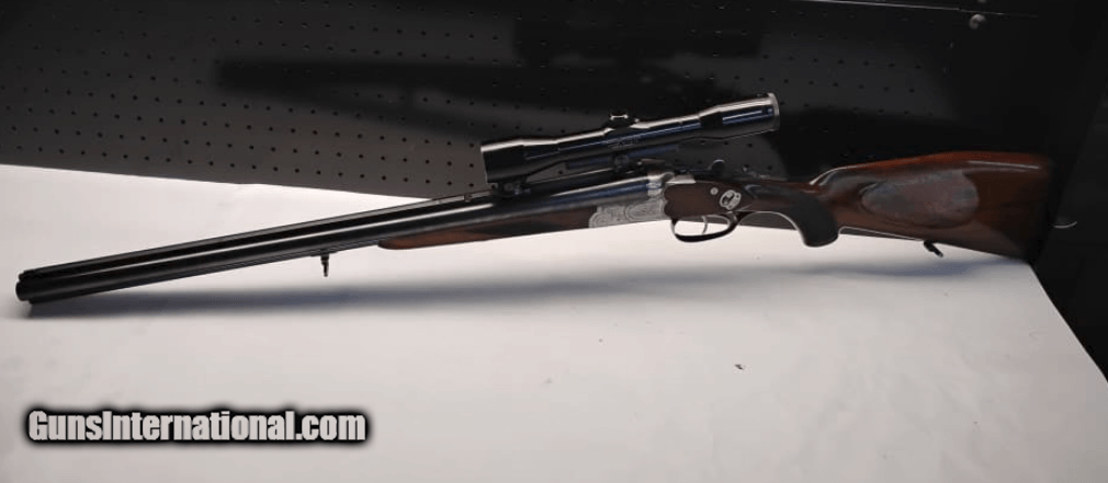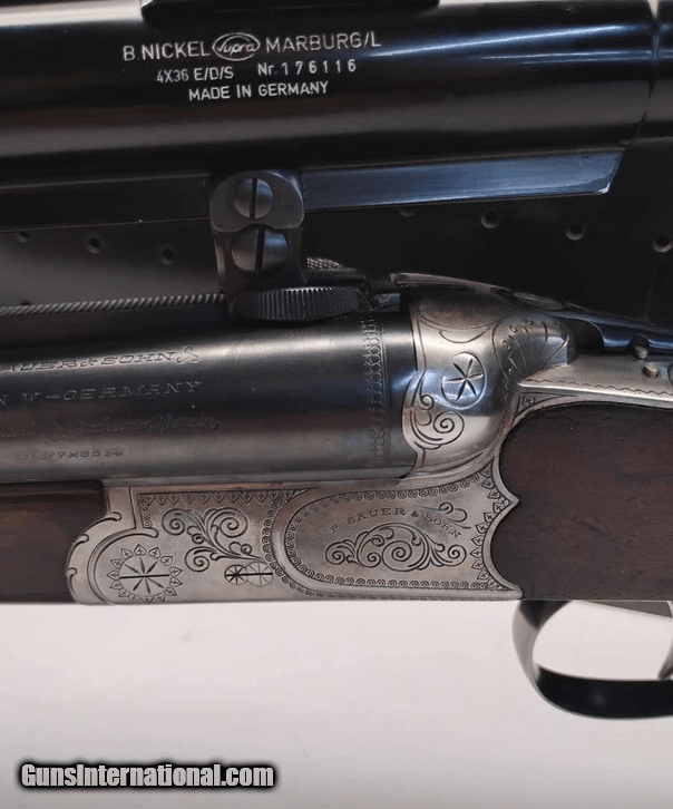 Description: WE HAVE A REALLY NICE J.P. SAUER & SOHN DRILLING MODEL 30 16GA / 7x65R. CLASSIC POST WAR SUHL DRILLING. CIRCA PRE 1951 - 1954 . PROOF MARKED EAGLE OVER N ** BARREL STAMPED SPEZIAL LAUFSTAHL BOCKUMER VEREIN ** BOX-LOCK ACTION. INTERNAL HAMMERS. GREENER CROSS-BOLT. DOUBLE UNDER-LUGS. TOP TANG SELECTOR. POP UP REAR SIGHT. SIDE SAFETY ON SIDE OF STOCK. SCALLOPED BACK RECEIVER. LIGHT ENGRAVING - COIN FINISH RECEIVER. DOUBLE TRIGGERS. 23 ¾ BARRELS CHOKED FULL / MODIFIED. 2 ¾ CHAMBERS. SOLID MATT RIB WITH POP UP REAR SIGHT HIDDEN IN RIB. CLAW MOUNTS WITH B NICKLE MARBURG/L 4X SCOPE. PISTOL GRIP WITH CAP. GERMAN CHEEK-PIECE ( RIGHT SIDE ) WALNUT WOOD WITH HAND CUT CHECKERING. HARD SOUER LOGO BUTT PLATE. SPLINTER FOREARM WITH DEELEY LATCH. SLING SWIVELS. WE DO NOT CHARGE CREDIT CARD FEES!!!! Shotgun Gauge: 16 Gauge Price: $3,300.00 Contact Seller |