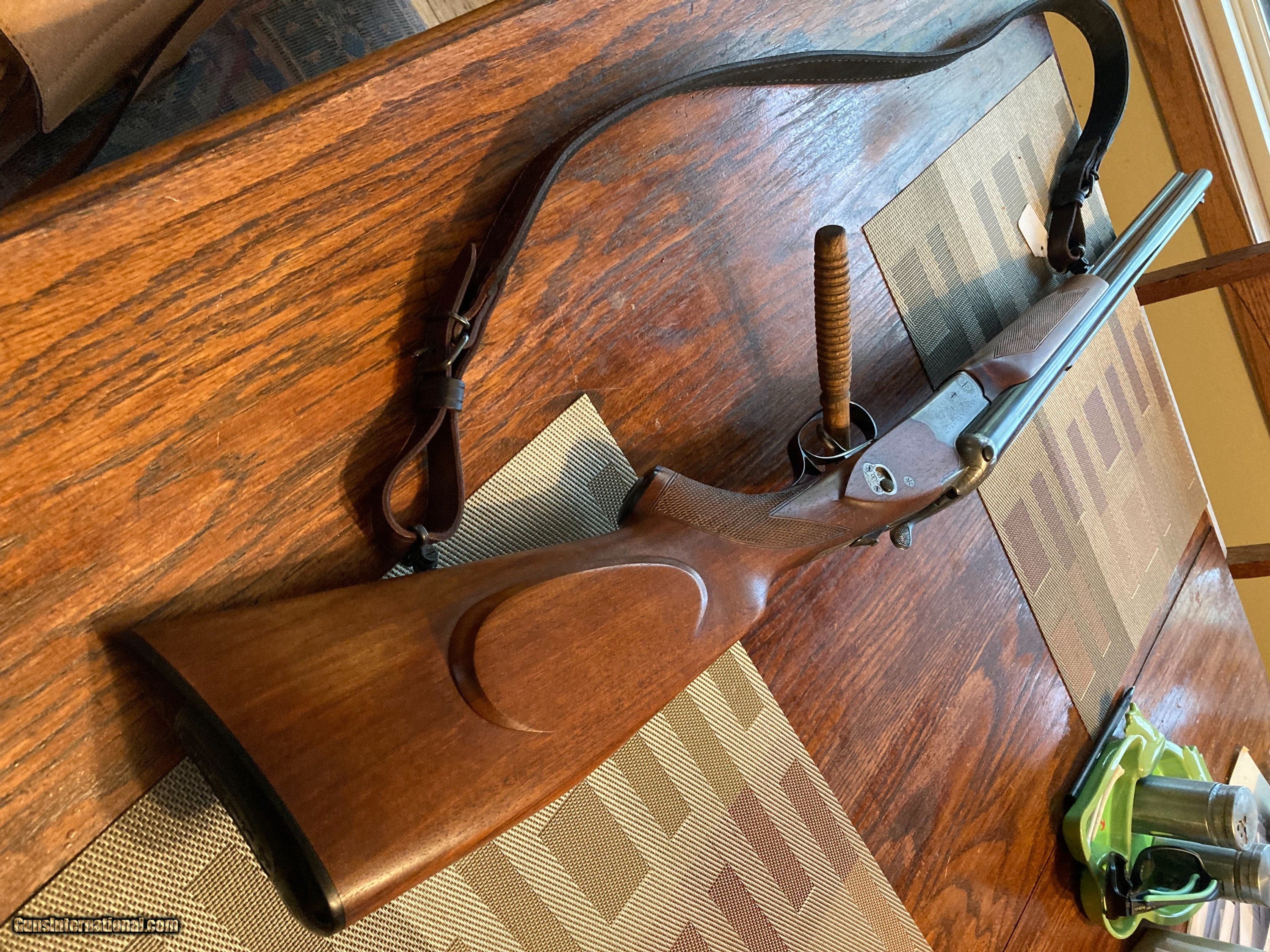 Description: This is a vary nice Drilling that has seen very little use. It is choked Right Brl Mod LB IC The barrels are 25 inches. The chambers are 70 mm The are marked Krupp-Spezial Laufstahl. The Top tank safety operated a flip up sight and there are 3 cocking indicators. The cheek piece is for right hand shooter. It has sling swivels and a drilling sling is included. It has capped semi-pistol grip stock. It has a Sauer butt plate. The fore piece is bevertail style. There is a side saftey. The LOP to front trigger is 14.5 The wt is 8.8 lbs on my bathroom scale. The gun was made in West Germany. Seaial number F19873. SOLD Curio/Relic: Yes Rifle Caliber: .222 Remington Shotgun Gauge: 12 Gauge |