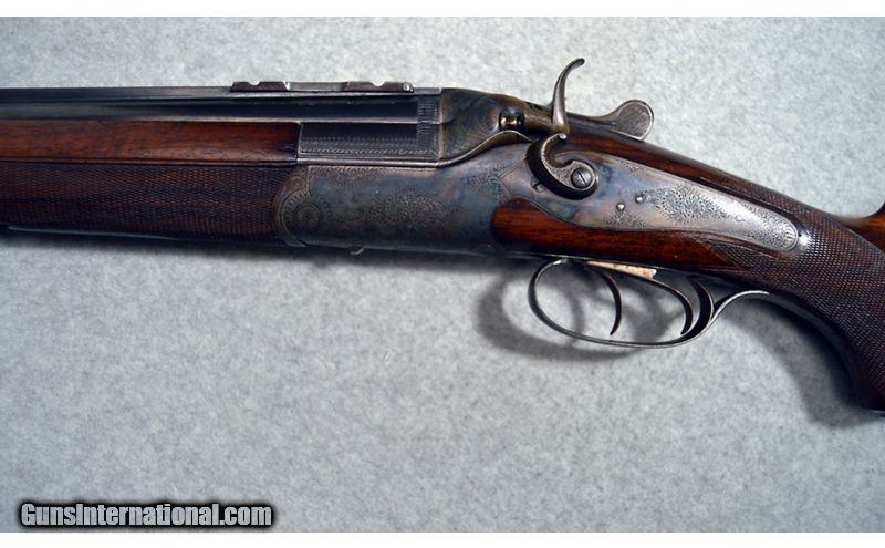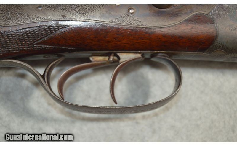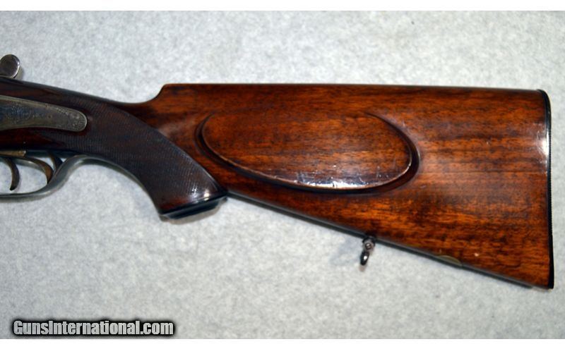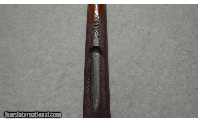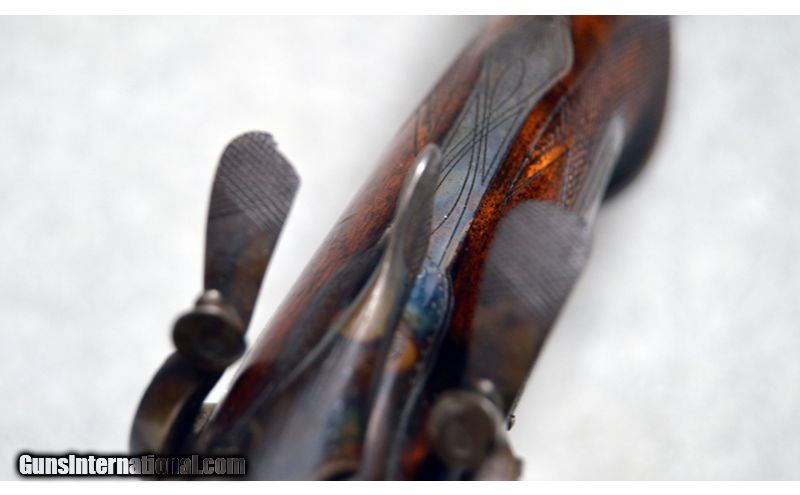 Description: Very good example of an over-and-under hammered combination gun produced by Johann Kalezky. The engraved firearm features a smooth bored 16-gauge barrel over an 8x57mm JR (Rimmed) rifled barrel, both with single extractors. With blued barrels and case-hardened receiver, the gun is an excellent example of Austrian craftsmanship. The barrel has a dovetailed mount for mounting a period removable telescopic sight, with a single front bead and twin rear folding leaf sights. The case-hardened receiver features scroll engraving with the case-hardened trigger guard also engraved. The rifled barrel has a set trigger. The wood is in good condition with handling marks expected of a gun this age. Steel is very good with handling marks and the right hammer has a chip missing. An excellent example of a period piece. 16 Gauge/7.8x57R SOLD Metal Condition: Good with Wear and Handling Marks Wood Condition: Good with Various Handling Marks Bore Condition: Clean but Dark with Strong Rifling Triggers: Dual Trigger with Hammers Stock Dimensions: 13-1/2" LoP with Raised Cheek Piece Butt Pad: Hard Plastic or Bakelite with Grooves Weight: 6 lbs 8 oz Sights: Single Brass Bead Front with two Folding Leaves Rear Chokes: Barrel Marked "16.8 Item Location: Fort Worth, TX |