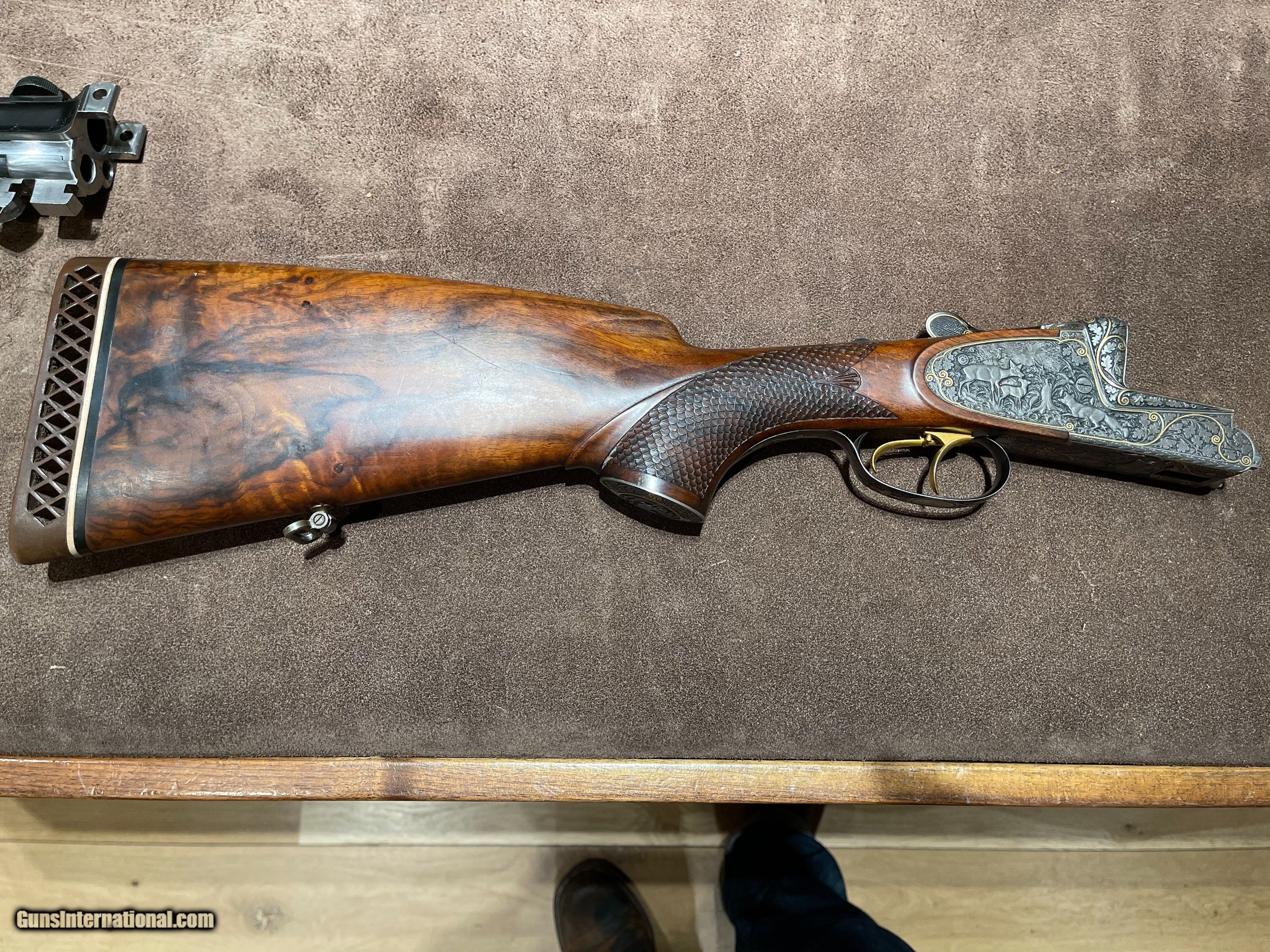 Description: Josef Hambrusch Ferlach, Austria Block Drilling - 16ga x 308 win. X 22 Hornet Double Rifle - 30.06 Springfield x 222 rem. Mag. SOLD |