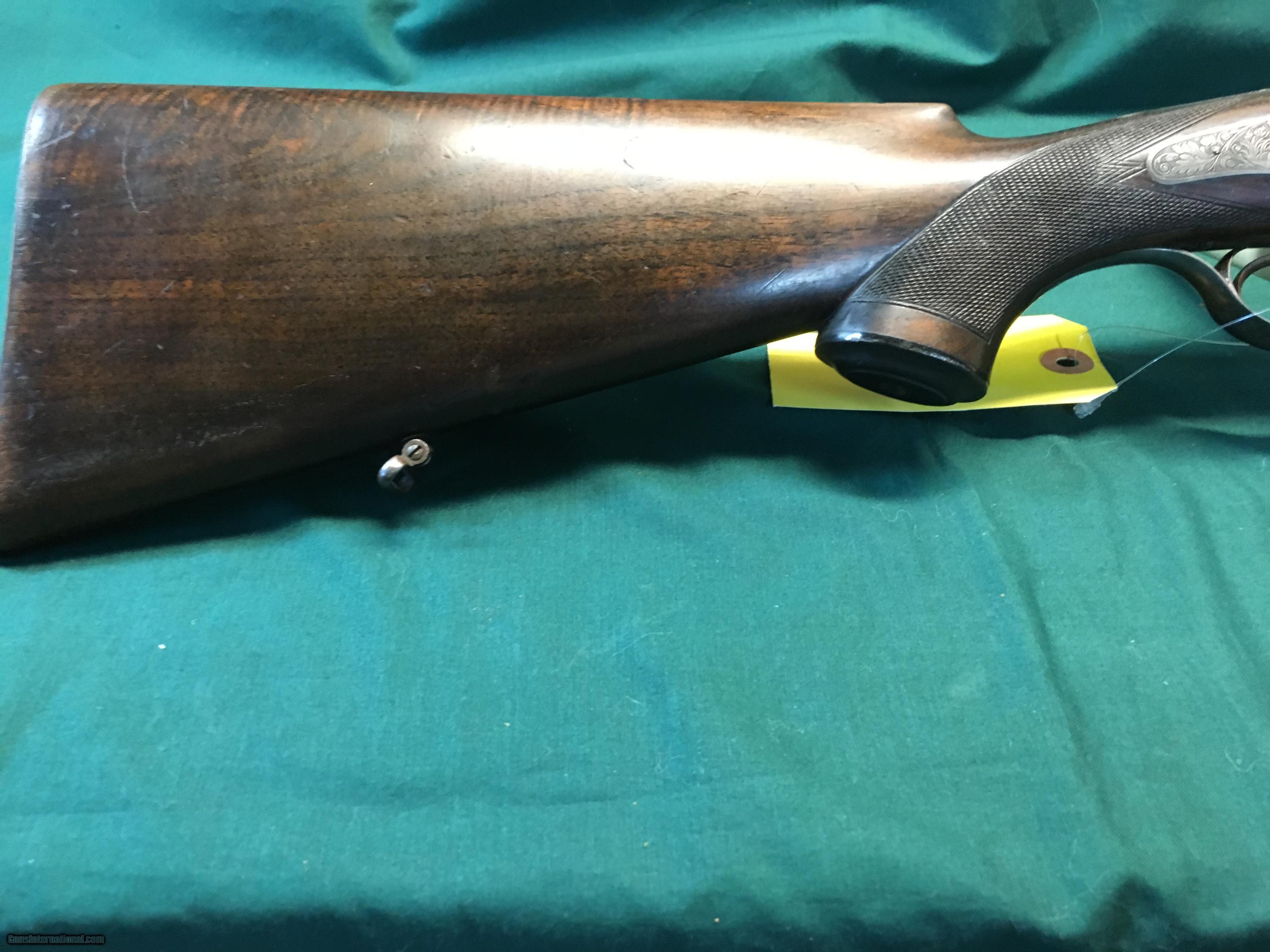 Description: For sale is avery nice old combo hammer O/U made by Just of Ferlach, Austria. The Boller Blitz Stahl barrels are 26 3/4 inch and chambered in 16 gauge 2 1/2 on top and 8x72R on the bottom with good bores. The barrels have a matted top rib and claw scope bases also. The rear sight has two flip up blades and there is a fold down rear tang sight. It has double triggers with the rifle trigger being a set trigger. The butt plate has a cartridge trap for 3 rifle cartridges. The very pretty receiver and lock are engraved with animal scenes surrounded by oak leaves. The locks and trigger work fine and the action locks up very snug. A very fine old Austrian firearm. SOLD Curio/Relic: Yes Manufacturer: Just of Felach, Austria Serial Number: 1003 Caliber Info: 8x72R Triggers: double Gauge Info: 16 |