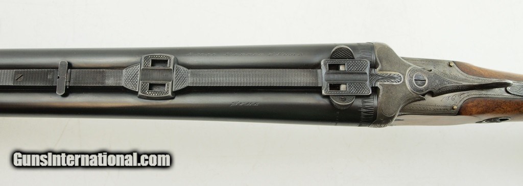 Description: Kerner Drilling Made in Germany 16 GA - 8X57 JR WScope, 26 1/2" bbls, blued finish, bright shiny bores, shotgun barrels are FULL choke, good rifling in rifle barrel, rear flip-up iron sight, metal bead front sight, hammer cocking indicators, deep cut engraving finished in French Gray on the receiver, chamber end of the barrels, the cartridge trap, screw heads, muzzle, and rib, beautiful checkered hardwood grip stock - forearm, 4 round trap for rifle cartridges, LOP - 13 7/8", sling loops, and black recoil pad. See pictures and description below for a full appreciation of this beautiful rifle. Add 3% for Credit Card Shipping $55.00 This listing is for a beautiful 16 gauge x 16 gauge 2 ¾” over 8x57 JR rifle barrel (.318 bore) German Drilling; Emil Kerner is the maker, in excellent condition. This Kerner dates back to the 1930’s and is among the most detailed and finely crafted drillings made. The includes the original, matching serial numbered scope. It is difficult to find a Drilling in this condition with the features of this beautiful example of German old-world craftsmanship for this price. This gun features deep cut engraving finished in French Gray on the receiver, chamber end of the barrels, the cartridge trap, screw heads, muzzle, and rib. All of the bores have mirror finishes, including the rifle bore which is in excellent condition. There are NO dings or dents in either of the shotgun barrels, which measure 26 1/2 inches long. The butt stock and fore end on this drilling were professionally restored (checkering is sharp and beautiful) with a hand-rubbed oil finish. The nicely figured butt stock and fore end are in excellent condition. The butt stock also features a cartridge trap for holding extra rifle cartridges. The trigger guard is carved out of genuine buffalo horn. The length of pull (LOP) to the front trigger measures 13 7/8 inches. This drilling was mostly restored by Drilling and Double Rifle Smith Lee LeBas out of Carson City, Nevada. Lee was the foremost drilling and double rifle gunsmith in the United States before taking over as the CEO of Mauser and Sauer Rifles (USA). Lee was also the Kriegoff factory authorized repair specialist in the US. He went completely through the action of this gun and repaired and replaced any worn or broken parts to bring it up to 100%. Lee re-blued the barrels using the original rust bluing process and completely rebuilt the scope and re-blued the scope tube to a like new condition. He lengthened the 16 gauge chambers to accept 2¾ inch 16 gauge shells (commonly found in the US). The scope has the traditional 3 post reticule. Work like this takes time (almost two years) and it is incredibly difficult to find a qualified gunsmith with expertise in drillings. Since the test firing and sighting of the scope done by Lee LeBas, this drilling has been fired only three times, once each to test the rifle with iron sights, the rifle with scope and the shotgun barrels. The scope is close to point of aim, but not fully regulated to any particular load. The shotgun patterns well and the barrels are choked at FULL/FULL. Everything on this drilling functions perfectly, including: the flip-up iron sight, the hammer cocking indicators, the set trigger, and the safety. Included with this drilling are some traditional accessories; like a brand new leather sling, a case with sling, gold-plated 16 ga snap caps and a brand new muzzle cover/protector, a set of RCBS 8x57 Reloading Dies (including shell holder) set up for the .318 diameter bullet, 49 pieces of new Norma brass, 20 pieces of once-fired RWS brass, 18 pieces of once-fired S&B brass, 142 factory S&B 196 gr soft point ammunition, 48 custom made .318 diameter, soft point Spitzer bullets by DKT Inc., and 50 180gr, soft point bullets custom made by Hawk. This is a complete package. SOLD |