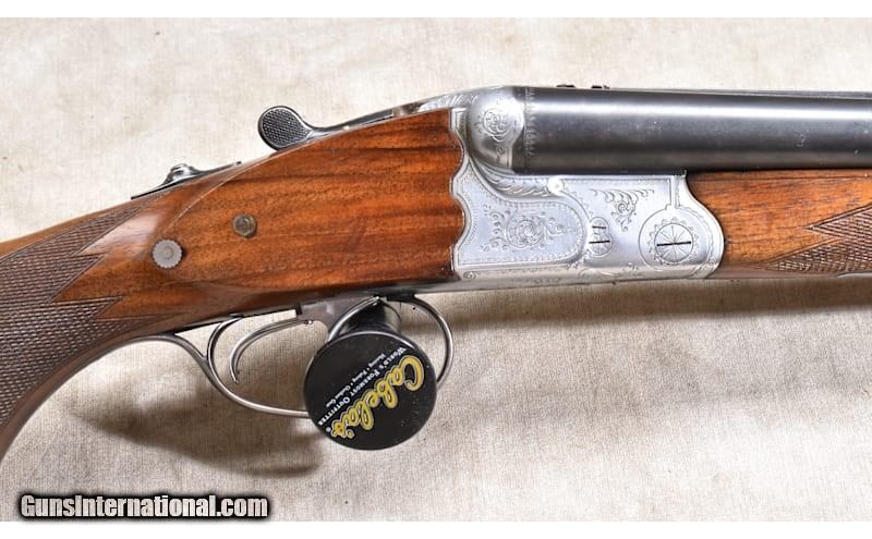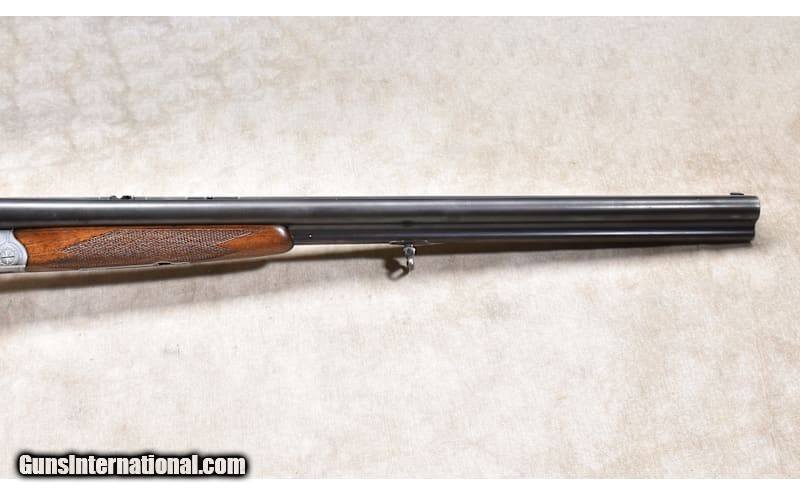 Description: Krieghoff has been around for a long, long time and has a reputation for finest firearms. The "Lugers" they produced were the best and are highly sought after, and the clay target crowd is also well aware of them. They were, and are, an innovative company being the first to promote short barreled "drillings" for everyday use. They went so far as to build a test weapon and chopped it down incrementally to show how little effect the shortening of barrels actually has on accuracy. Sight radius has a say, but a short barrel and a long barrel act essentially alike from an accuracy standpoint. That leads to the Waldshutz drilling. The gun is two 16 gauge shotgun barrels over a 7x57r rifle barrel. Drillings are associated with the Africa safari, and this gun is called the a "Safari" in some sources. The name actually translates as "Forest Protector" or "Forest Guard" and the case could be made that a Game Warden or Guide in Bavaria could make really good use of a short, 7#3oz rifle/shotgun drilling, hence the name. This one was used a bit and shows that use in the wood with a bunch of scratches, but none are severe. The metal is actualy quite good. And the bores are all like mirrors. 16 Gauge Chambers: "2 - 16 gauge, 2-3/4 inch, 1 - 7X57R Metal Condition: Good to very good. This has been carried a bit and shows some blue fade and minor handling marks. Wood Condition: "Good to very good. There are a number minor handling marks/scratches. We do not judge them as severe, but they are evident. Bore Condition: "All bores a amazingly shiny and bright, with good rifling in the 7x57 barrel. Barrels: "3 barrels, 23-1/2 inches Triggers: Factory dual triggers. Dual safety "buttons" to enable or disable firing of selected barrels. Stock Dimensions: "LOP: 14-1/2"" DAC: 1-5/8"" DAH: 2-3/4"" NOTE: Bavarian pattern stocks have a drop behind the comb that, in this firearm, measures roughly 3/4 inch. In effect this gives the effect of a ""raised"" com Fore End: Matching Euro walnut. Butt Pad: Black leather pad. Weight: 7 lb - 3 oz Sights: "Gold bead foresight, folding leaf rear sight. Proprietary dovetails in rib for mounting a scope. Chokes: Fixed Mod/Mod Item Location: Rogers Price: $4,199.99 Contact Seller |