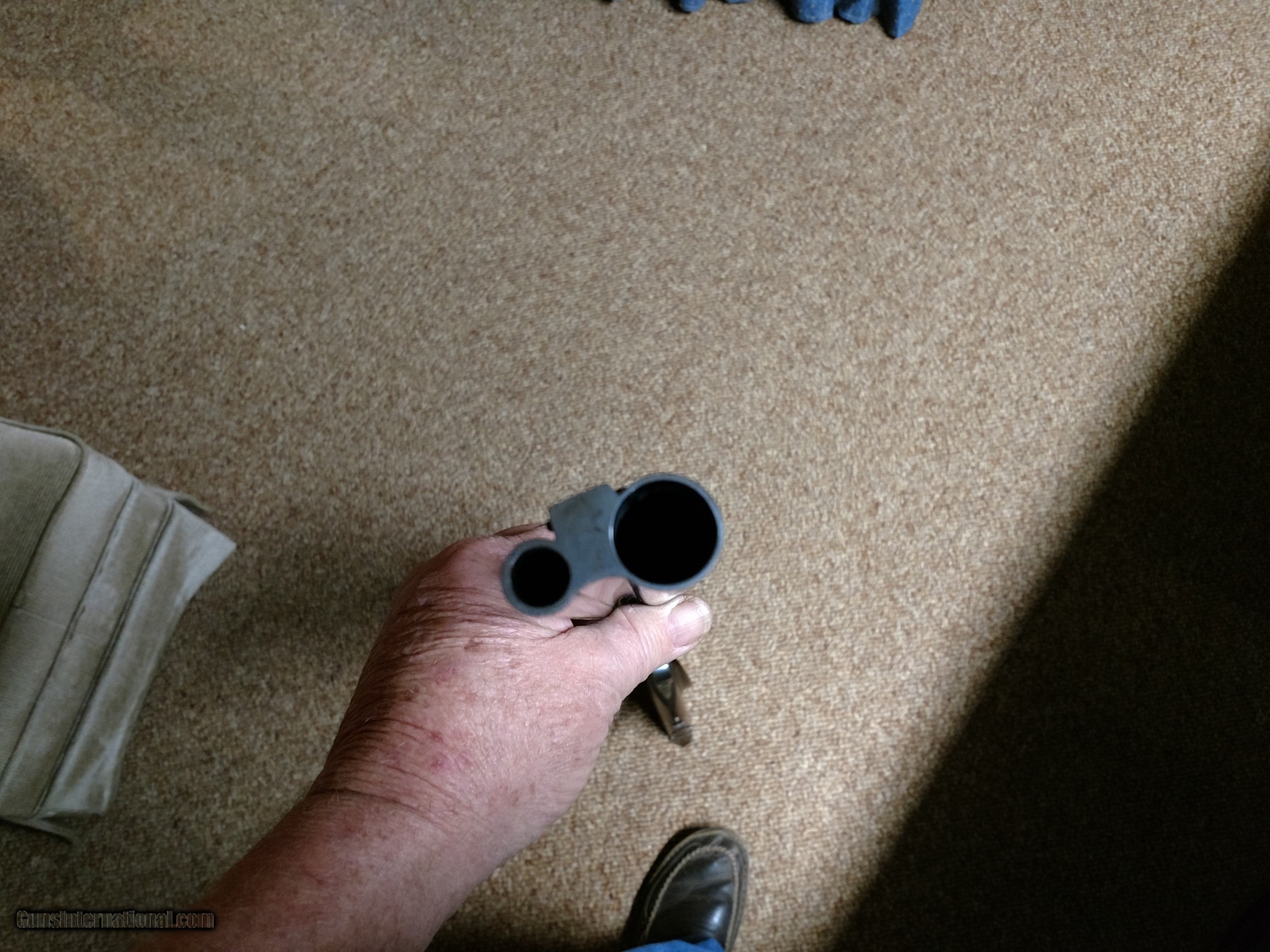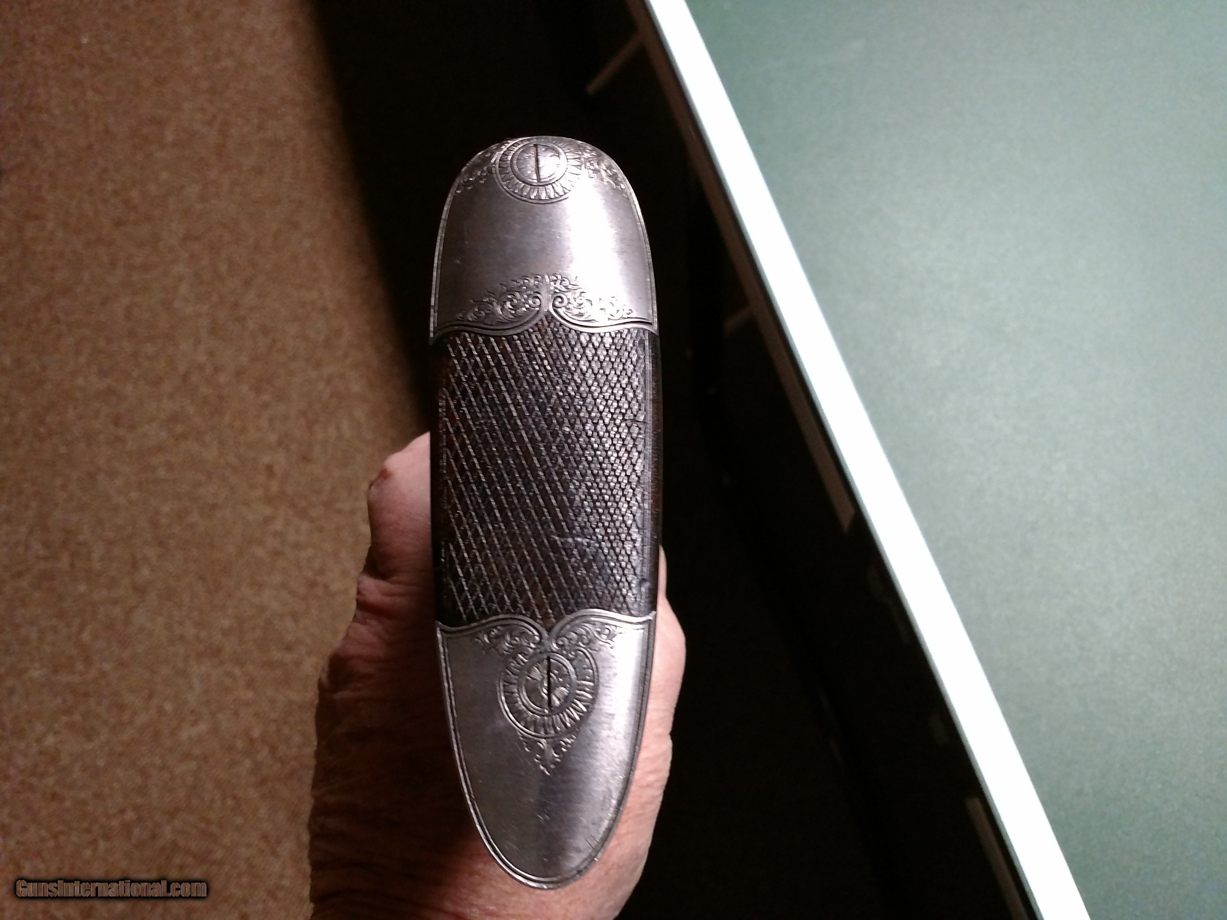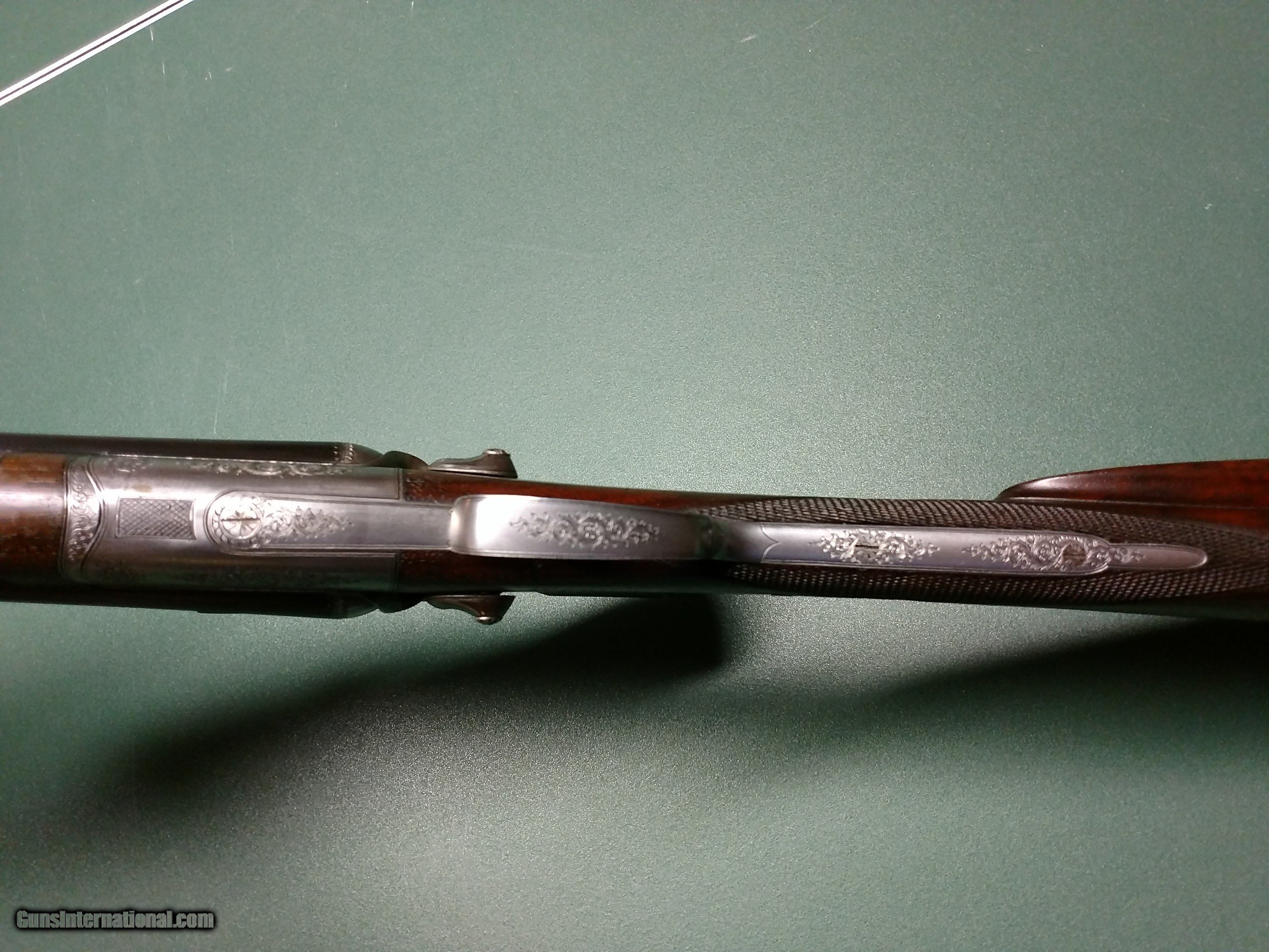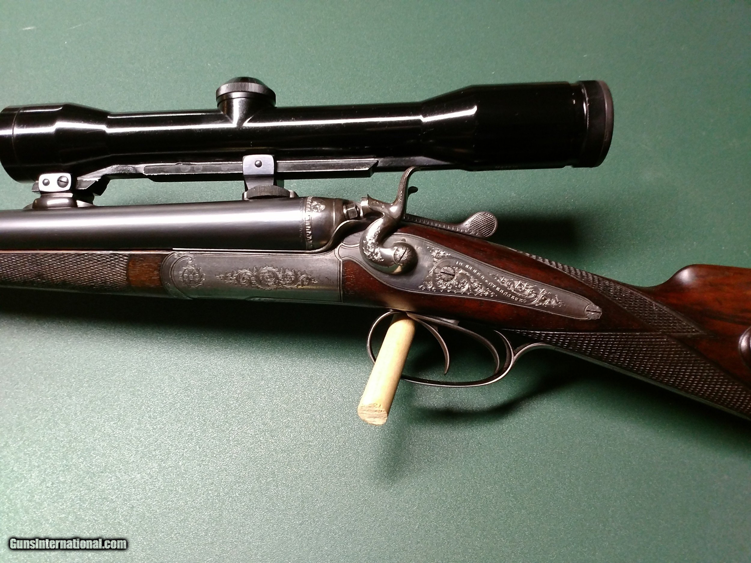 Description: SOLD PENDING FUNDS Extremely fine cape gun 16 x 9.3/72R. Glorious wood, fantastic engraving Claw bases and mounts for rail scope included. Fully engraved toe and heel Plates. Throws slug in shotgun barrel to same point of aim as rifle at 40 yards. Check out the engraving on this gun, awesome! Both Bores very good. SOLD |
