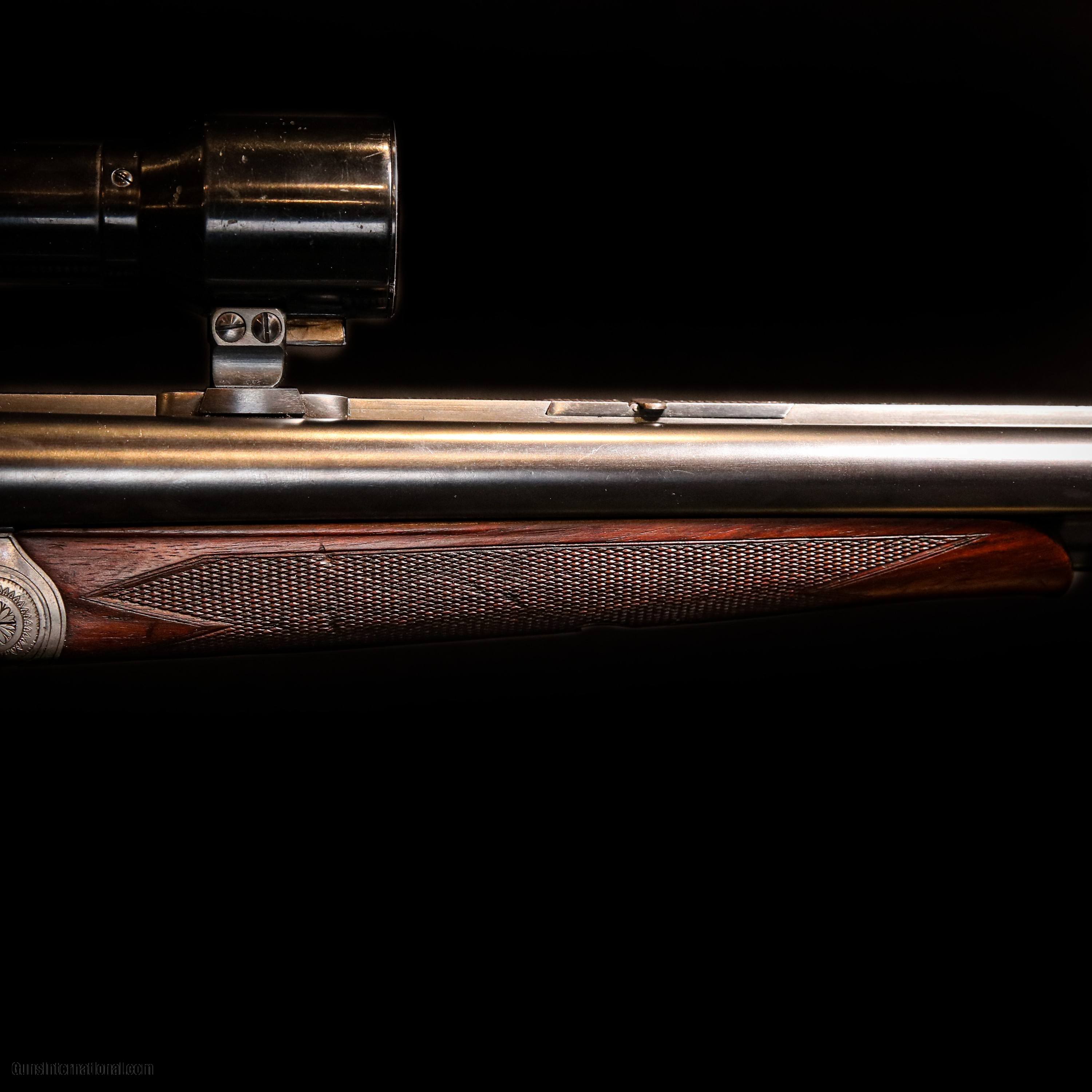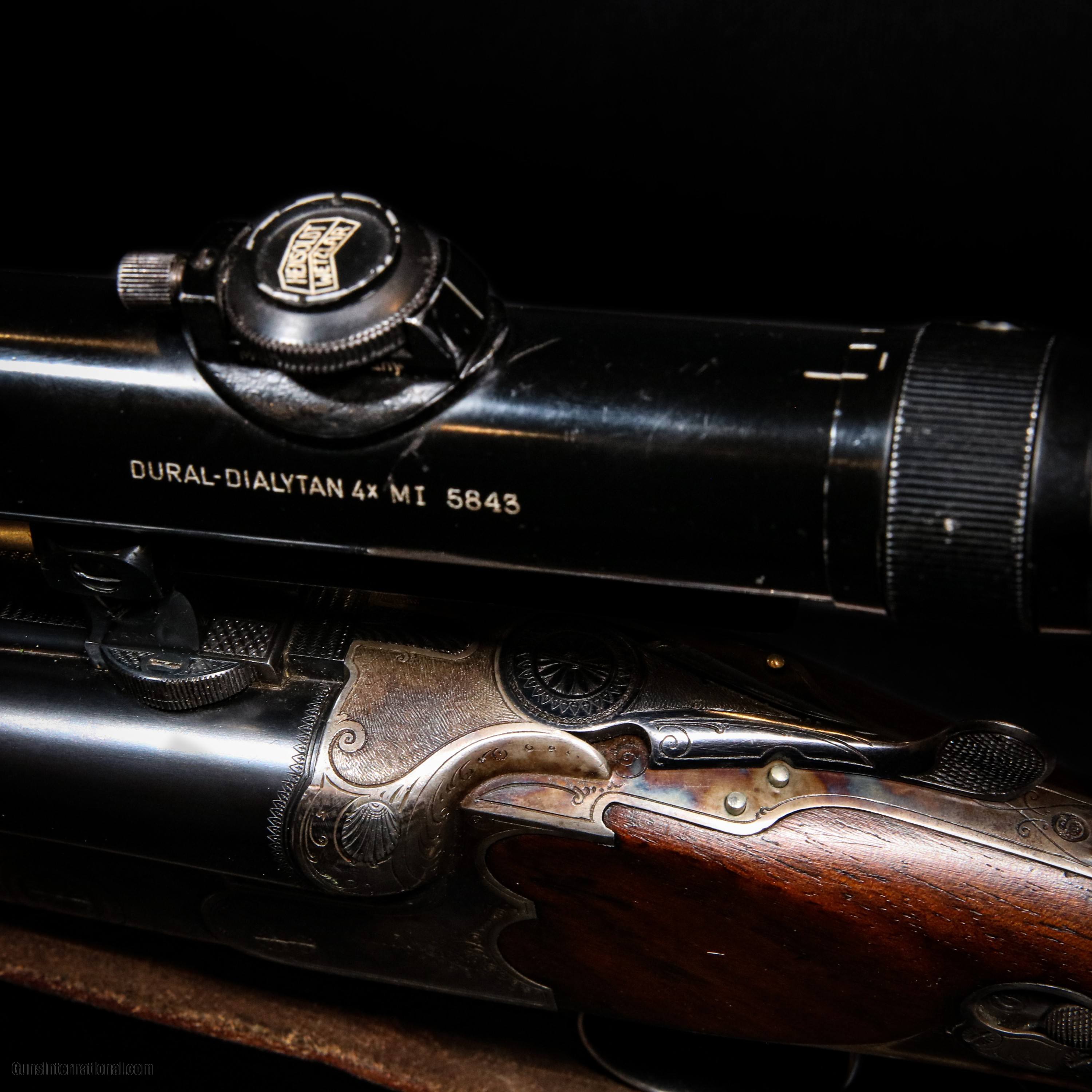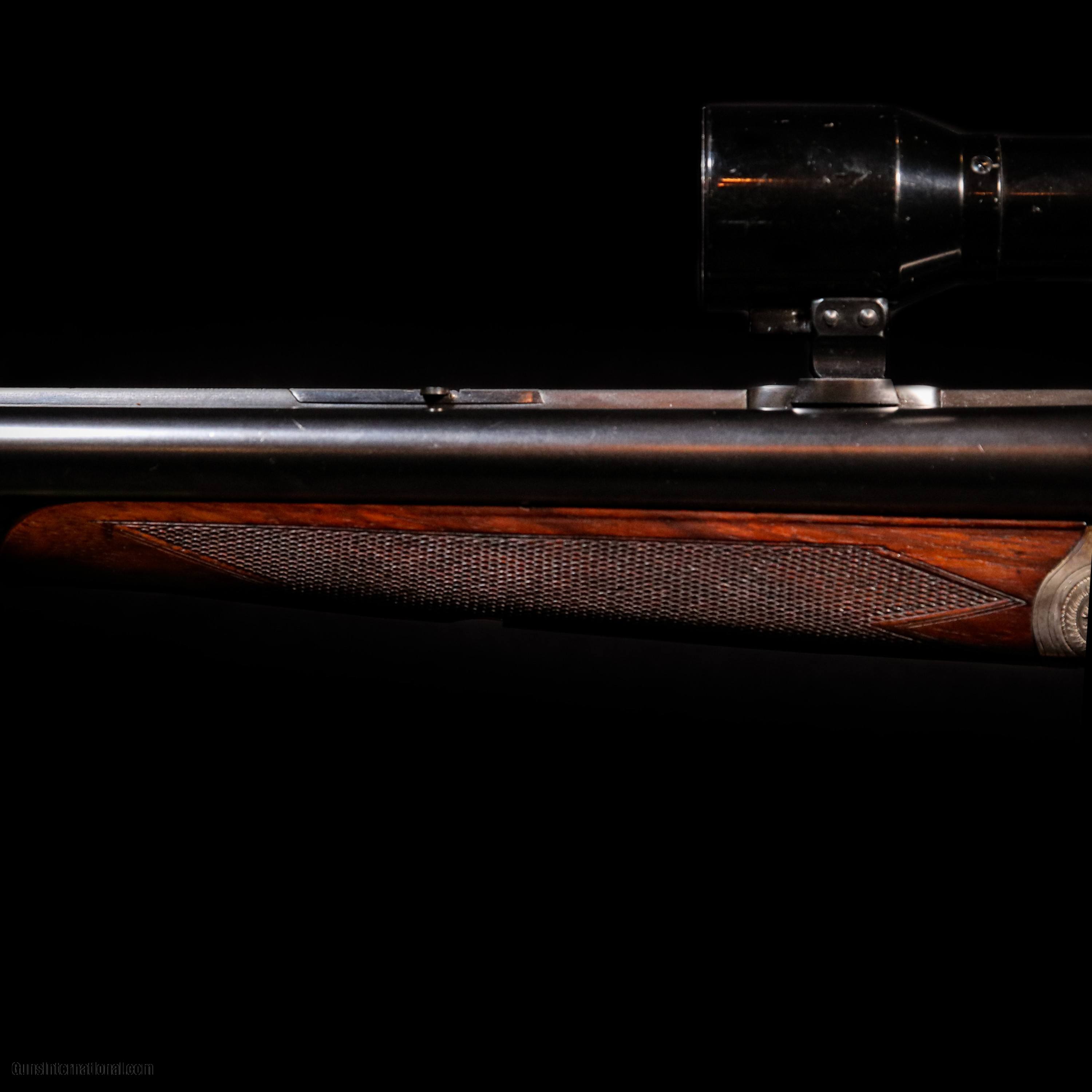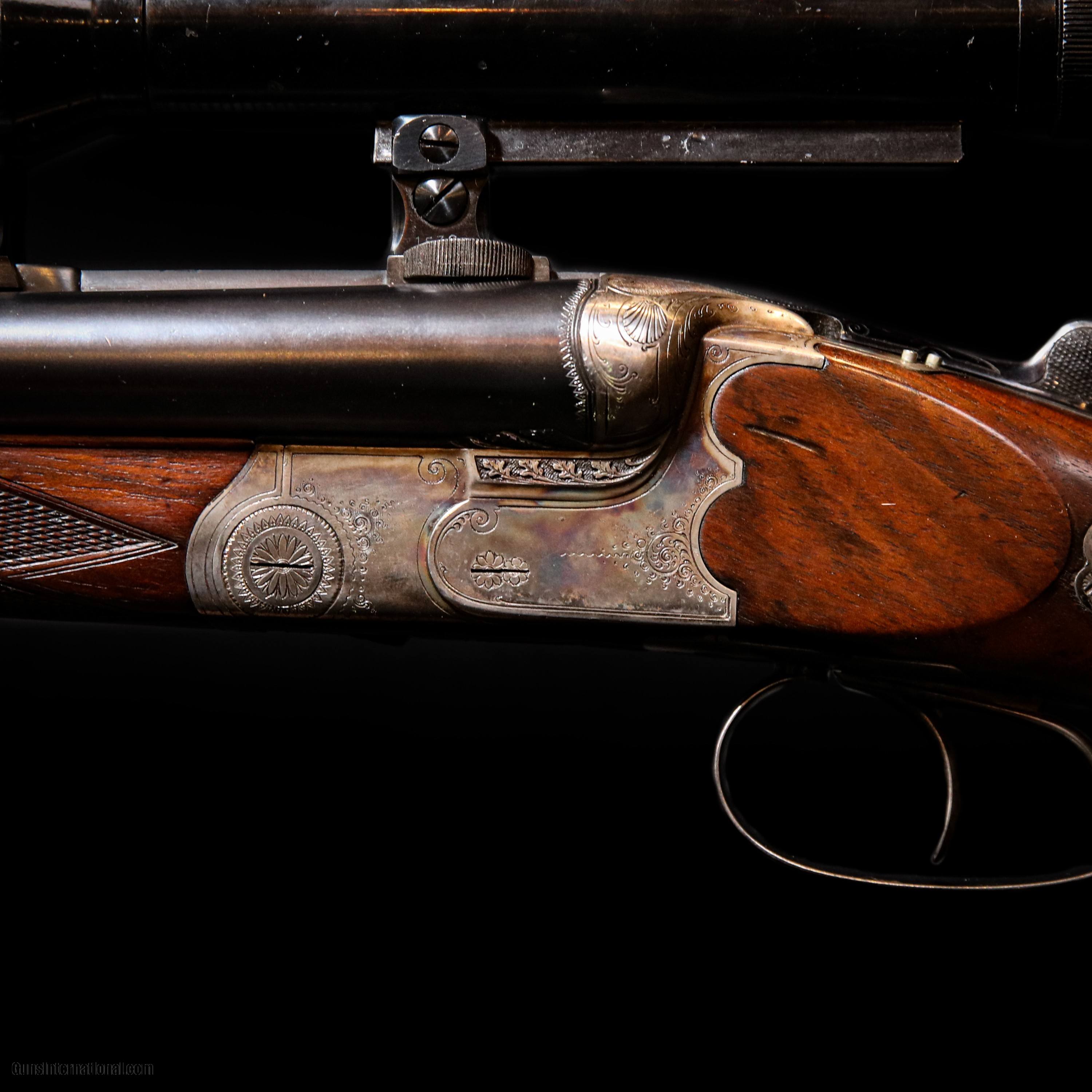 Description: The Robert Scruler Kuhn German Drilling 16Ga / 16Ga / 7.8 shotgun is a remarkable firearm that combines the versatility of a drilling shotgun with the precision craftsmanship of German engineering. This double-barreled shotgun exhibits exceptional quality and attention to detail, making it a prized possession among firearms enthusiasts. The shotgun features a 16-gauge side-by-side barrel configuration, which offers a balanced and reliable shooting experience. The 16-gauge chambering provides a good balance between power and recoil, making it suitable for a variety of hunting and shooting applications. In addition to the two shotgun barrels, the Drilling 16Ga / 16Ga / 7.8 is equipped with a third barrel located beneath the shotgun barrels. This third barrel is chambered for the 7.8mm caliber, also known as the 7.8x57mm or 7.92mm Mauser. This unique combination of shotgun and rifle calibers makes the Drilling a highly versatile firearm, allowing the shooter to switch between different types of ammunition based on the intended target or shooting scenario. This item does not come with a case. Overall condition is great with wear form use to the stock. Pre-Owned - Robert Scruler Kuhn German Drilling 16Ga / 16Ga / 7.8 23.6"