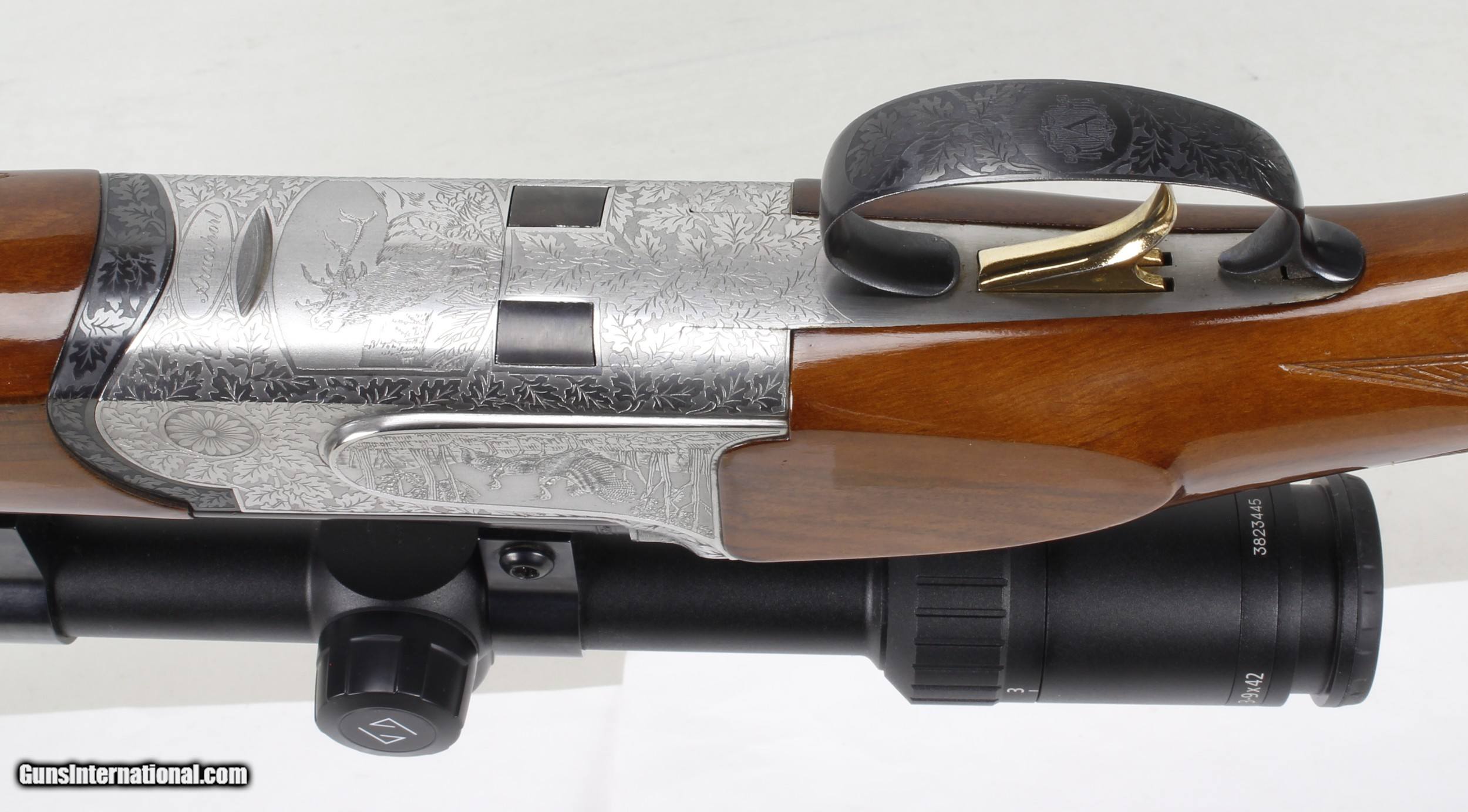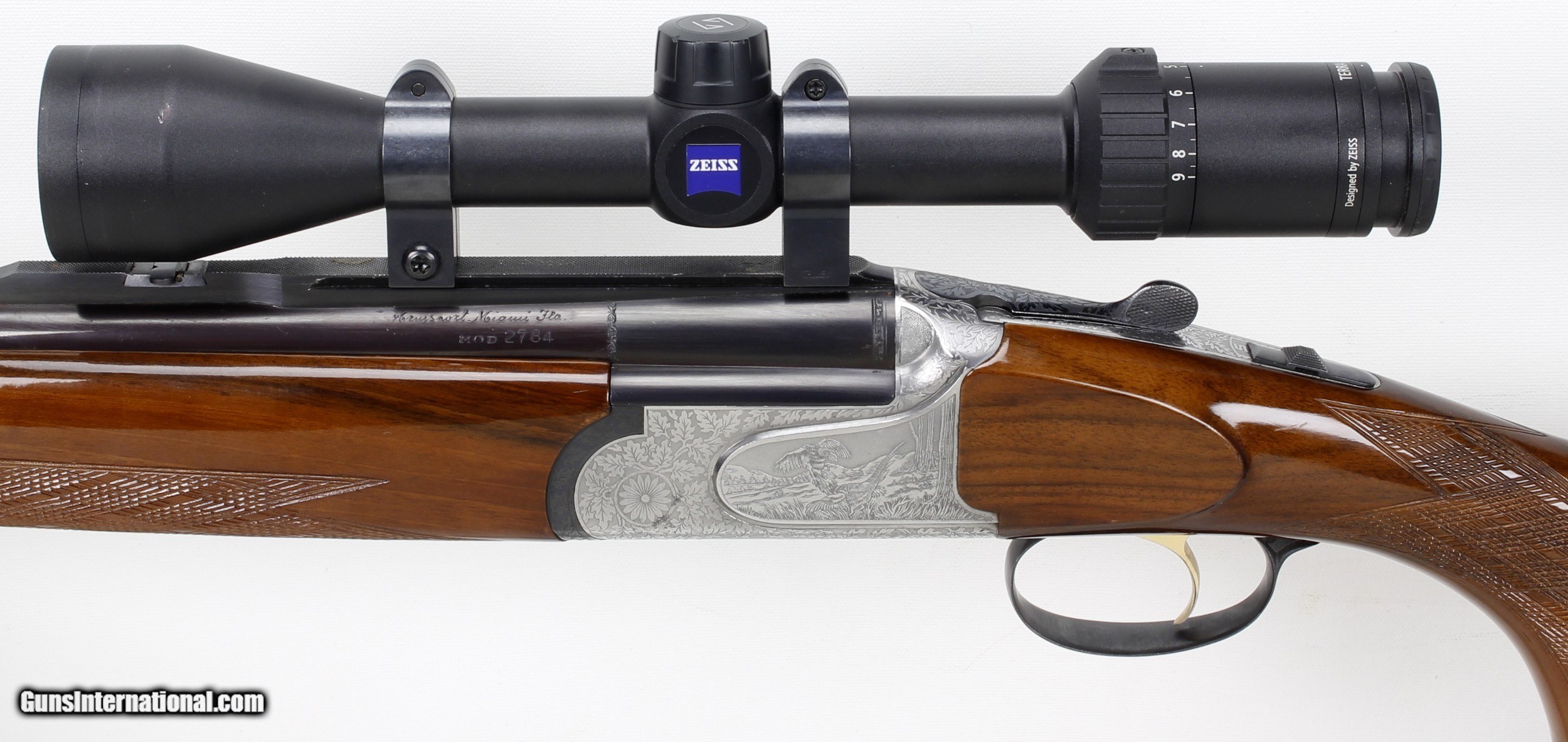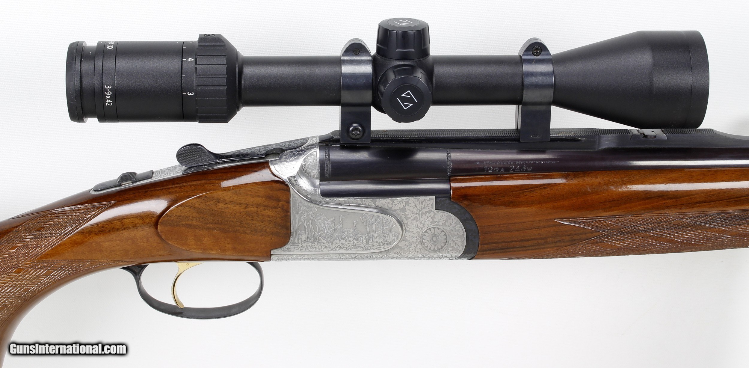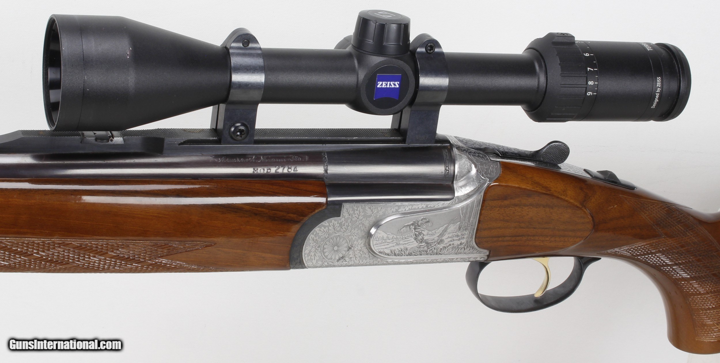 Description: Renato Menegon Model 2784 Combination Rifle / Shotgun in .243 Win. & 12Ga. SN #01149. Mfg. in Brescia, Italy. LOP 14". 25 1/2" barrels with excellent bores. Shotgun barrel has a Full Choke. Highly engraved silver receiver and blued barrel are in excellent condition. The checkered Walnut Monte Carlo stock with Right hand Palm Swell are also in excellent condition. Includes a Zeiss 3-9x42 Terra Scope with Duplex Reticle and Talley Mounts and Rings. Select single trigger set at 3 1/2 lb pull. Imported thru Armsport Importers, Miami, Florida. More photos available upon request. Ships to Lower 48 W/ Insurance $45.00. SOLD Rifle Caliber: .243 Winchester Shotgun Gauge: 12 Gauge Manufacturer: Renato Menegon Model: 2784 Serial Number: 01149 Barrel Length: 25 1/2 Condition: Excellent Metal Condition: Excellent Wood Condition: Excellent Bore Condition: Excellent LOP: 14 Rib: Solid Finish: Blue / Silver Chokes: Full Engraving: Highly Engraved Receiver |