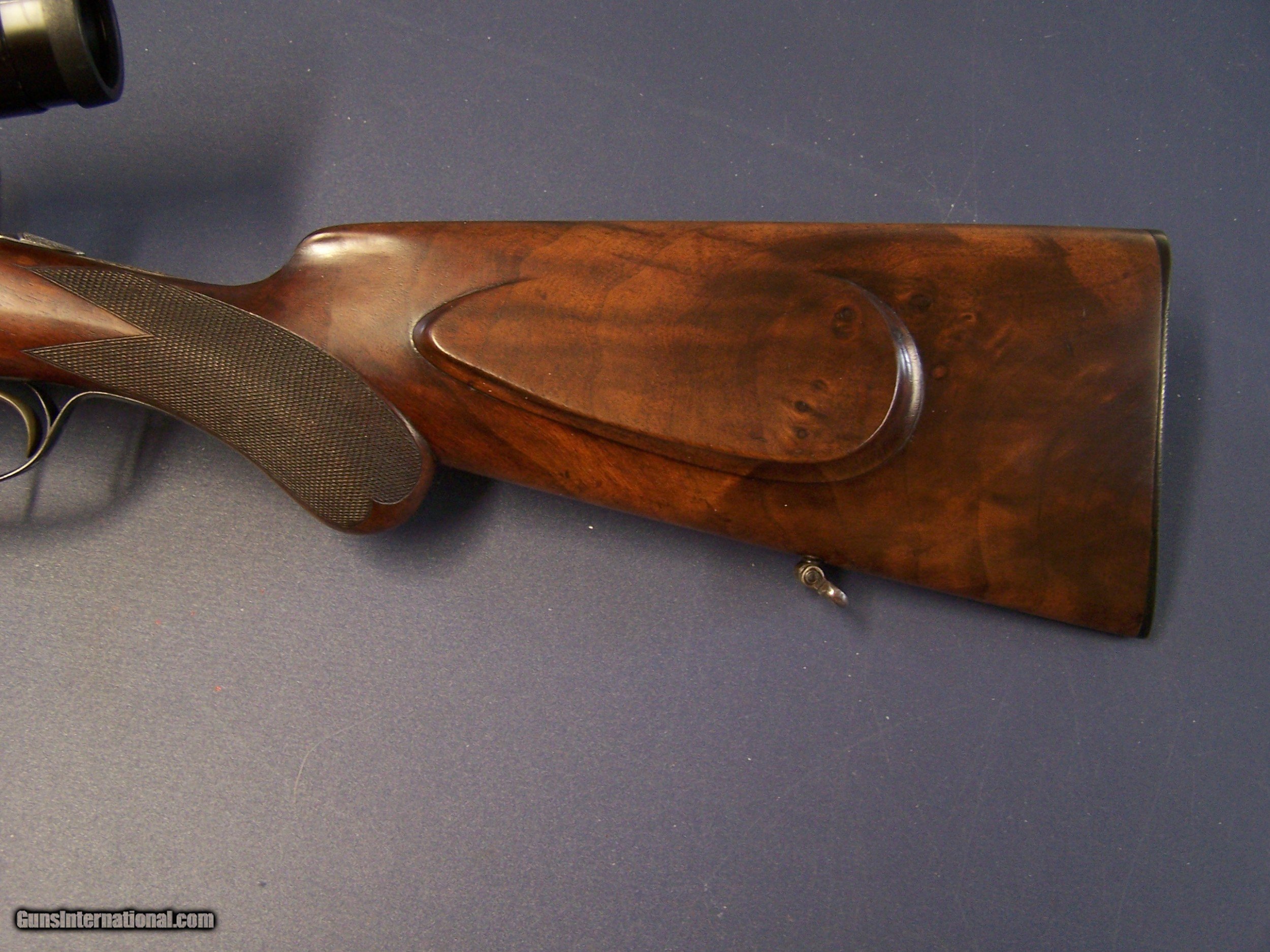 Description: Pre War Robert Schuler Combination Gun. This gun was made in August of 1938. It is in fantastic condition and in very rare and desireable configuration. The rifle caliber is the same as the Winchester 25-35 ammunition and both can be used. The gun has claw mounts and is scoped with a Swarovski 1.5 x 4.5 Nova optic. The barrels are 23 1/2" and the gun only weighs 6 1/4lbs scoped. The engraving is deep relief games scenes and is superbly done. There are no splits or cracks in the wood and the bluing is in excellent condition also. This is a very high grade pre-war gun and one that you can hunt with or just display in your collection. This is one of the guns that I am selling in my collection and is one of the finest combo guns you will ever see. Please let me know if you have any questions at all. Thanks. Ron SOLD Curio/Relic: Yes Rifle Caliber: 6.5x52mmR Shotgun Gauge: 20 Gauge Manufacturer: Robert Schuler Barrel Length: 23 1/2 Condition: Excellent Metal Condition: Excellent Wood Condition: Excellent Bore Condition: Excellent Manufacture Date: 8-1938 Engraving: Game Scened |
