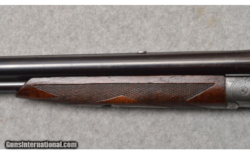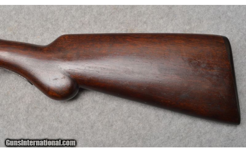 Description: The Hollenbeck Gun Co. located in Wheeling WV began 1901-1903 and moved to Moundsville WV 1903-1910 until they went out of business in 1910. The company name changed in 1905 to The Three Barrel Gun Company 1905-1909. Then to The Royal Gun Company 1909-1910. The company made approximately 1,500 3 barrel guns.This gun is in refinished condition with reblued barrels and refinished stock. The tang screws are stripped both top and bottom. Forend is loose. The gun is being sold as is. The 12 gauge barrels are fixed choke, modified x improved modified. The rifle caliber mics .30 but the actual caliber is unknown. SOLD Curio/Relic: Yes Manufacturer: 1909-1910 Caliber Info: 12 Ga. Metal Condition: Good - Reblued Wood Condition: Good - Refinished Bore Condition: Good Barrels: 28 Triggers: Factory Stock: Walnut Stock Dimensions: 14" LOP Fore End: Walnut Butt Pad: Black Plastic Weight: 7 lb 7 oz Sights: Blade Front Chokes: IM x MOD Item Location: West Chester, OH |