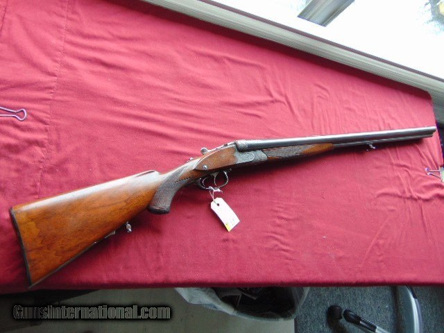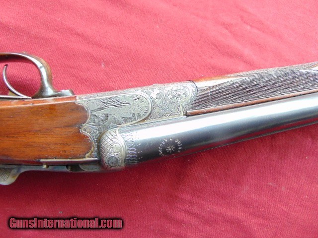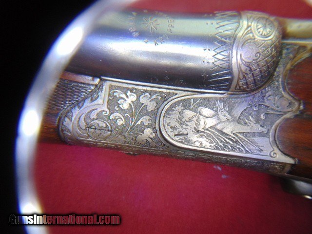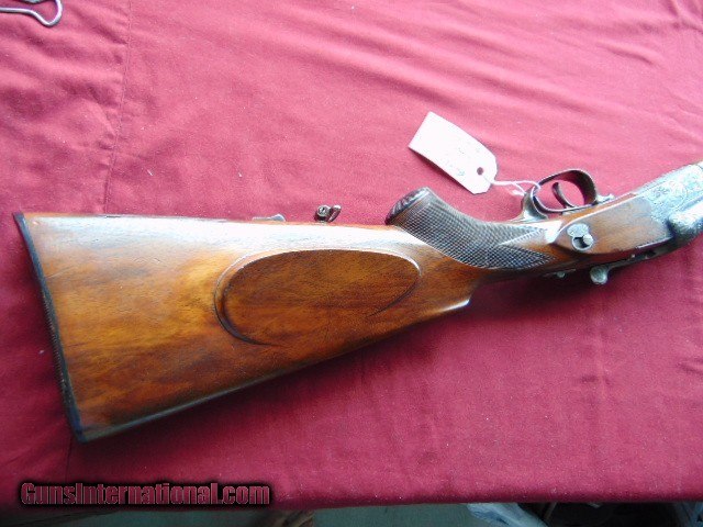 Description: Emil von Nordheim Scalloped Boxlock Drilling Engraved - Nice Emil von Nordheim Scalloped Boxlock Drilling serial #1102, 12 ga. by 9.3mm, 26 1/4” Krupp Flusstahl barrels choked improved cylinder in both, all showing bright excellent bores, left side shotgun barrel shows a ding about 6" down from the muzzle. it can barely be seen looking down the bore. The barrels retain excellent original blue. The scalloped side clip frame is a smoky case-hardened patina . It shows foliate scroll with a stag right and red left. The horn triggerguard with no cracks. European walnut buttstock showing light handling. The length of pull to the grooved horn buttplate is 13 3/4” and has double triggers, the front a single set. Sighted with bead style front sight and a flip-up rear when the rifle barrel is selected. The makers name is inlaid in silver on the rib, Emil von Nordheim in Zella-Mehlis was established in 1879 .gun proved in 1922. The underside is marked with the caliber “9mm” and “54”, perhaps indicating a 9.3x54. have it checked by a gunsmith before firing , there is a light grainline crack on the right side of the stock near the receiver. ( looks like a light surface line) . Nice looking drilling. ADD 35.00 UPS GROUND SHIPPING FOR RIFLES ADD 35.00 UPS 2ND DAY AIR SHIPPING FOR HANDGUNS EASTERN BRANCH FIREARMS Questions e-mail or call Glen at Eastern Branch Firearms 207-215-5021 Fax number 207-588-7605 TERMS – PLEASE READ BEFORE I DO NOT HAVE A LAYAWAY OPTION ( I DO ACCEPT CREDIT CARDS ) -- I GET ALOT OF REQUEST FOR TRADES, I WOULD PERFER NOT TO DO TRADES ON MY INTERNET LISTINGS. LEGAL REQUIREMENT- Modern firearms must be transferred through a licensed FFL dealer in your area. to supply a signed copy of local dealer’s license before shipment will be made. A C&R License is acceptable for C&R firearms only (guns determined to be C&R’s by ATF and guns known to be at least 50 years old). California law will NOT allow shipment of C&R handguns direct to a C&R holder in the State of California, a 01 FFL LIC. dealer must be used. Antique firearms require to supply proof of age. Some areas still require an FFL transfer for antique & black powder firearms (New Jersey, NYC, etc.) Large capacity magazine restrictions: New Jersey - 15 round maximum for semi-automatic firearms only. California - 10 round maximum for all magazines. Maryland - 20 round maximum for all magazines. Massachusetts - over 10 rounds. Hawaii - 10 round maximum for all handgun magazines. PAYMENT OPTIONS- We accept money orders, cashier’s checks , bank checks. sorry no personal checks. We accept all major credit cards please add 3% to the ’s cash discount price.(Maine Residents to pay 5% sales tax) .Handguns and long guns do need to be shipped separate. PLEASE do not send payment via FED EX . USPS & UPS are fine. Thank you. We include a signed copy of our FFL with each firearm shipped SAFTY NOTICE- Buyer is solely responsible for determining that a used gun is safe to shoot. The firearms offered have not been test fired but have been given a visual inspection only for purposes. It is a requirement that every used firearm is inspected by a qualified gunsmith before firing. By , the buyer agrees to hold seller harmless against damages, injury, or death caused by defective merchandise. RETURN POLICY- All firearms come with a 3-day non firing , non messing with ( turning srews ,taking apart,removing parts, scoping. firing, cleaning or messing with in anyway) inspection/return privilege.Inspection is based on a visual review of the gun to confirm the gun is in the condition stated. In the case of a return, buyer pays all shipping charges & if paid for with a credit card buyer absorbs the 3% credit card charges . So please ask questions BEFORE you bid. Thanks for Looking and Good Luck!! U.S. sales only, no exports…this includes antiques. I will ship to third party for exporting- SOLD Curio/Relic: Yes |