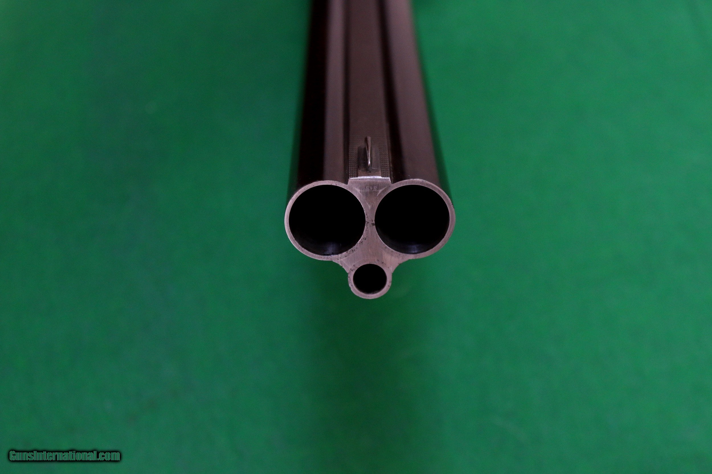Description: A Vintage sidelock drilling non-ejector made by Sauer for Charles Daly with chambering for American cartridges. The 12 ga. 28-inch steel barrels are choked .015 in right barrel and .030 in left barrel with excellent bores and rifling. Gun is tight with crisp triggers and in excellent shooting condition with a flip-up tang peep sight and a side cocking lever and indicator for the rifle barrel. There is also a flip-up rear rifle sight on the barrel rib. The LOP is 14-1/2 inches with a drop of 1-7/8 x 2- 7/8 inches and neutral cast. The weight is 7 lbs. 14 oz. A versatile hunting gun at a favorable price. SOLD Curio/Relic: Yes |