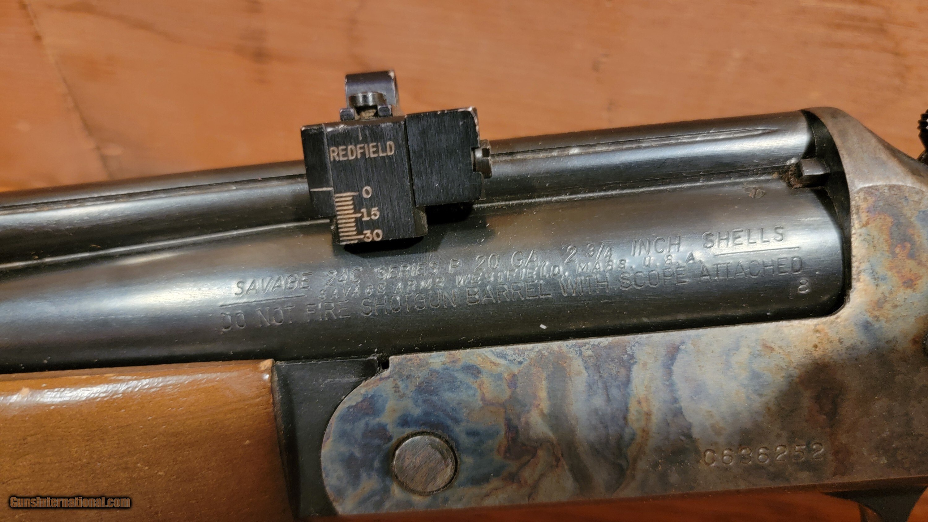Description: Savage 24c Series P Camper Special 22 LR over 20ga 2 3/4 Case color hardened reciever. 20" barrel Overall 35.5". Buttstock door extra ammo. Unique Redfield scope rail peep sight. Super condition looks unused Rifle Caliber: .22 Long Rifle Shotgun Gauge: 20 Gauge Manufacturer: Savage Model: 24c Serial Number: C636252 Barrel Length: 20 Price: $899.00 Shipping: $60.00 Contact Seller |