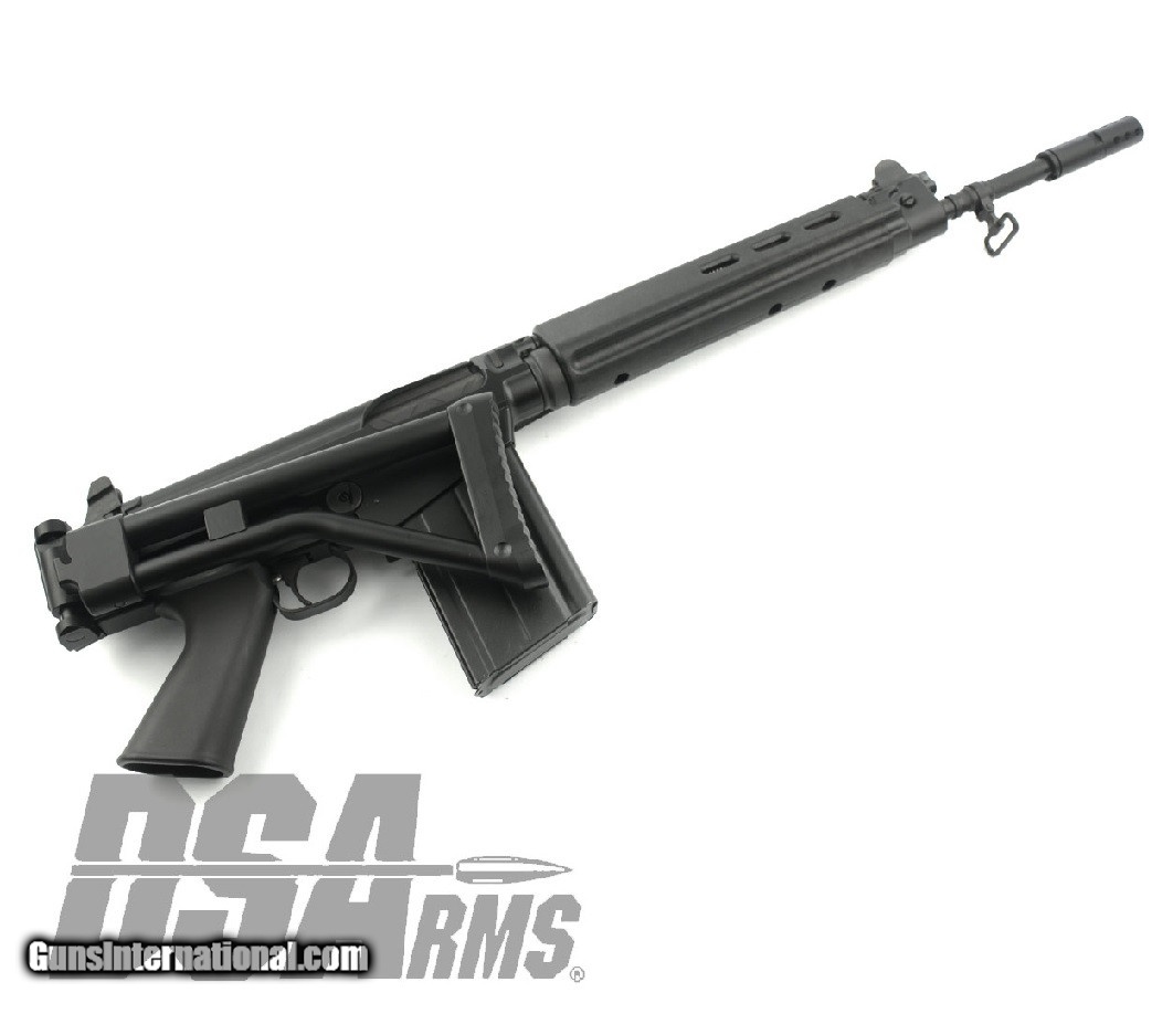 Description: Manufacturer: DS Arms Model: DSA SA58 FAL Bush Warrior Carbine SKU: SA5818C-PBW-A Caliber: 7.62x51 NATO Capacity: (1) 20 Round Metric Magazine Barrel: 18" Premium Standard Profile Barrel Belgian Style Combo Device Flash Hider Barrel Threaded: 9/16x24 Twist Rate: 1:10" Stock: PARA Side Folding Buttstock - Machined Billet aluminum & Steel Overall Length: 37.5" Folded Length: 28.5" Overall Weight: 8.76 lbs Sights Radius: 22" Length of Pull: 14.25" All items are factory new in box unless otherwise stated. Based on the information available to us, the above specifications describe this item to the best of our knowledge. For further information, please contact or visit the manufacturer's . SOLD |