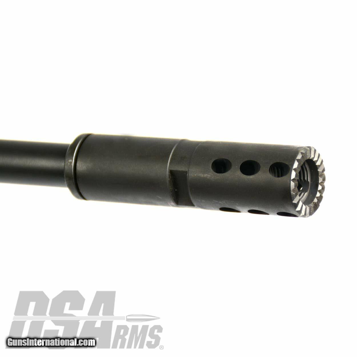Description: Manufacturer: DS Arms Model: DSA FAL SA58 Semi Auto Rifle SKU: SA5821S-V2-A Caliber: 7.62x51 NATO / .308 Win Capacity: (1) 20 Round Magazine (Metric) Barrel Length: 21" Premium Standard Profile, Bi-Pod Cut & Front Sling Swivel Belgian Style Combo Device Flash Hider 4140 Fully Machined & Heat Treated Cast Steel Receiver Pistol Grip & Handguard: US Made Glass Filled Nylon Buttstock: US Made Glass Filled Nylon Humpback Sand Cut Enhanced Fixed Stock Carrier Stock: Traditional Fixed Forged 7075-T6 Aluminum Lower Trigger Frame Owners Manual, Hard Case & Sling Included Finish: Matte Black Duracoat Sight Radius: 22" Overall Length: 43" Overall Weight: 8.75 lbs Length of Pull: 14.25" All items are factory new in box unless otherwise stated. Based on the information available to us, the above specifications describe this item to the best of our knowledge. For further information, please contact or visit the manufacturer's . SOLD |