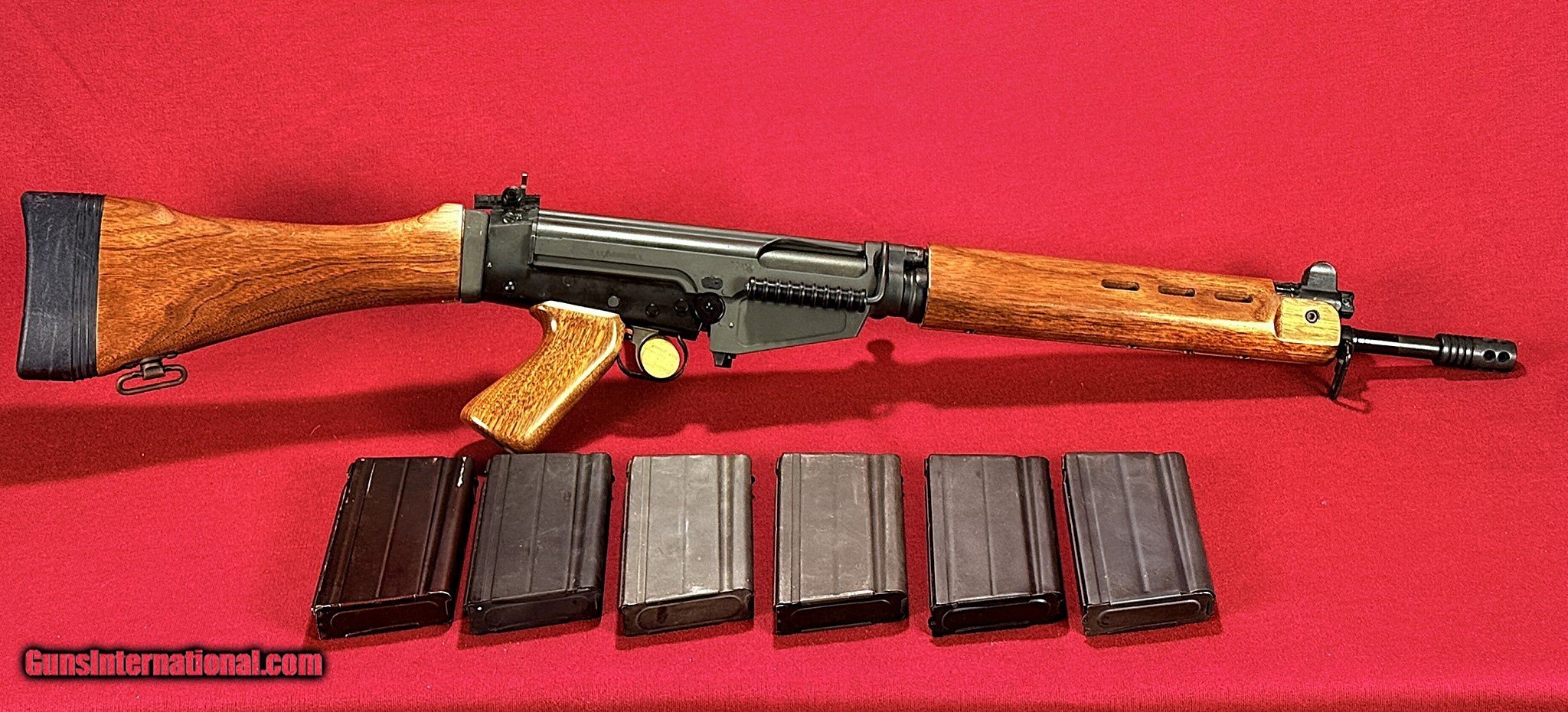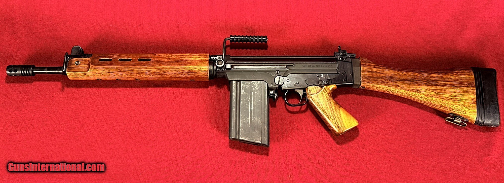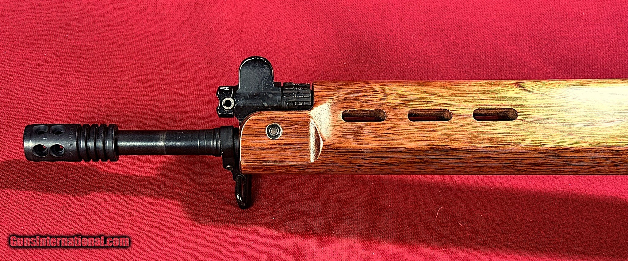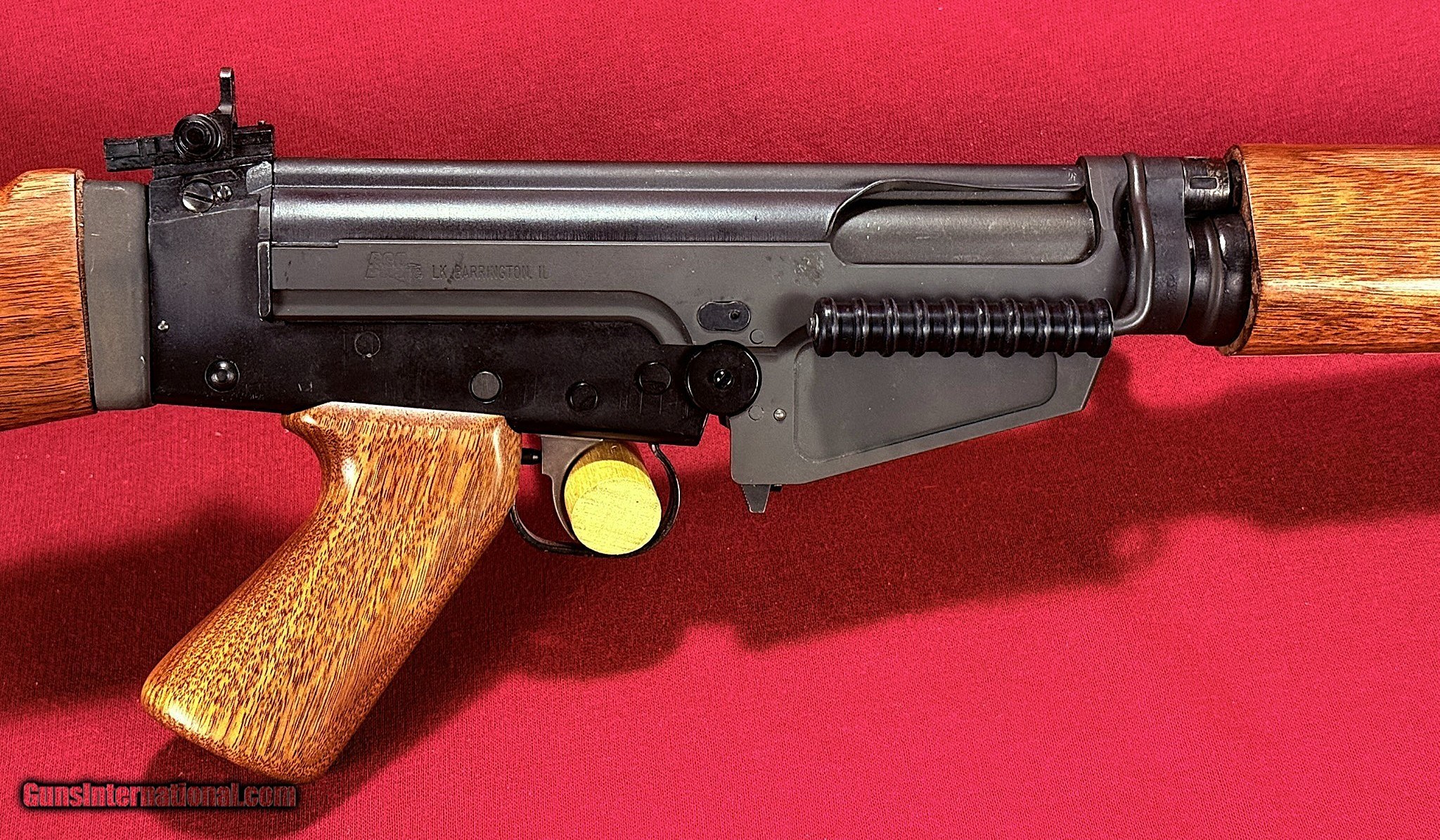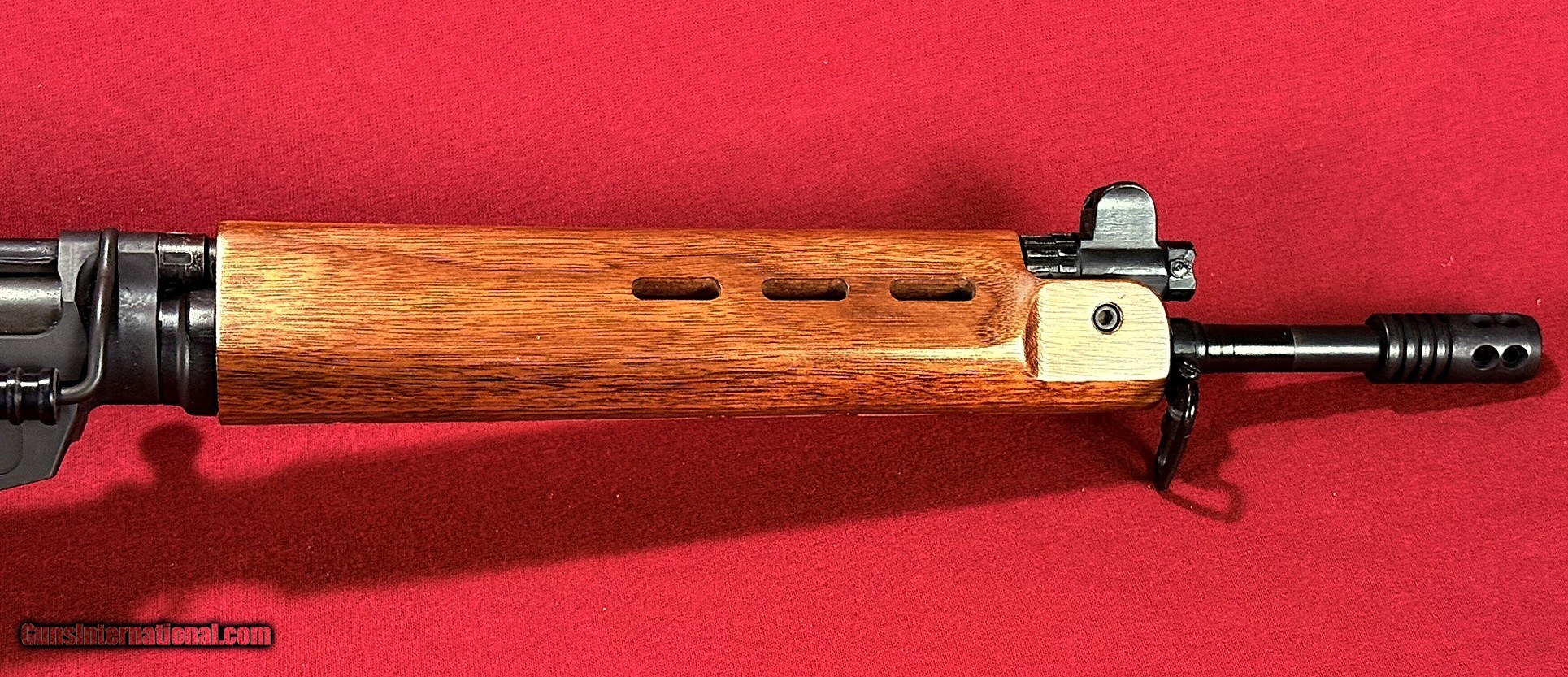 BEAUTIFUL Light Walnut stocked SA 58 by D.S.A. in .308 Caliber, as new, Test fired only. This very nice rifle was previously owned by my son in law. He is a very talented woodworker who also loves guns and shooting. The light walnut stocks are beautiful and show off his skills. He has fired the rifle to ensure proper functioning, but it appears in as new condition. The exception is the charging handle that was apparently replaced for some reason. This is a very nice rifle that is unique and special in appearance.