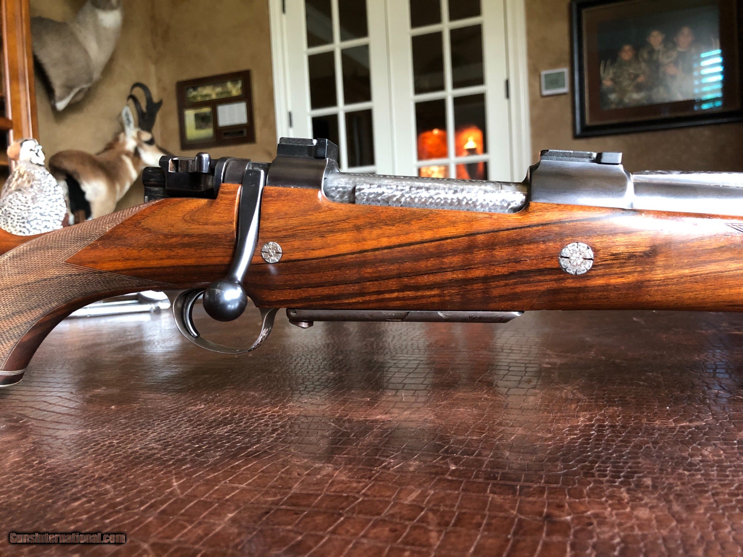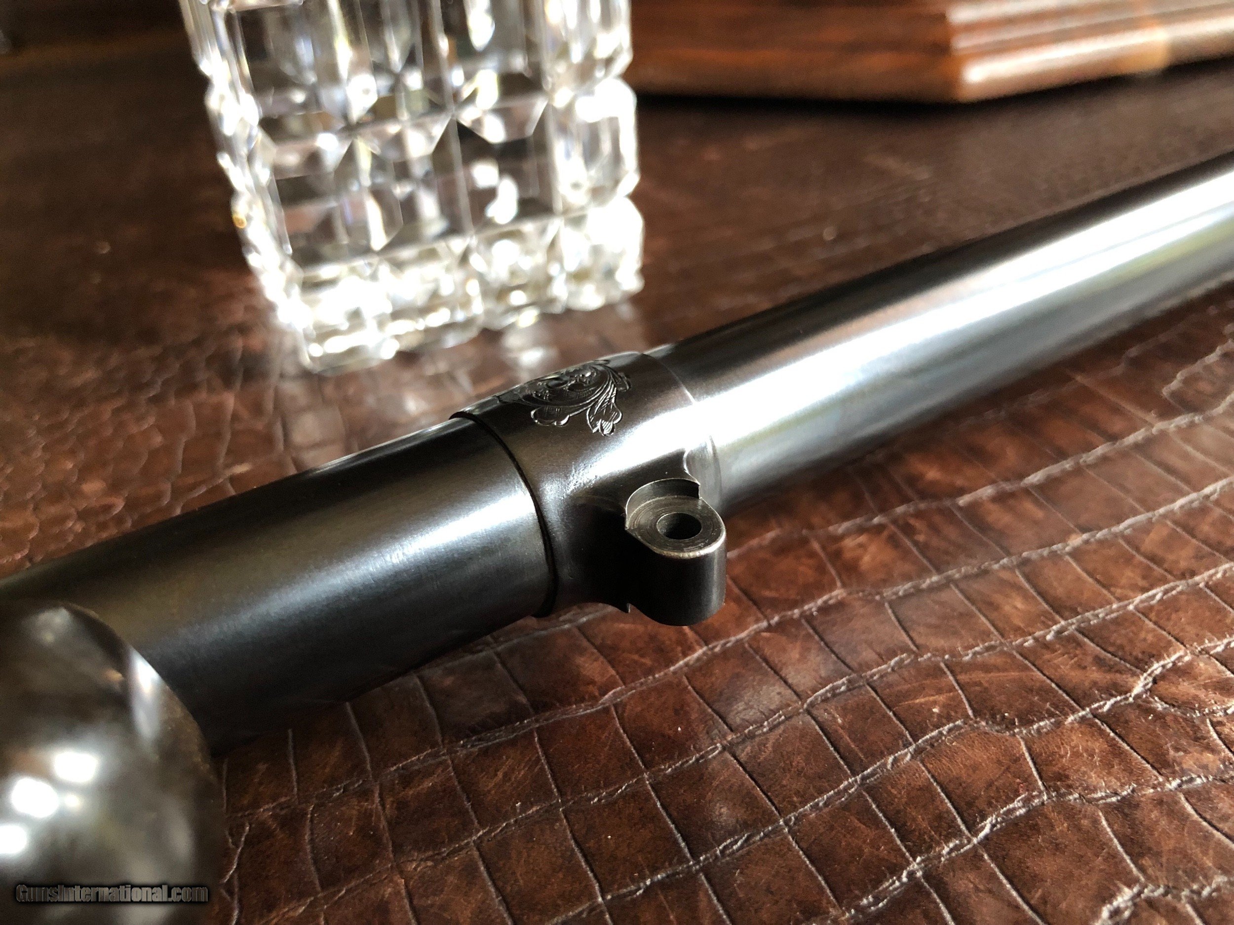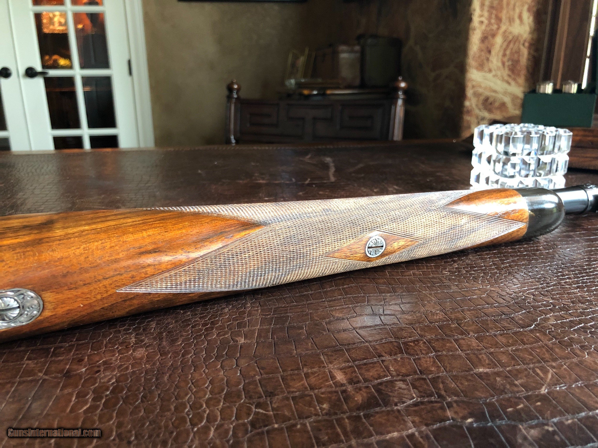 Description: ***SOLD*** Dumoulin Custom Safari Rifle - .416 Rigby - Engraved by R. Greco - Pistol Grip Cap - Elephant on Floorplate and Lion on Trigger Guard - Custom Made in Leige, Belgium - Open Sights 50/100/200 - magnificent in the hands - wood and metal show minor signs of field use - a wonderful way to Safari!! *****SPECIAL NOTE***** 1. I am a reasonable man – I encourage you to make reasonable offers on my listings. At times, there is some flexibility in pricing – other times there is not. I have been collecting guns since 1988 – so I have amassed quite a covey of what I consider to be some very fine guns and some utility guns. Feel free to call me, unlike most gun dealers – I am easy to talk to and will answer the phone on weekends and late evenings (not after 9PM CST). 2. I DO NOT ACCEPT TRADES 3. I do provide LAY-A-WAY plan, please inquire about my terms if you have a need – glad to do it when I can. 4. My collection consists of many guns that were bought from individuals – that means **I BUY GUNS** but I only buy clean used guns with collectibility. In particular - **I BUY SHOTGUNS** 5. ALL OF MY TRANSACTIONS ARE DONE THROUGH MY FFL with whom I have a very solid relationship. If you buy a guns from me, you’ll pay them, they will ship to your FFL of choice and all dealings will be with them post receipt of funds. They are a high end boutique gun dealer in the Texas Hill Country and can accommodate the entire transaction. If you live in Texas and want to drive to see one of my guns, reach out to me to discuss making an appointment with my FFL – I do not show guns at my home nor do I meet guys at public locations for viewings or sales. ALL GUNS ARE LEGALLY TRANSFERRED through my FFL – there are NO EXCEPTIONS. 6. Certified funds are preferred – if you send a personal check for payment the FFL ships one week after receipt. Certified funds payments – shipments are done next business day. NO CREDIT CARD payments are accepted. 7. I encourage you to shoot the guns you buy from me – so during your 3 day inspection – shoot the gun. Make sure it is operating in the manner you expected. If you are not happy – return the gun for a full refund except shipping costs. SOLD |