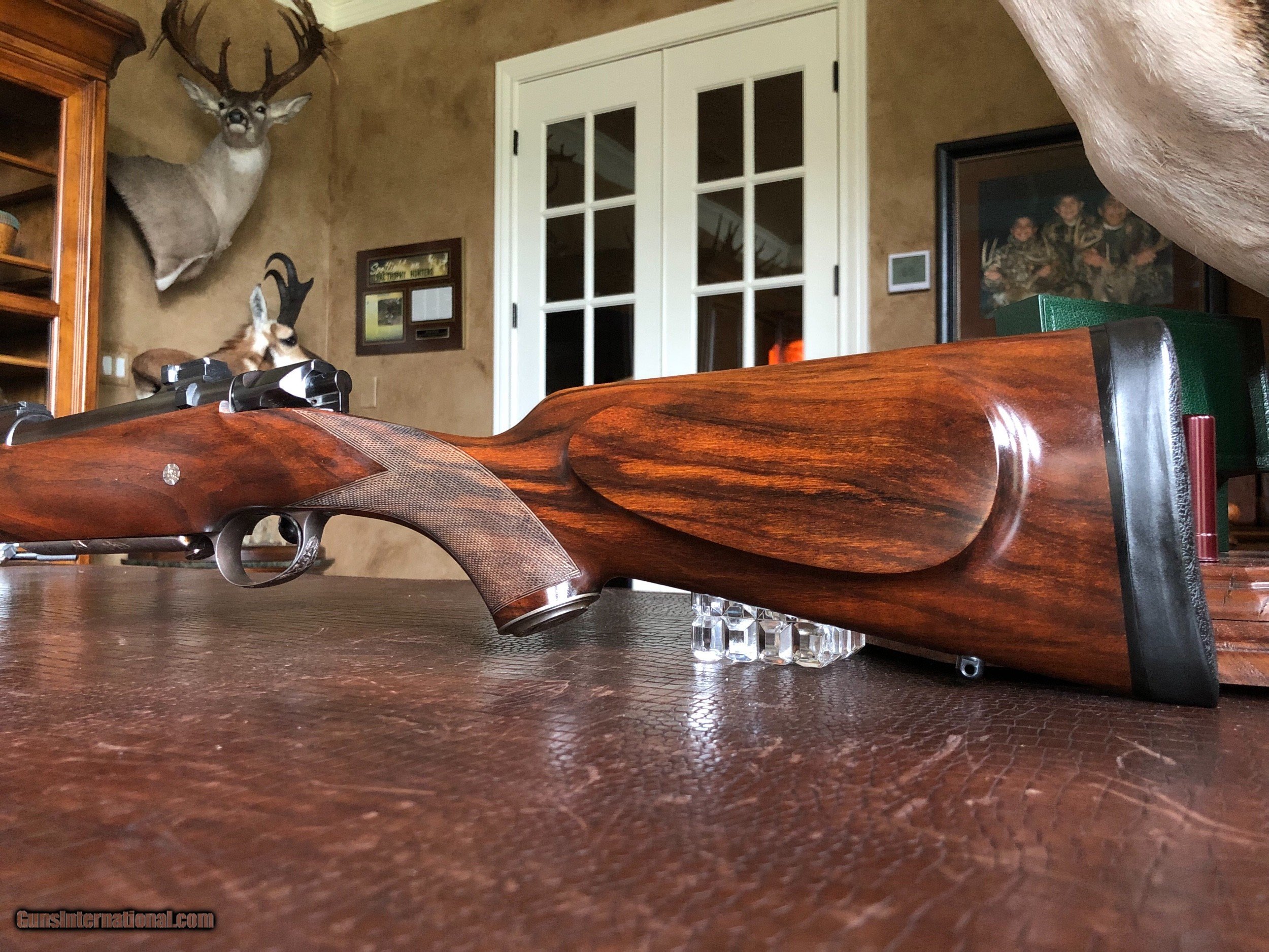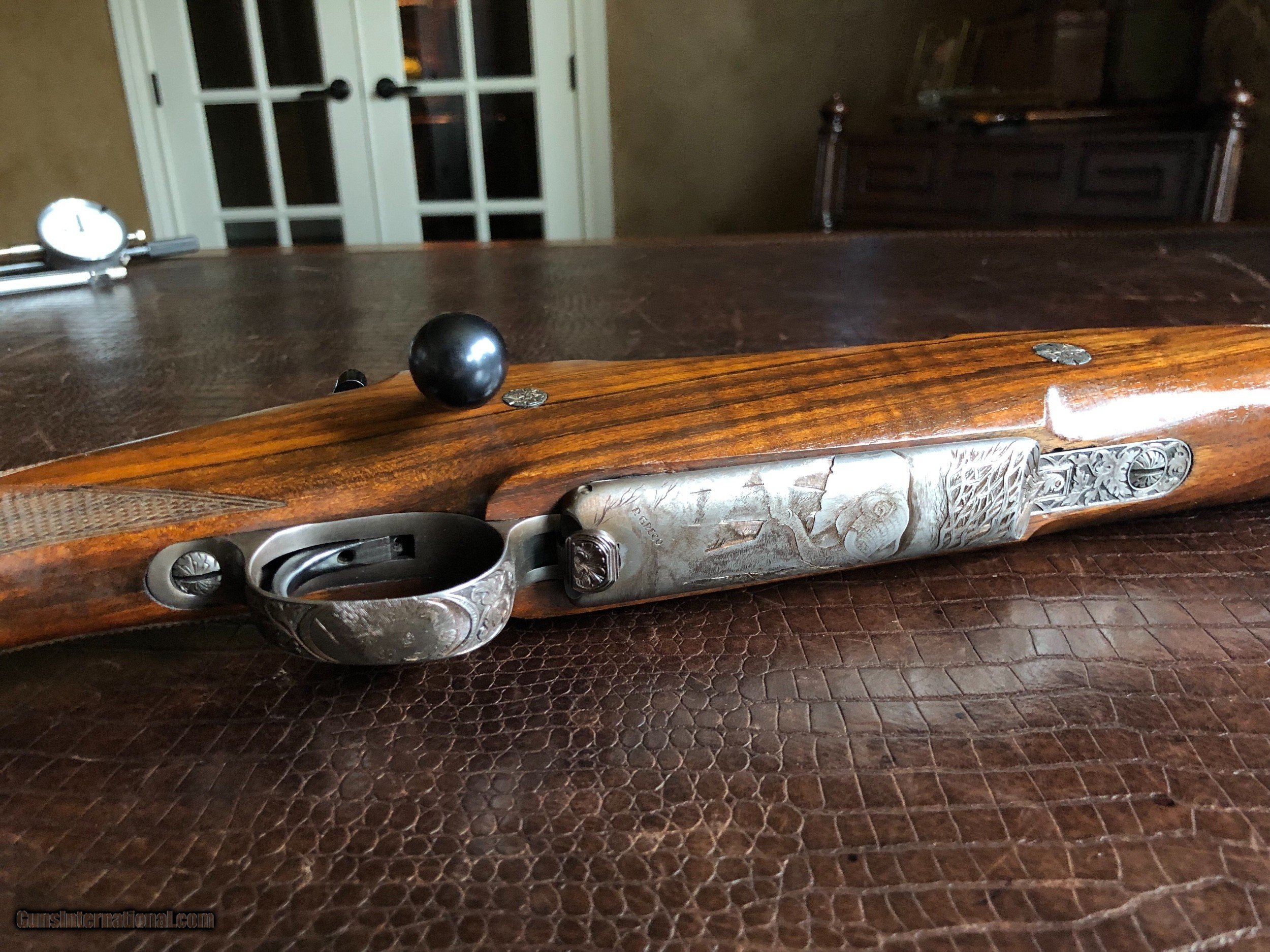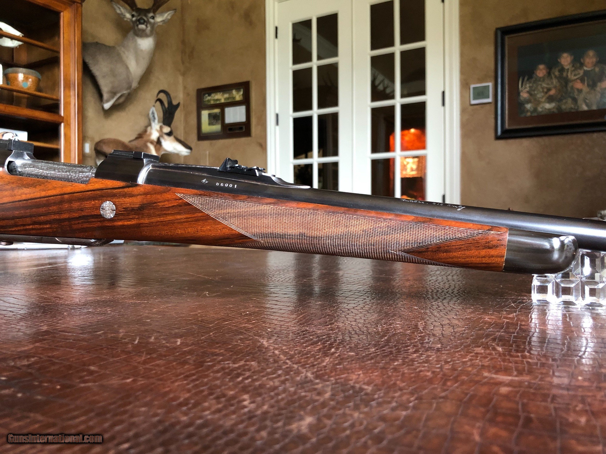 Description: ***SOLD*** Dumoulin Custom Safari Rifle - .416 Rigby - Engraved by R. Greco - Pistol Grip Cap - Elephant on Floorplate and Lion on Trigger Guard - Custom Made in Leige, Belgium - Open Sights 50/100/200 - magnificent in the hands - wood and metal show minor signs of field use - a wonderful way to Safari!! *****SPECIAL NOTE***** 1. I am a reasonable man – I encourage you to make reasonable offers on my listings. At times, there is some flexibility in pricing – other times there is not. I have been collecting guns since 1988 – so I have amassed quite a covey of what I consider to be some very fine guns and some utility guns. Feel free to call me, unlike most gun dealers – I am easy to talk to and will answer the phone on weekends and late evenings (not after 9PM CST). 2. I DO NOT ACCEPT TRADES 3. I do provide LAY-A-WAY plan, please inquire about my terms if you have a need – glad to do it when I can. 4. My collection consists of many guns that were bought from individuals – that means **I BUY GUNS** but I only buy clean used guns with collectibility. In particular - **I BUY SHOTGUNS** 5. ALL OF MY TRANSACTIONS ARE DONE THROUGH MY FFL with whom I have a very solid relationship. If you buy a guns from me, you’ll pay them, they will ship to your FFL of choice and all dealings will be with them post receipt of funds. They are a high end boutique gun dealer in the Texas Hill Country and can accommodate the entire transaction. If you live in Texas and want to drive to see one of my guns, reach out to me to discuss making an appointment with my FFL – I do not show guns at my home nor do I meet guys at public locations for viewings or sales. ALL GUNS ARE LEGALLY TRANSFERRED through my FFL – there are NO EXCEPTIONS. 6. Certified funds are preferred – if you send a personal check for payment the FFL ships one week after receipt. Certified funds payments – shipments are done next business day. NO CREDIT CARD payments are accepted. 7. I encourage you to shoot the guns you buy from me – so during your 3 day inspection – shoot the gun. Make sure it is operating in the manner you expected. If you are not happy – return the gun for a full refund except shipping costs. SOLD |