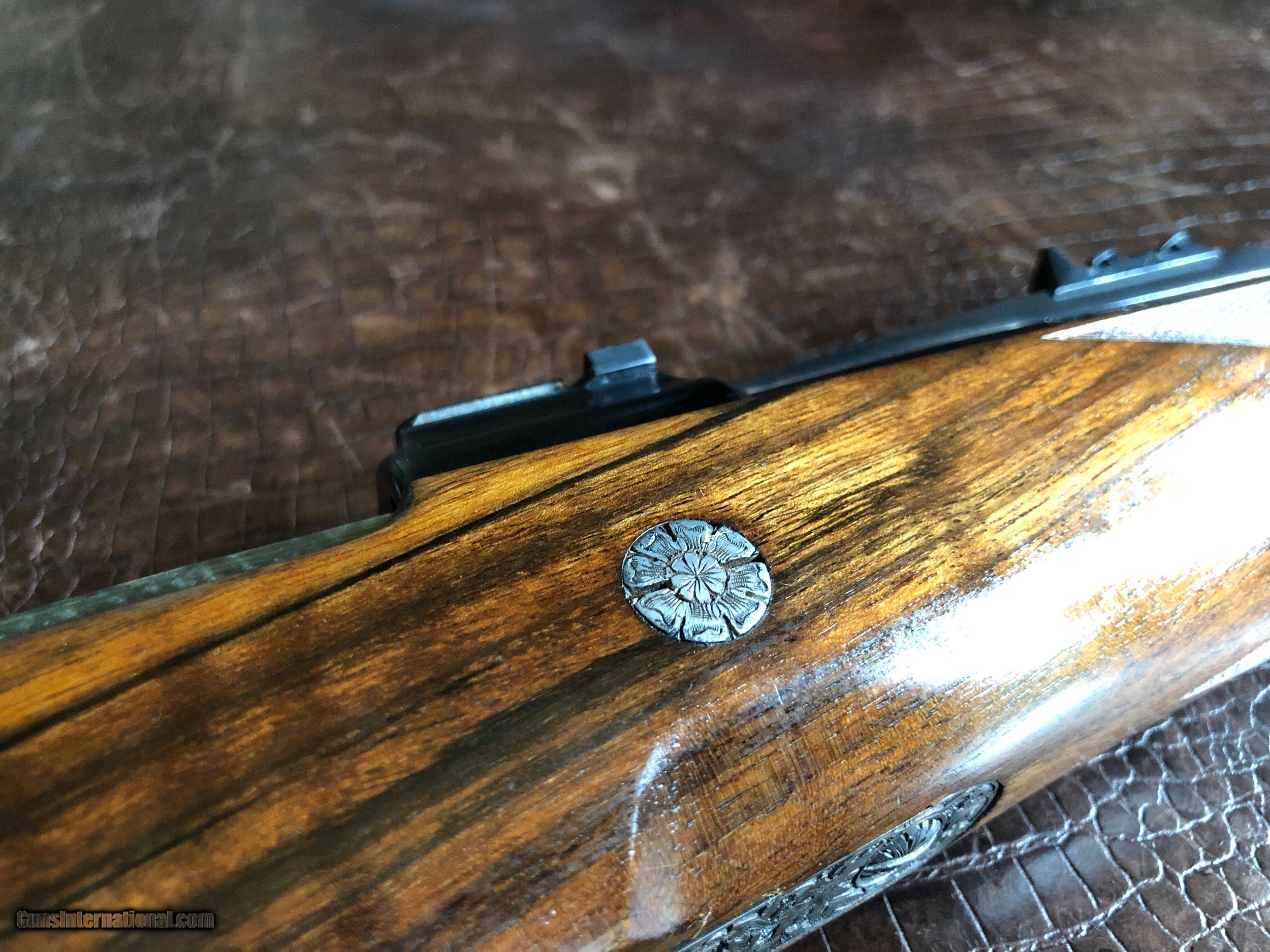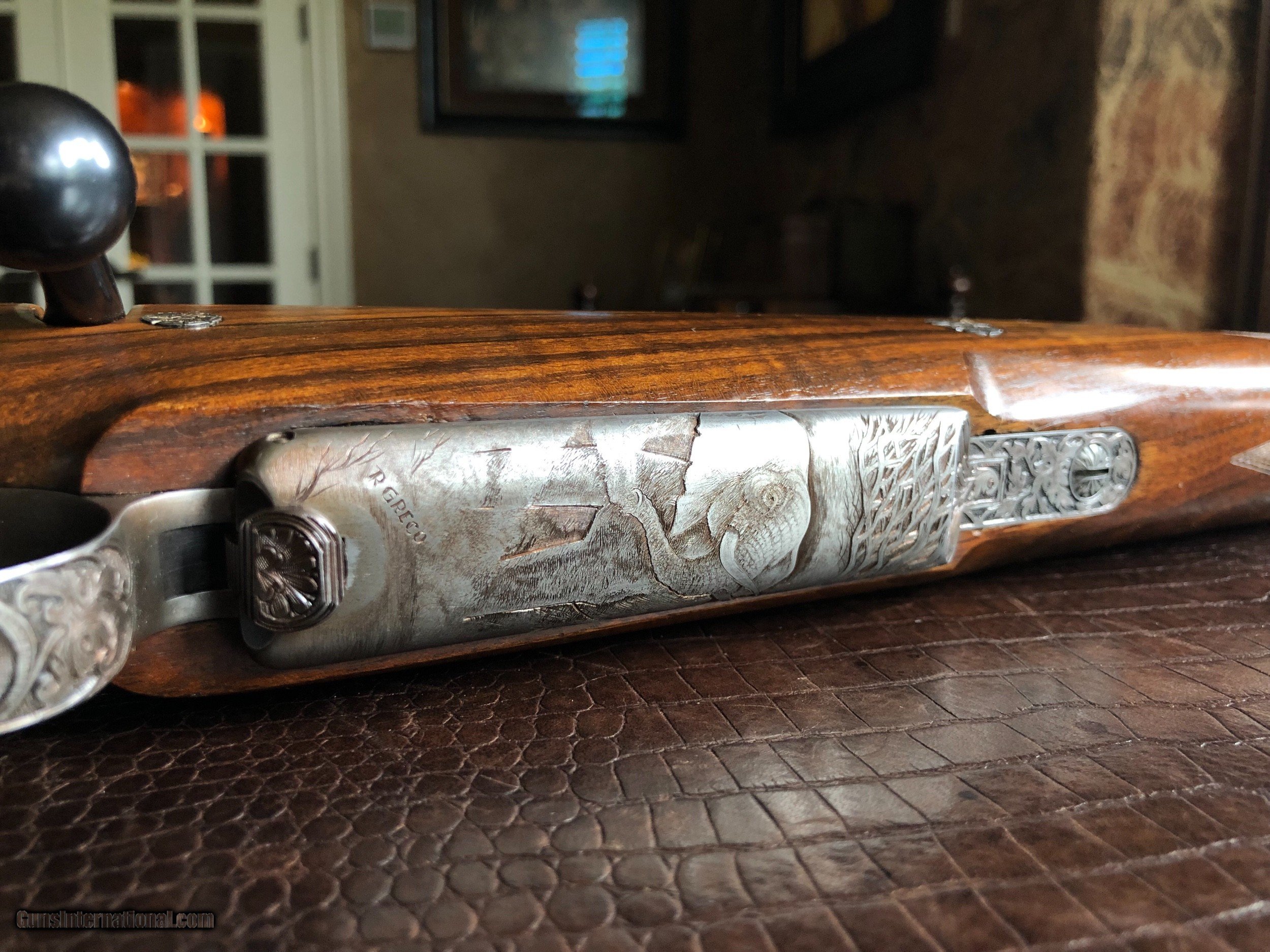 Dumoulin Custom Safari Rifle - .416 Rigby - Engraved by R. Greco - Elephant and Lion - Custom Made in Leige, Belgium - Open Sights 50/100/200