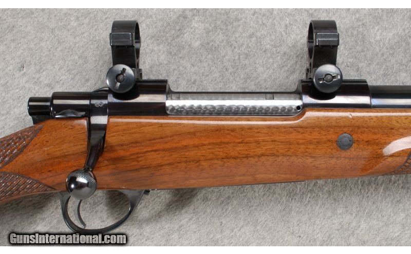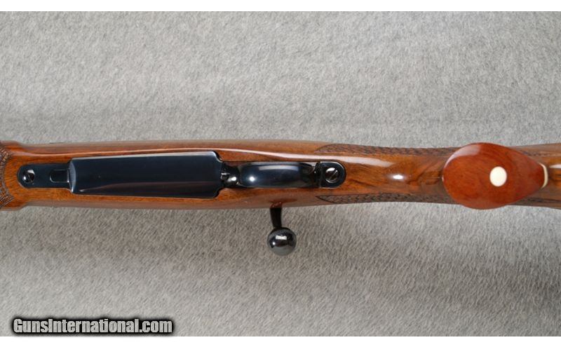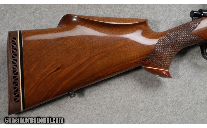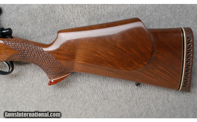 Description: Beautiful rifle built in Belgium by H.Dumoulin on a L61R Sako action. Gorgeous basket weave checkered, walnut stock with raised cheek and rosewood forend and grip caps. Wonderful rifle to hunt with and showoff around the club. 7mm Remington Magnum SOLD Chambers: Bolt action repeater. Metal Condition: "Very good, glossy blued. Wood Condition: "Very good, gloss finish. Barrels: 24" blued. Triggers: Single stainless. Stock Dimensions: 14 1/4" LOP. Fore End: Rosewood cap. Butt Pad: Rubber recoil pad. Sights: Sako proprietary mounts. Item Location: Dundee, MI |