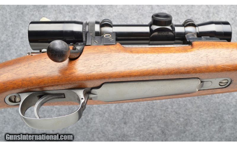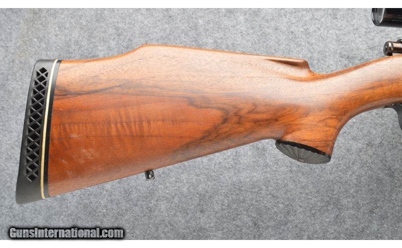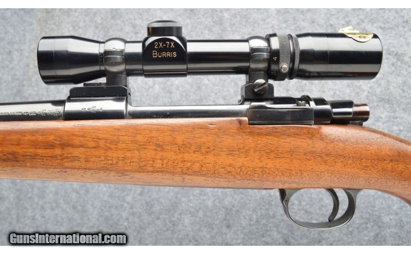 Description: Bolt action. Missing sling swivel on barrel. SOLD Caliber Info: .338 Win. Metal Condition: Large scratch on barrel. Wood Condition: Several marks in wood. Bore Condition: Bright and sharp. Excellent rifling. Barrels: 20 1/2" + 3" flash suppressor. Stock: Checkered walnut with montecarlo comb. Stock Dimensions: LOP 13 3/4". Fore End: Checkered walnut. Butt Pad: White Line Pachmayr. Weight: 9 lbs 3 oz. Sights: Front ramp. Rear adjustable. Burris 2x7 scope. Extras: Burris 2X7 Scope. Item Location: Kansas City, KS |