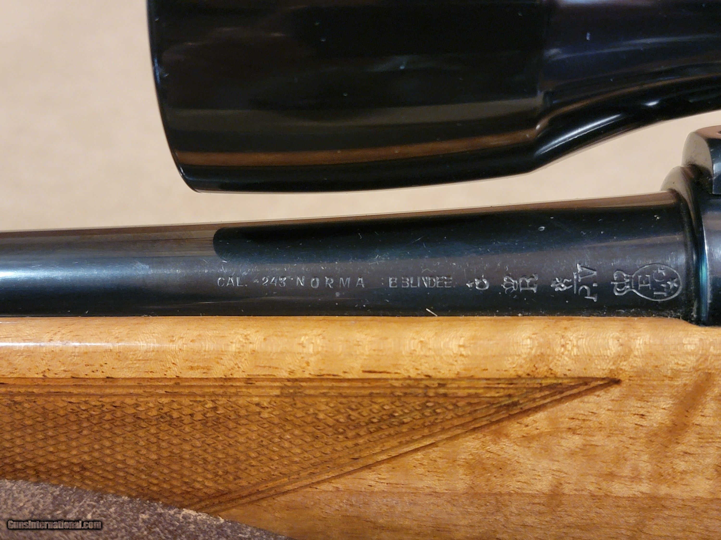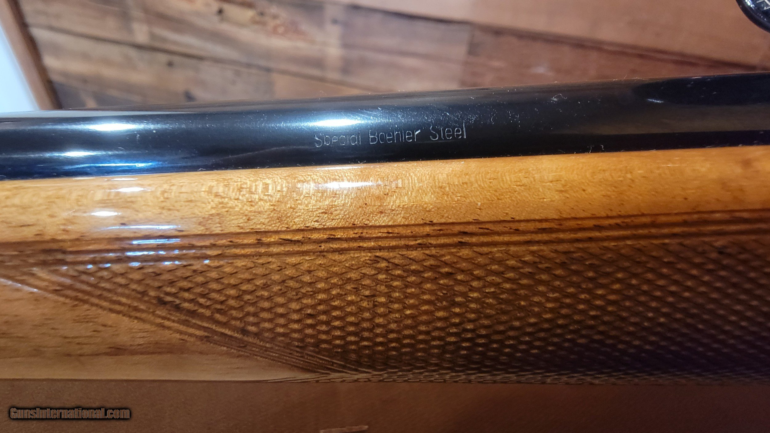 Description: H. DUMOULIN BELGIUM 243 MANNLICHER FS 21" AMAZONE Milmort-Liege Belgium. Special Boehler Steel. Cal. 243 Norma B. Blindee. Fantastic overall condition. Actual Caliber is 243 Winchester. 21" deep blued barrel. Gorgeous figured light maple? Stock. 39 1/2 "oal 12 3/4" lop. Redfield gloss rings & peep sight mount with a nice ScopeChief VI Range Finder 3-9x40 optic. Rarely seen Caliber . C&R eligible. Buyer to pay actual shipping. 5 day inspection . Open to trades for good vintage guns & offers SOLD Curio/Relic: Yes Rifle Caliber: .243 Winchester Manufacturer: H. Dumoulin Model: Amazone |