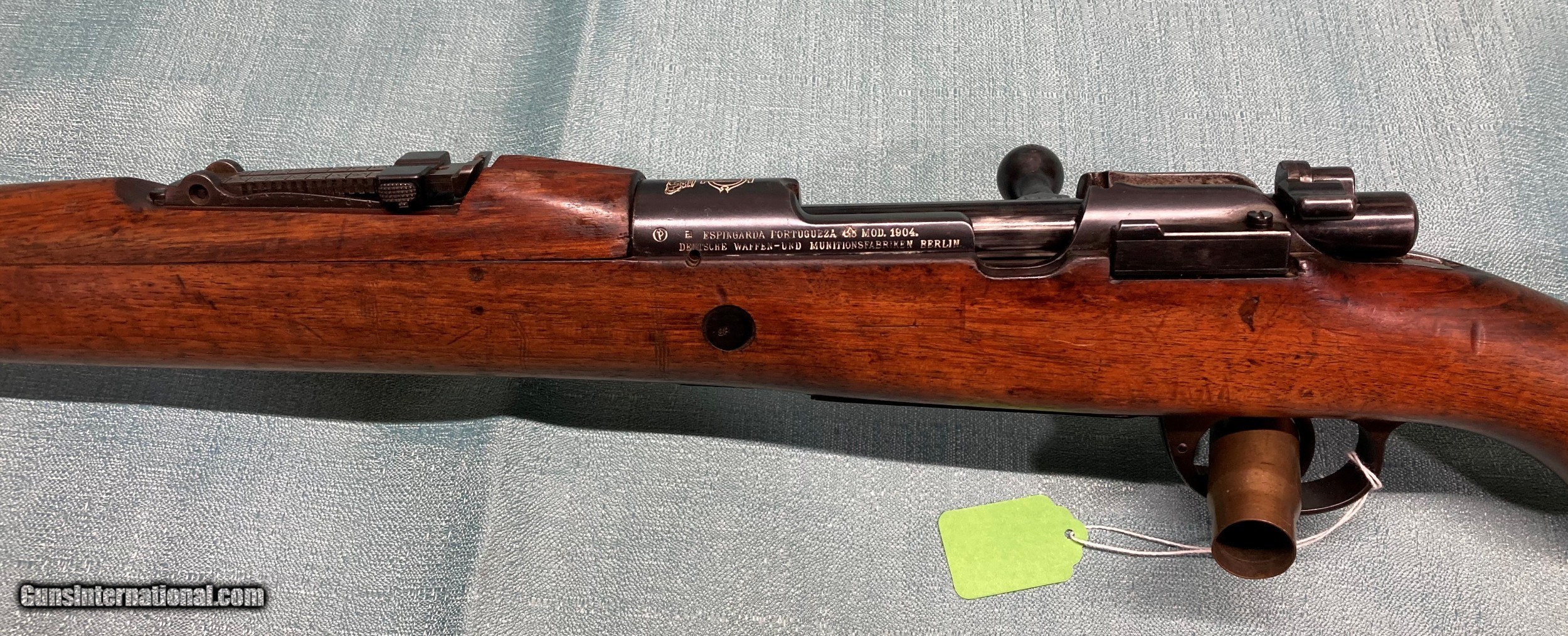 Description: This is an all matching Model 1904 Verguiero in 8mm Mauser. manufactured by DWM This rifle is in very good shape for the year. The receiver, bolt, trigger assembly plate, magazine floor plate and magazine follower are all matching. Bore is good with strong rifling and has a bright bore. It has the crest of King Carlos, entertwined C and I for Carlos the First my information shows it was manufactured between 1904 and 1908. these rifles have a reputation of being accurate and good shooters. This one has a very smooth action. We cannot ship firearms from Dec 19th to the 26th Add 35.00 shipping Maine Residents add 5.5% sales tax Price reflects a 3.5% Cash discount Credit card, Check, or Money order accepted SOLD Curio/Relic: Yes Rifle Caliber: 8x57mm JS Manufacturer: DWM Model: 1904 Serial Number: B198 Barrel Length: 24 Condition: very good Metal Condition: very good Wood Condition: very good Bore Condition: very good Manufacture Date: 1904-1908 |