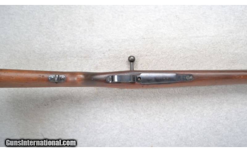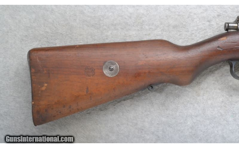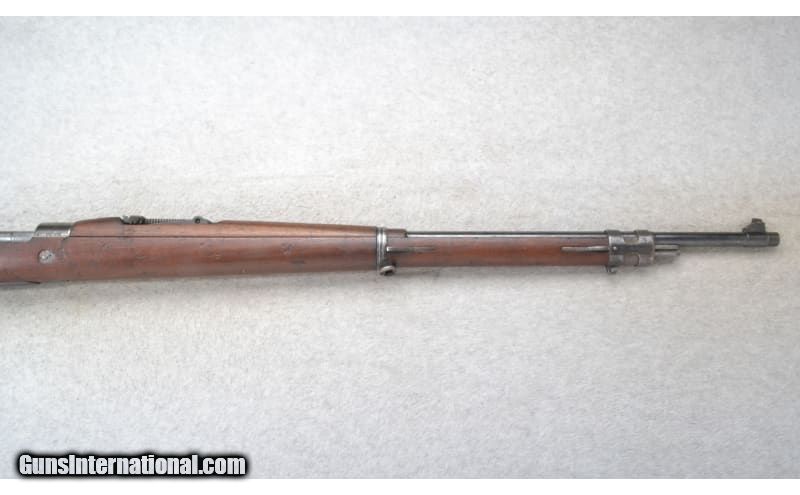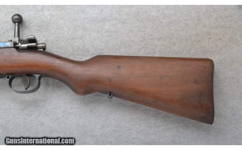 Description: This DWM Model 1908 Brazilian Mauser is a right hand bolt action rifle in 7x57mm Mauser Cal. It has a 29.5 inch barrel. A raised blade front sight and a numbered sliding adjustable notch middle sight. The butt stock is a smooth grip walnut pistol grip. The forearm is a smooth grip two piece walnut with a band. S/N 8316. 7X57mm Mauser SOLD Curio/Relic: Yes Chambers: Internal magazine. Metal Condition: Good. Some freckling. Wood Condition: Good. Handling marks. Bore Condition: Good. Barrels: 29.5 inch. Stock Dimensions: LOP 13 inches. Fore End: Smooth grip two piece walnut with a band. Butt Pad: Smooth steel plate. Weight: 8 lb. 12 oz. Sights: Raised blade front. Numbered sliding adjustable notch middle. Item Location: Richfield, WI |