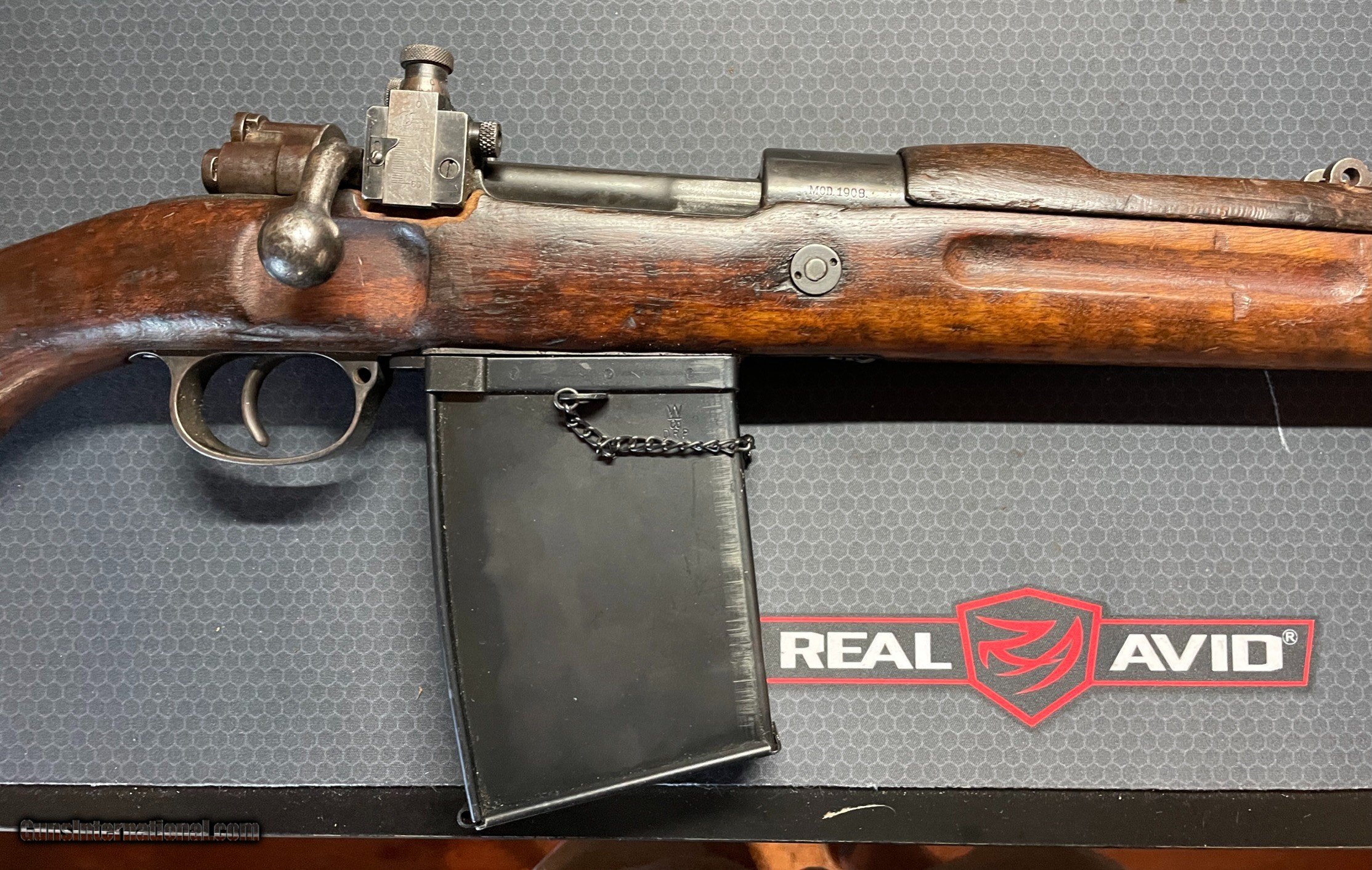 Description: This is a nice rifle for the collectors. DWM Deutsche Waffen 1908 7X75 with Lyman 48C sights. I know very little about this style rifles, I took detailed pictures for the buyer to do their own research. I do know that the Lyman 48C sight on this is very sought after and sells for about $175 if you can find one. We charge $55 shipping (insurance included) and 3% Credit Card fee. Best way to communicate is by emailing me at ctcoolguns gmail . We look forward to earning your business. We are a veteran owned and operated business. We specialize in finding hard to find guns for many collectors. If you are looking for something let us know and we can probably find it. We generally purchase guns through private parties and estate sales and we check to ensure the gun functions, we do not clean, test fire or do repairs to the gun. PLEASE DO NOT BUY UNLESS YOU ARE SURE YOU WILL FOLLOW THROUGH WITH THE PURCHASE. By purchasing, you are attesting to being of legal age to own this item in your state. It is the buyer’s responsibility to know local gun laws, prior to purchase, if it ships to your dealer and it's not legal in your state no refunds. California s must have the FFL say the guns legal in your state before you buy. All items have a 3-day inspection and inspections should take place while at the FFL’s location. Arrangements of payments must be made within 3 days of purchase. It is your responsibility to know if you will pass the FFL background check, no refunds if you don't. If you back out of the sale a 15% restocking fee will be charged, we encourage you to have the gun checked before firing to insure it's safety. SOLD Curio/Relic: Yes |