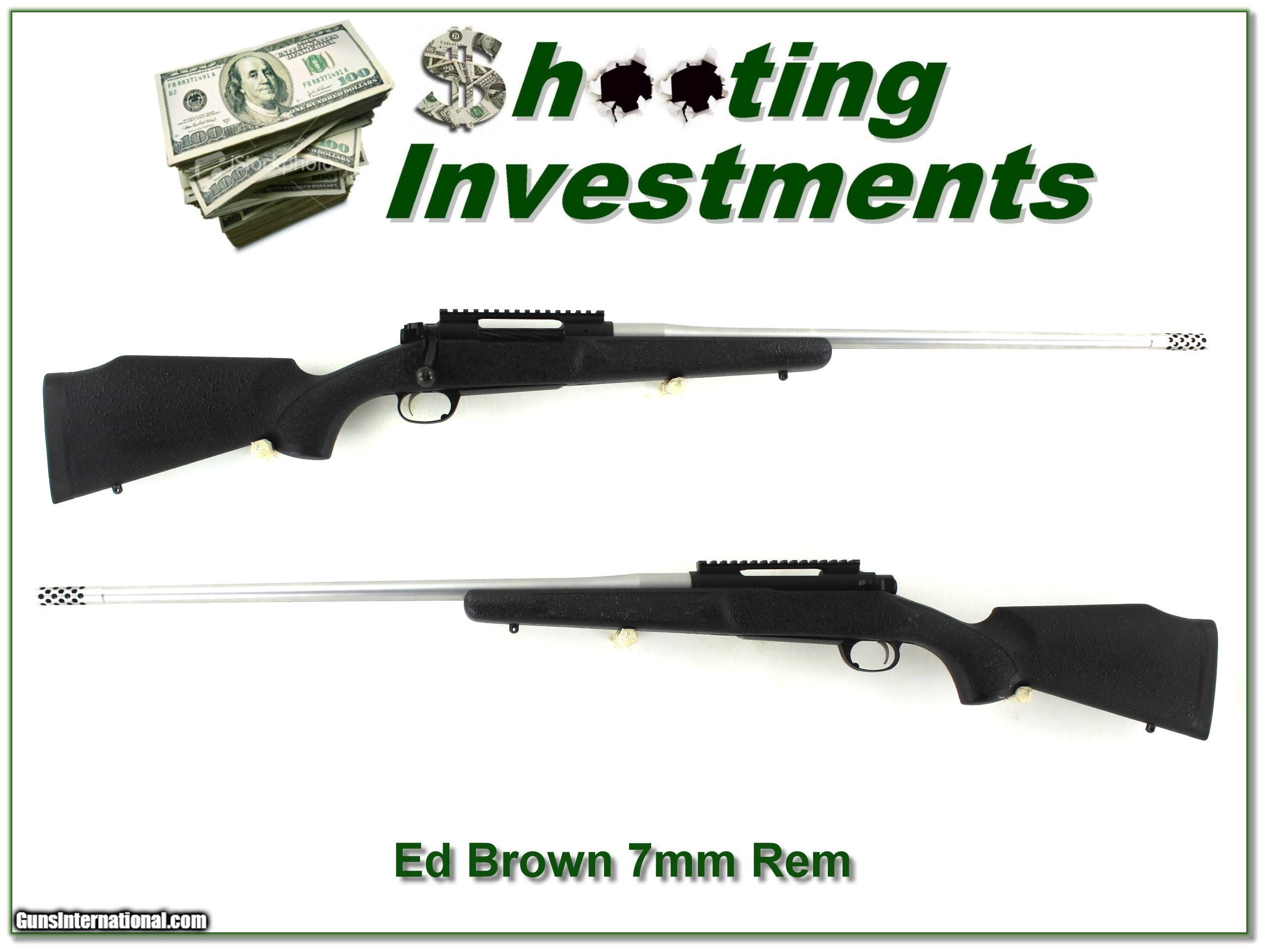 Description: Shooters and hunters, this is a near new high-end Ed Brown custom rifle in 7mm Remington Magnum. I am selling it for it’s original owner that only fired a few rounds through it. It has a 26in stainless barrel including the break. It has a spiraled bolt and excellent rigger as you would expect. I am selling this one on consignment and as such lay-a-way can’t be used. It does of course have the standard 3-day inspection. Shipping and insurance is $69. Please email me with any questions or larger pictures. (Consign your quality firearms with Shooting Investments for only 12%! Let me know if you have any you would like to sell!) 23-0633 Payment: Payment is by Money Order, Cashier’s Check or Personal Check. I can now also accept Credit Cards (MasterCard, Visa, Discover & American Express) with a 3% convenience fee. Shipping: The shipping charge will be listed in each description. It is $49 for most firearms. Some heavy guns or those insured for over $2000 will be higher. Shipments to Alaska and Hawaii are higher because air shipment is required. Most firearms are shipped on Tuesday and Thursday and usually in 5 days of receipt of payment. We package all shipments carefully and insure them. Optics are shipped Priority Mail and most other non-firearm shipments are shipped First Class. Returns: Our return policy is simple. If for any reason you are not pleased with your purchase, you may return your item for a full refund of purchase price. Ammunition cannot be returned. It is important to us that you are happy. Guns cannot be fired or dissembled before returning them and they must be returned in the same condition as received. Notification of a return must occur within 3 days of receipt at your dealer. Shipping, convenience and dealer fees are not refundable and are the responsibility of the buyer. Lay-a-way: If needed, we offer a 60 day lay-a-way option on most firearms. It is 1/3 now, 1/3 in 30 days and 1/3 in 60 days. Lay-a-way firearm sales are final and cannot be returned. If a lay-a-way is not completed the first payment cannot be refunded. Consigning your firearms with Shooting Investments: We will help you get top dollar for your firearms. While most local guns shops charge 20% or more, our fee is only 12% with a minimum of $75. At your local gun shop it might take months to sell. Selling on-line provides instant access to thousands of interested buyers. You won’t find any other on-line dealer willing to sell your firearms for only 12% or listing every gun on 3 separate s. Selling through an House typically costs the seller 15% and the buyer an addition 15% (so 30%) and you have to wait several months to sell and longer to receive funds. If properly priced, we will sell your firearms within a few weeks. Send us an email or give us a call and we’ll explain how easy it is for you to get top dollar. Trading: Trading for us is really just buying your gun to re-sell. If you have a gun you want to trade, please email a picture and we will let you know what we can give for it. You will always get more if we sell it for you on consignment. SOLD |