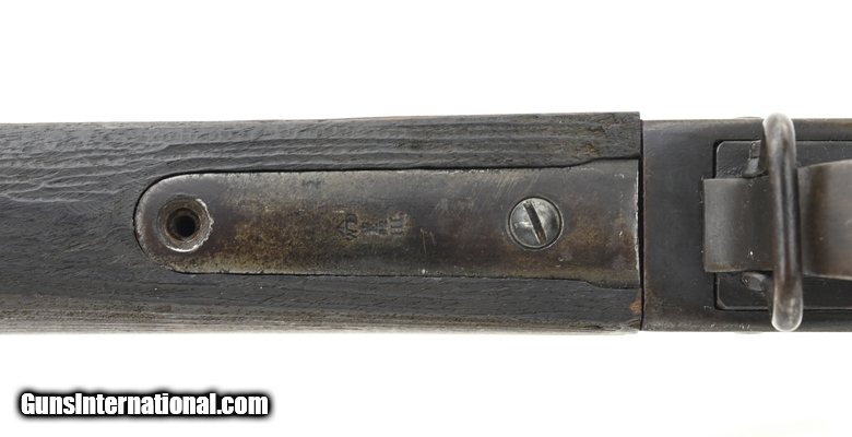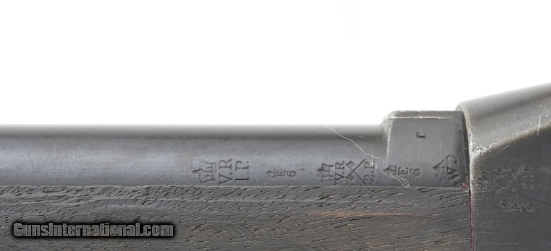 British Martini-Henry .577-450 caliber rifle. Manufactured by Enfield in 1887. Stocks are later replacements. Rifle has long lever and “sold out of service” markings on top of receiver. Bore is excellent. Good overall condition.