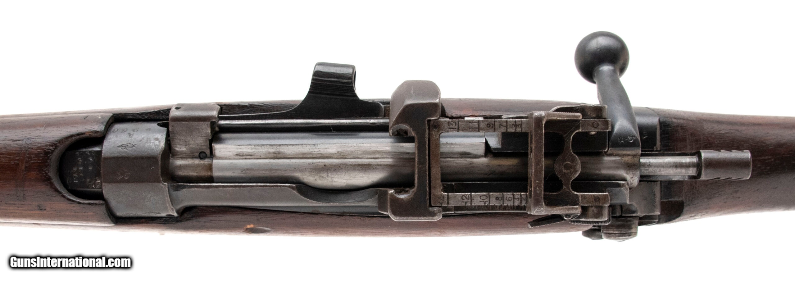 Description: "SN: A4966. 1922 to 1924 production. Bolt action rifle chambered in 303 British with a 25"" barrel. Overall condition is great with some minor rack wear and an excellent bore. 20,000 of these rifles were made after WW1 as a trial rifle for British service and they featured a rear aperture sight, magazine cutoff and the ability to take a blade type bayonet. SOLD |