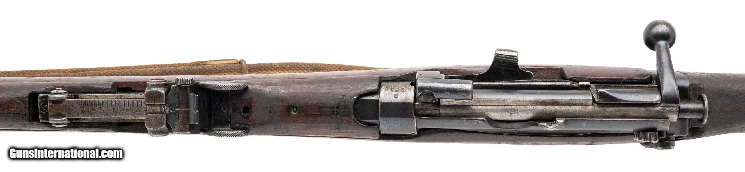 Description: "Serial No. G103, manufactured in 1905, .303 British, 25" round barrel. Serial numbers are matching throughout, with the bolt arsenal restamped “G113," the original “G103" still faintly visible beneath. Magazine is unmarked. Rifle retains its original magazine cutoff and sliding charger guide on the bolt face—features characteristic of early SMLE production. Stock shows scattered nicks, dings, and scratches consistent with extensive field use. These early Mk I*** rifles were issued to the Royal Navy and saw heavy service during the Gallipoli Campaign. Action is smooth and functions correctly. A scarce and historically significant early SMLE, representing one of the rare surviving examples from Britain’s first generation of Lee-Enfield service rifles. Price: $1,795.00 Contact Seller |