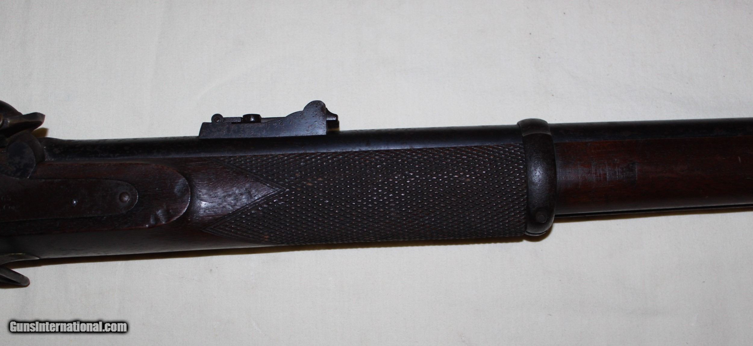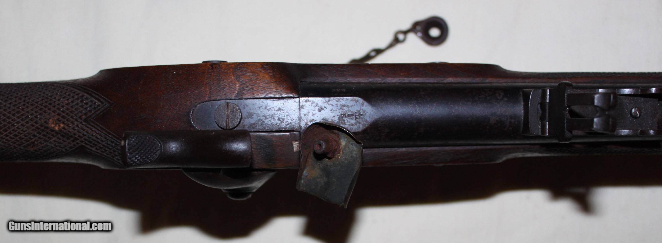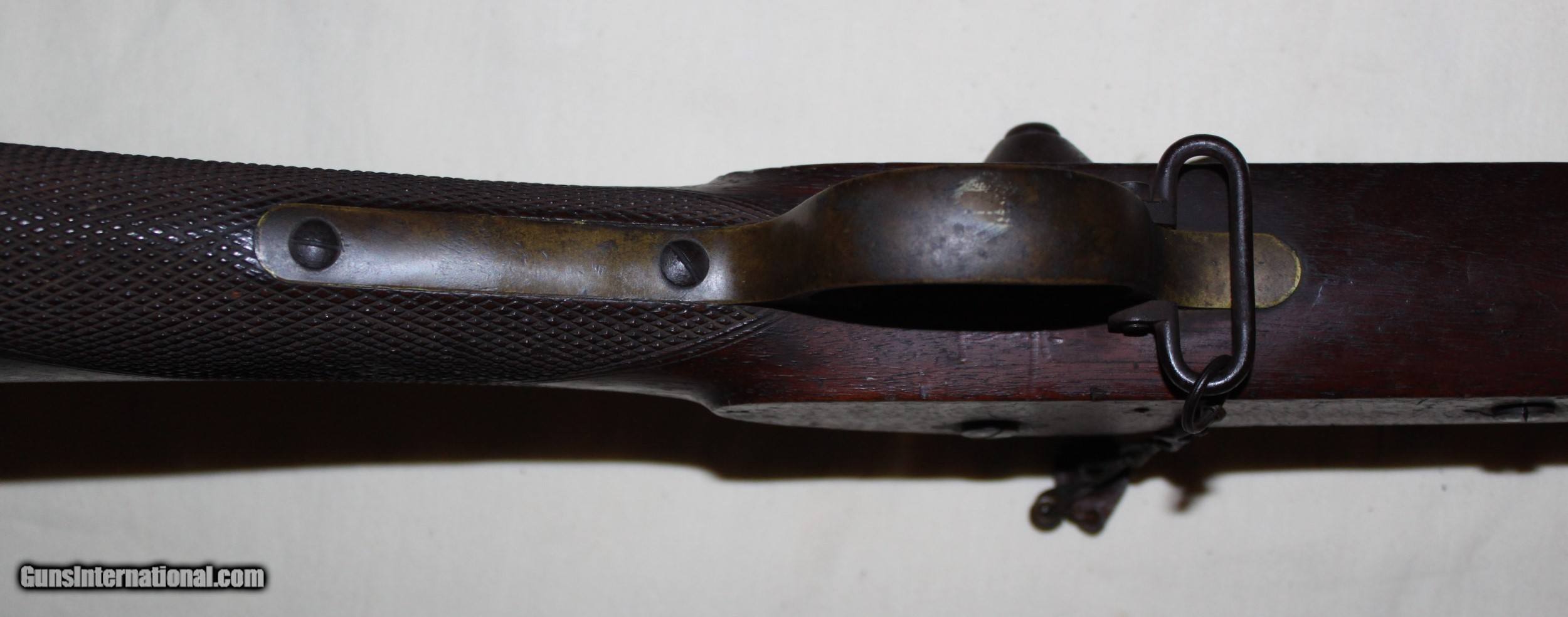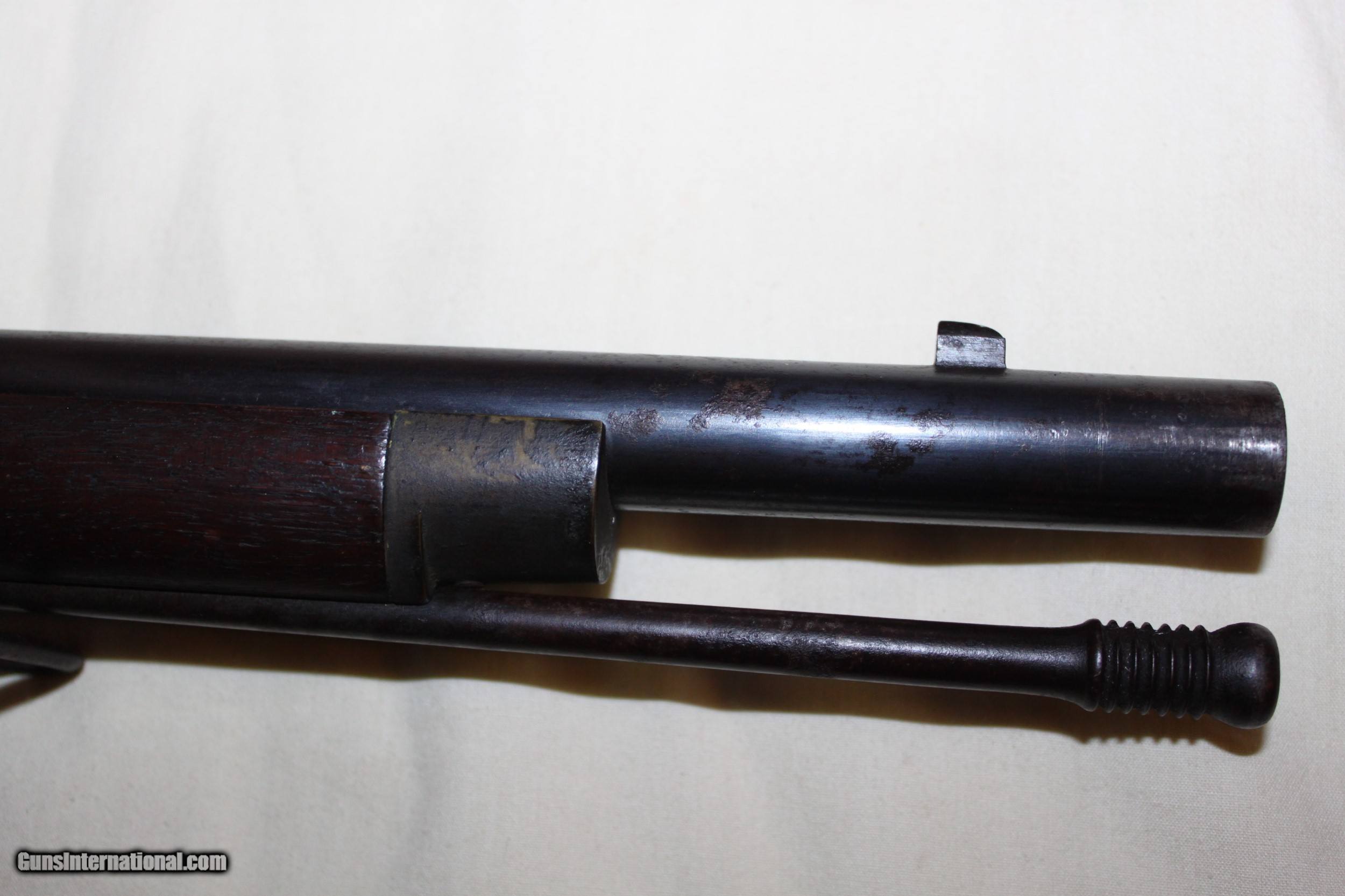 Description: 1853 Enfield Musket "Volunteer Pattern 53" Lock Plate Dated 1863 L.A.C. Wood Stock Stamped London Armory 1869 Checkered Stock and Forehand Grip likely issued during the New Zealand wars ( Land Wars ) 1845 - 1872 Musket is in Strong Working Order retaining most of the original Blue has surface rusting and rust inside the barrel. Domestic Sales Only SOLD |