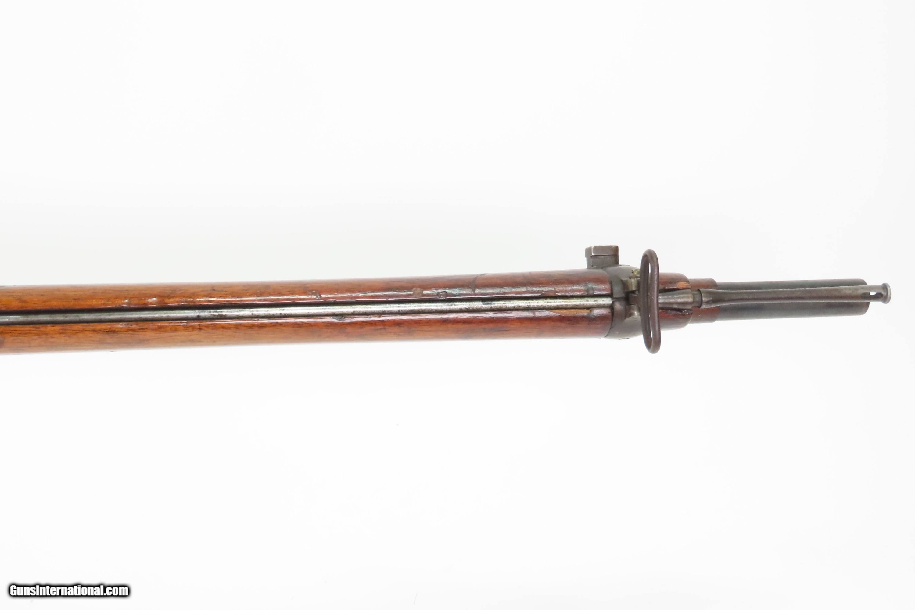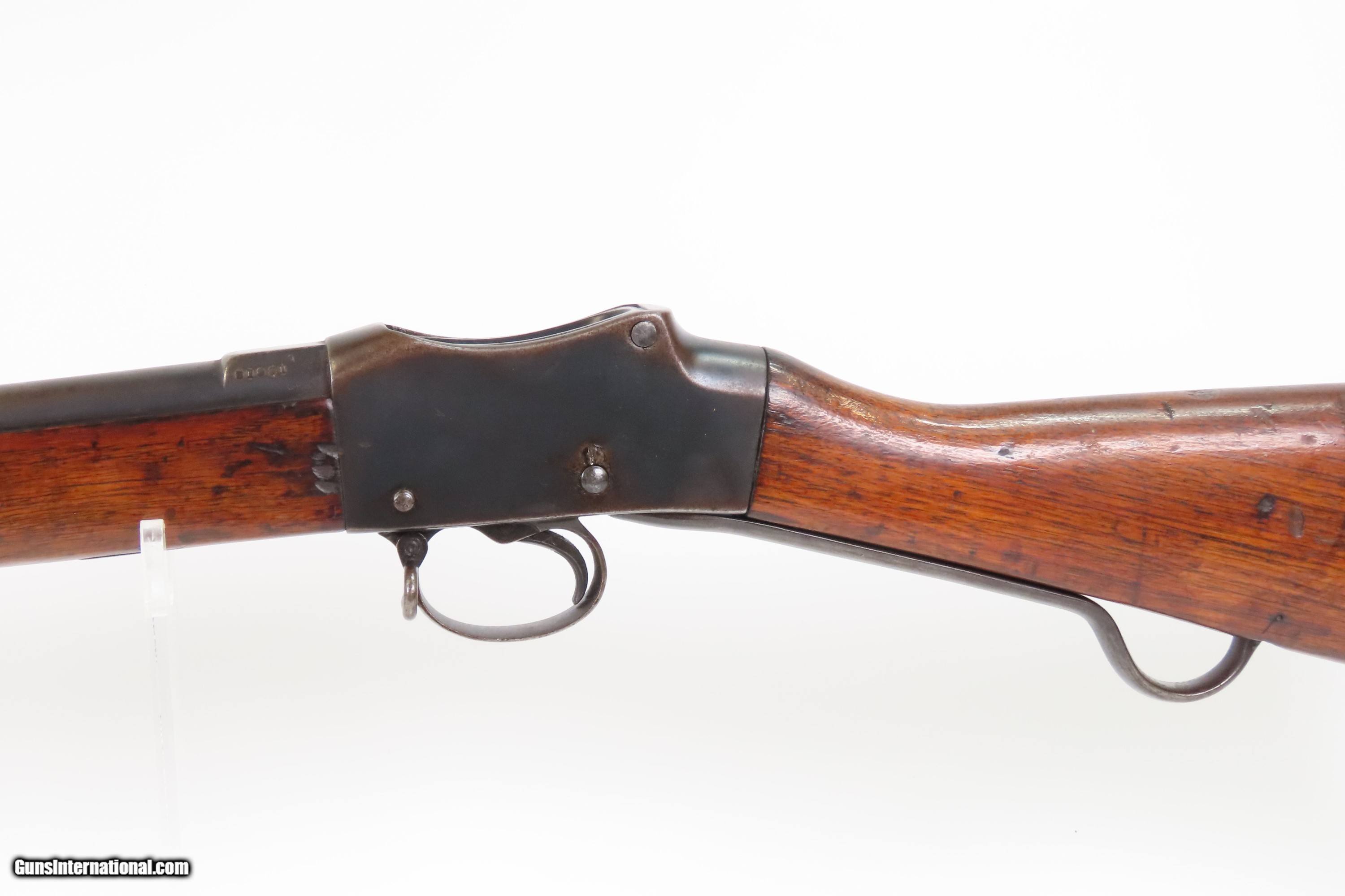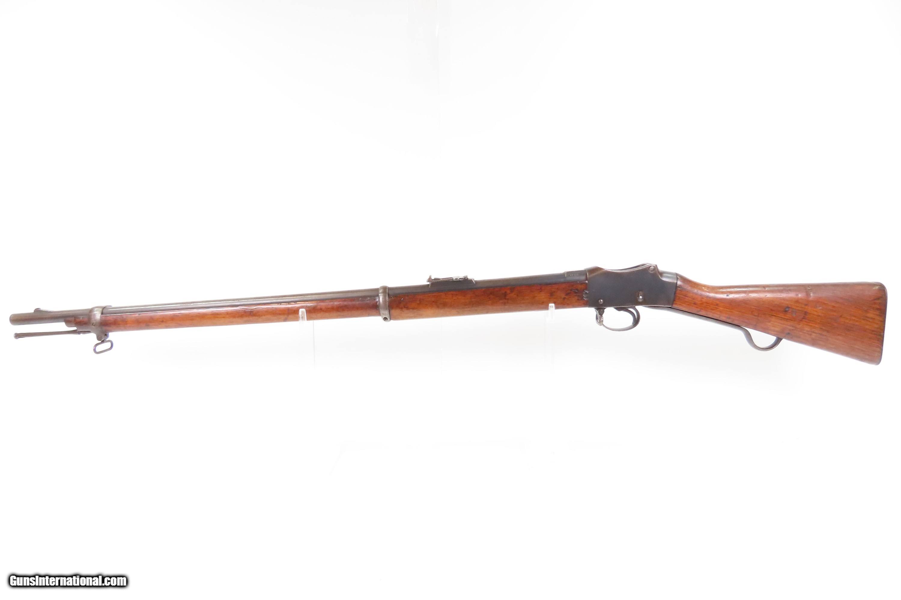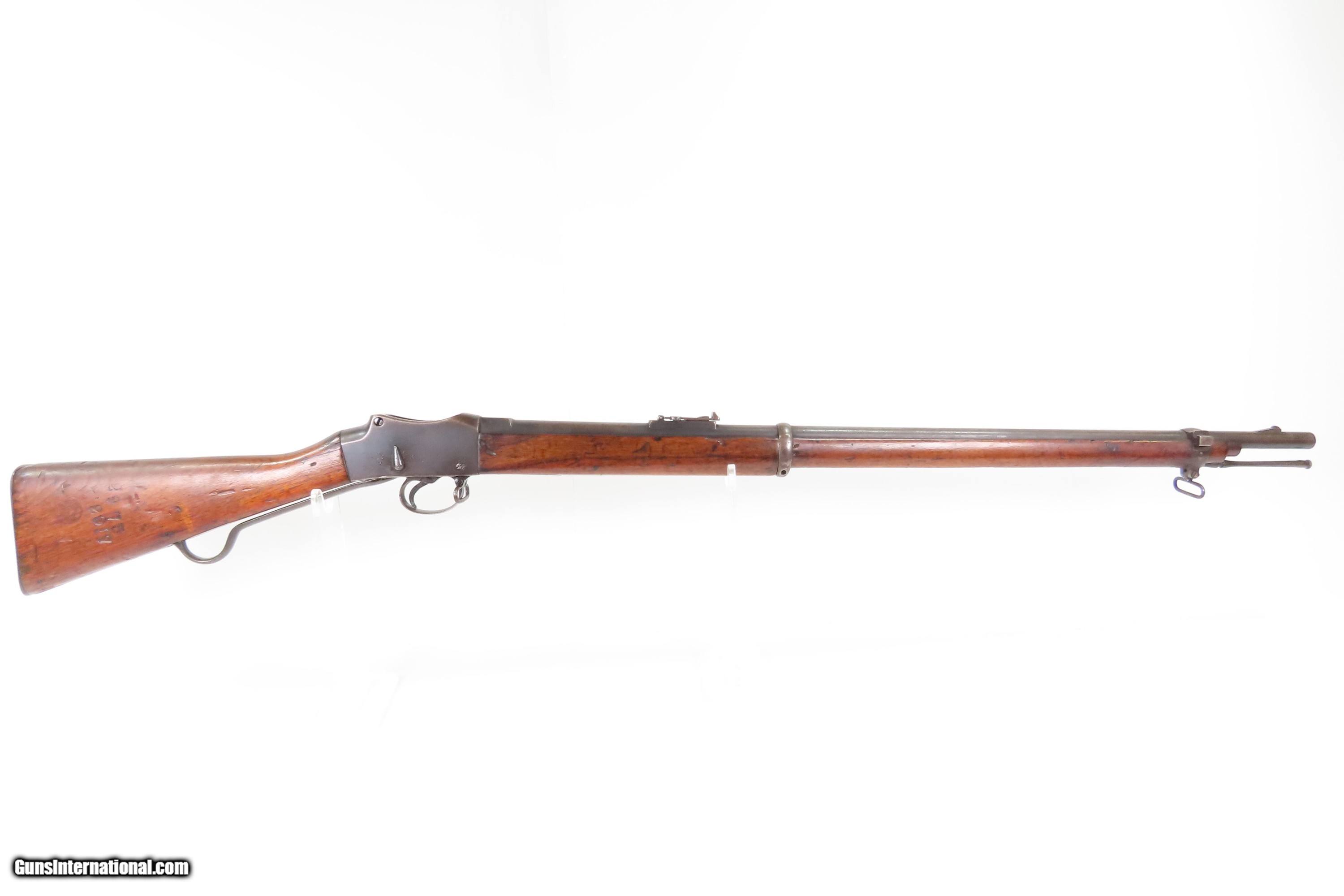 Description: 1886 Antique BRITISH ENFIELD Martini-Henry MKIV.577/450 Falling Block Rifle Hammerless Design with SELF COCKING MECHANISM Here Ancestry Guns presents an antique Enfield Martini-Henry Mk IV Single Shot Falling Block Military Rifle made circa 1886 with a production run between 1871 and 1889 with somewhere between 500,000 and 1,000,000 produced. The first iteration of the rifle came about in 1871 and was adopted by the British Army to replace the Enfield Snider Breech Loading Rifles that were being phased out. When the decision was made to make general issue of the Martini Henry MKII & MKIII to the Militia and Volunteers in January of 1885 and the impending new .303 caliber, along with the suspension and ultimate cancellation of the .402 bore in June of 1887, it was decided as a short term measure to convert the 65,000 .402 Enfield Martinis already made to a usable .577/450 firearm. These 65,000 rifles were designated the Martini Henry MKIV. The action is based on the patent by American and Boston native Henry O. Peabody, which was improved by Swiss inventor Friedrich von Martini. The new polygonal barrel rifling was the design of Scotsman Alexander Henry. This is where the rifle derives its name. Martini–Henry variants were used throughout the British Empire for 47 years. Like other British weapons, the Peabody-Martini-Henry saw action all over the world, and most famously in the Zulu Wars in Africa. The overall condition is good. This example is refinished. Strong action. The bore is shiny bright with strong rifling. Markings are legible. Solid wood with average handling wear. Own the original! This is a legitimate antique and not a reproduction. Barrel is 33 inches. Caliber: .577/450 Overall condition as seen in photos. Very Fast. Very Safe. FREE SHIPPING WORLDWIDE. Delivered directly to your door by express mail! Guaranteed AUTHENTIC & Includes CERTIFICATE OF AUTHENTICITY. $1650 #259719 Antique: Yes Price: $1,650.00 Buy Now Pay with