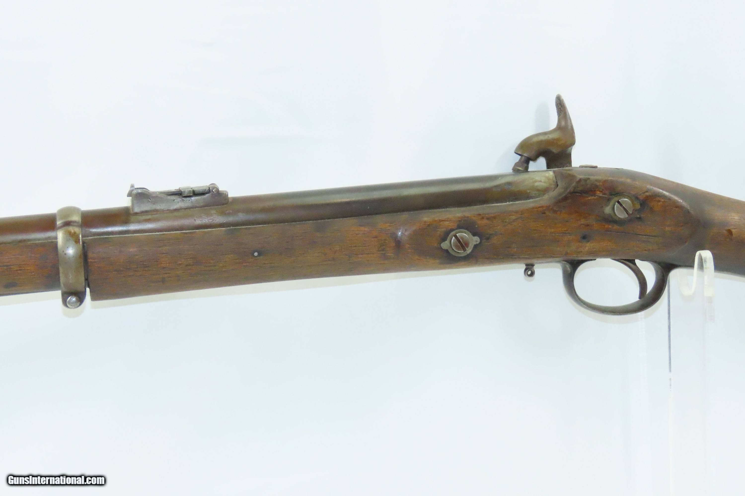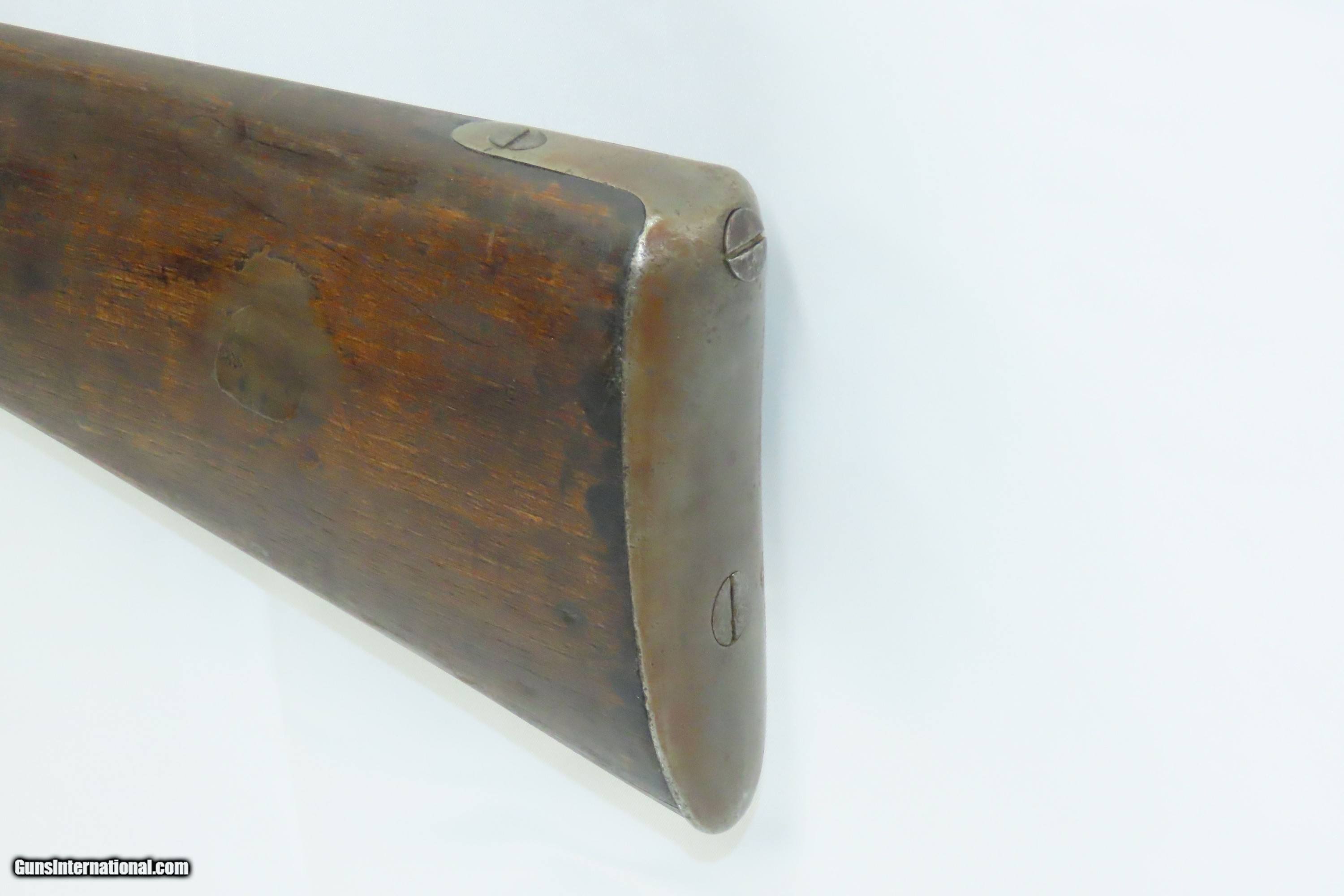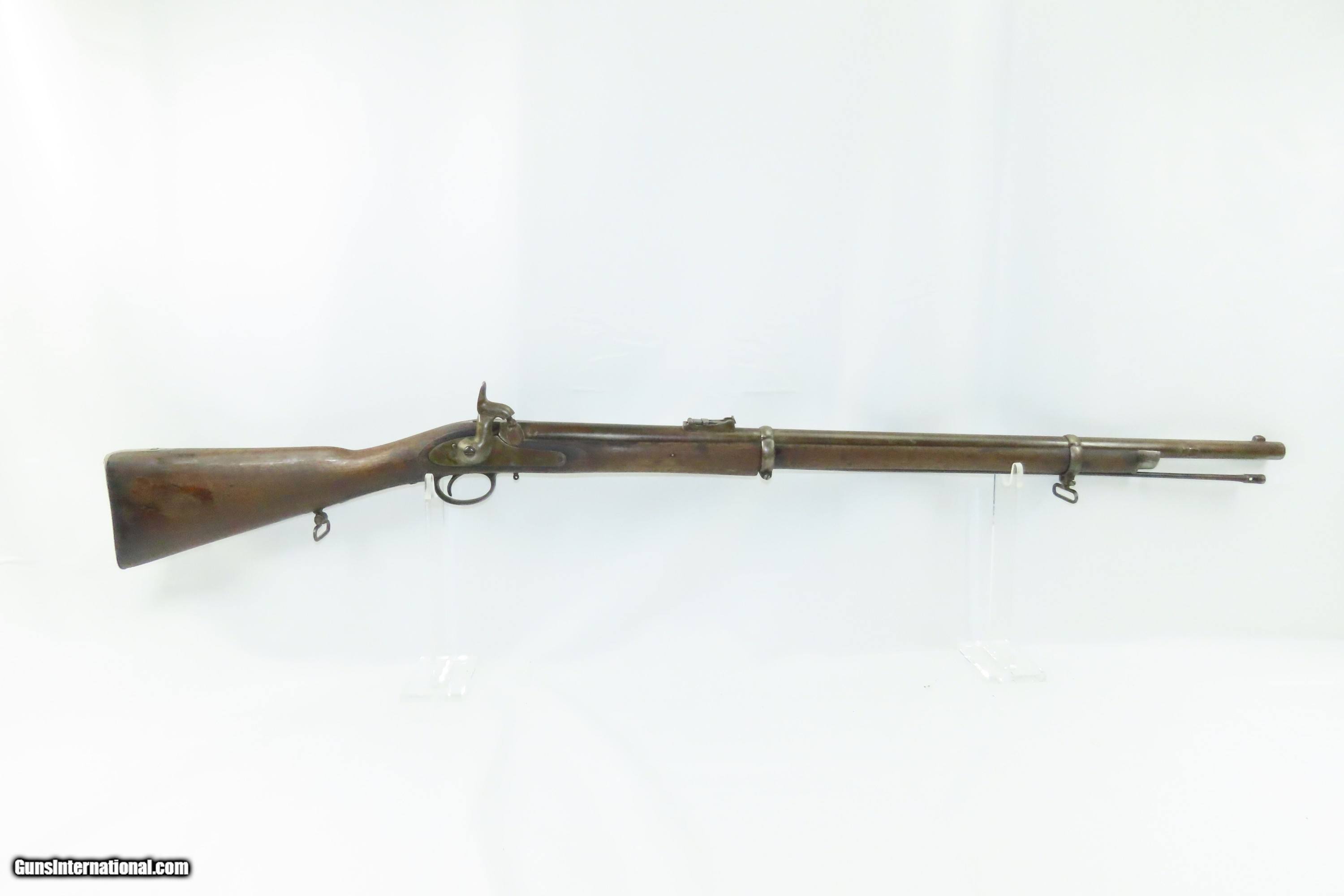Description: BRITISH Antique ENFIELD Pattern 1853 SHORT Rifle-Musket Crown/VR Made for Imperial Britain Here we present an antique British Enfield Pattern 1853 Percussion Short Rifle-Musket, made in 1856 in England. The P53 was the British Military Ordnance Board’s choice for adoption as the primary long arm in 1853. It was considered the apex European military gun of that time, introduced by the British War Department after several studies to improve the calibers and the dimensions of the previous models. However, it kept the same general appearance of the earlier pattern 1851. The overwhelming majority of P53 Enfield Rifles were made by commercial gun makers in Birmingham and London under contract. The Enfield 1853 rifle-musket was also used by both the North and the South in the American Civil War and was the second most widely used infantry weapon in the war, surpassed only by the Springfield Model 1861 Rifled Musket. The Confederates imported more Enfields during the course of the war than any other small arm, buying from private contractors and gun runners. It has been estimated that over 900,000 P53 Enfields were imported into America and saw service in every major engagement of the war. These were also used in the Crimean War from 1854 to 1856, the Sepoy Mutiny from 1857 to 1858, the New Zealand Land Wars that ended in 1872, and many various other conflicts, especially in colonies in British Imperial possession in the 1850s, 60s and 70s. The overall condition is good. Refinished in brown. The action is strong. The bore is dim and smooth. The stock has been repaired on the left stock flat. Each side of the butt stock has a round patch. The stock has been refinished and remains solid. Own the original! This is a legitimate antique and not a reproduction. Barrel is 33 inches. Caliber: .62 Percussion Overall condition as seen in photos. Very Fast. Very Safe. FREE SHIPPING WORLDWIDE. Delivered directly to your door by express mail! Guaranteed AUTHENTIC & Includes CERTIFICATE OF AUTHENTICITY. ancestryguns $1400 #244172 SOLD Antique: Yes |
