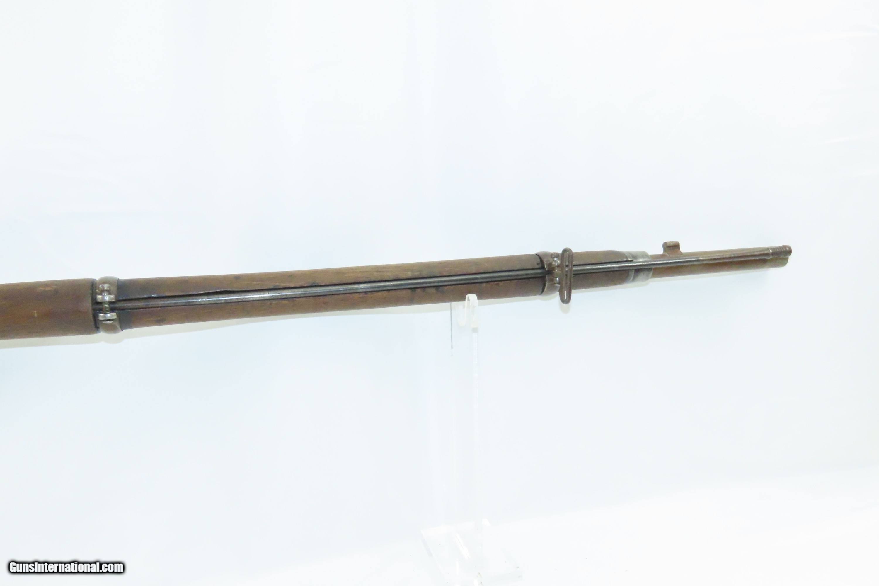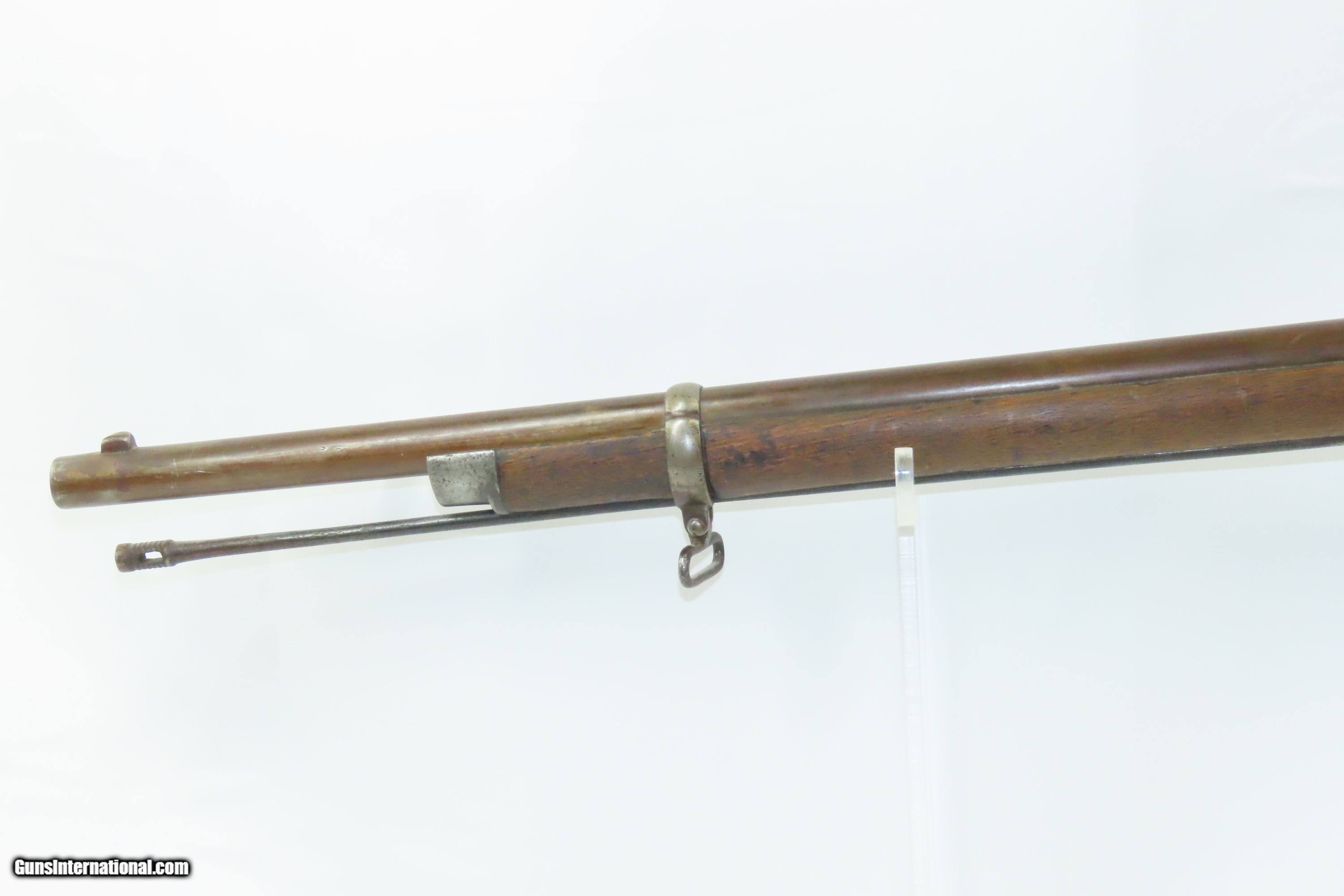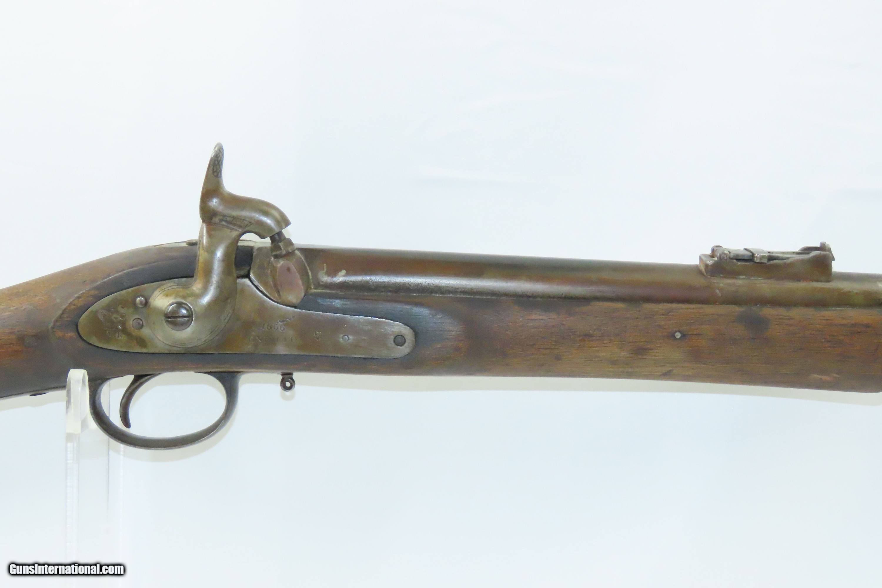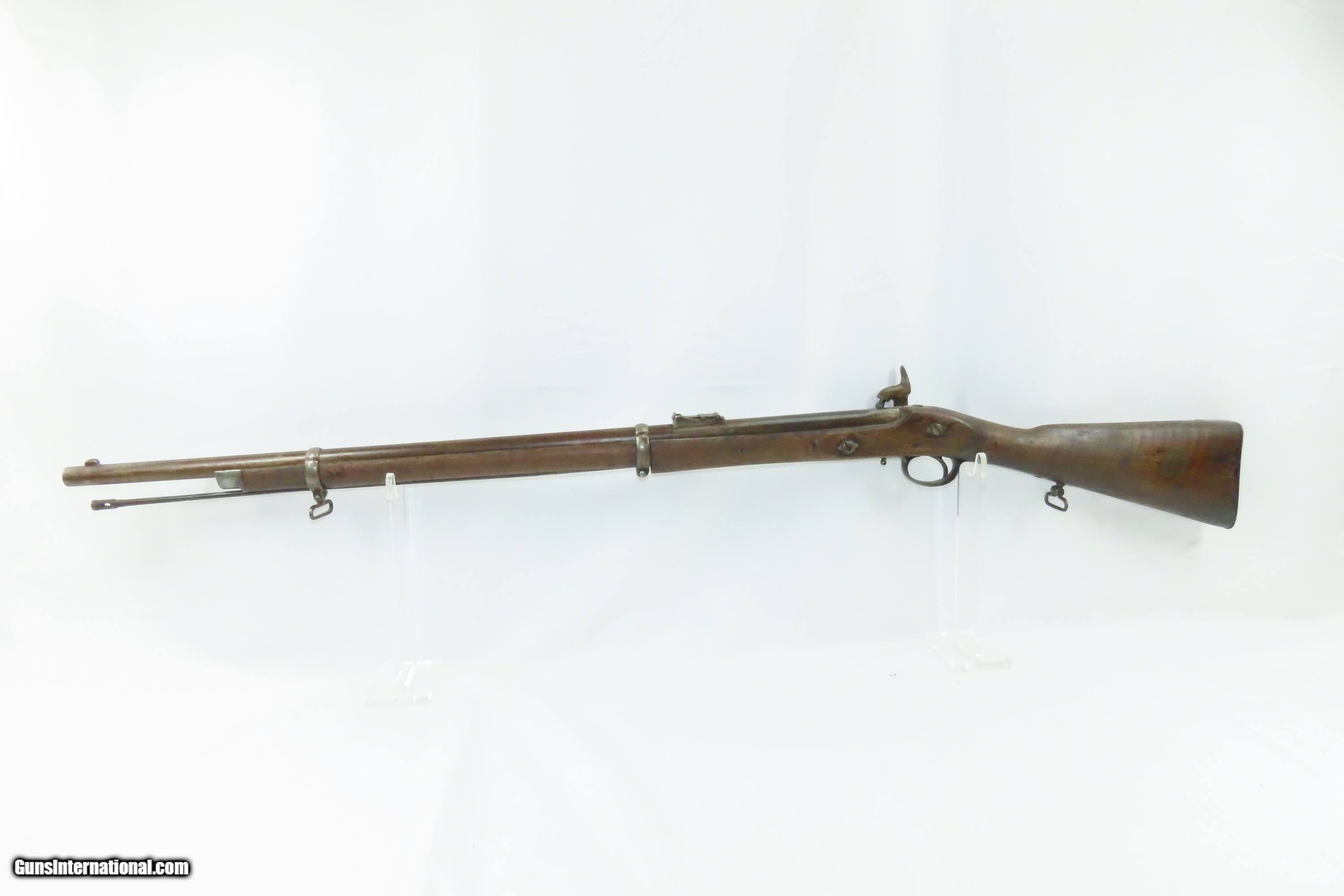 Description: BRITISH Antique ENFIELD Pattern 1853 SHORT Rifle-Musket Crown/VR Made for Imperial Britain Here we present an antique British Enfield Pattern 1853 Percussion Short Rifle-Musket, made in 1856 in England. The P53 was the British Military Ordnance Board’s choice for adoption as the primary long arm in 1853. It was considered the apex European military gun of that time, introduced by the British War Department after several studies to improve the calibers and the dimensions of the previous models. However, it kept the same general appearance of the earlier pattern 1851. The overwhelming majority of P53 Enfield Rifles were made by commercial gun makers in Birmingham and London under contract. The Enfield 1853 rifle-musket was also used by both the North and the South in the American Civil War and was the second most widely used infantry weapon in the war, surpassed only by the Springfield Model 1861 Rifled Musket. The Confederates imported more Enfields during the course of the war than any other small arm, buying from private contractors and gun runners. It has been estimated that over 900,000 P53 Enfields were imported into America and saw service in every major engagement of the war. These were also used in the Crimean War from 1854 to 1856, the Sepoy Mutiny from 1857 to 1858, the New Zealand Land Wars that ended in 1872, and many various other conflicts, especially in colonies in British Imperial possession in the 1850s, 60s and 70s. The overall condition is good. Refinished in brown. The action is strong. The bore is dim and smooth. The stock has been repaired on the left stock flat. Each side of the butt stock has a round patch. The stock has been refinished and remains solid. Own the original! This is a legitimate antique and not a reproduction. Barrel is 33 inches. Caliber: .62 Percussion Overall condition as seen in photos. Very Fast. Very Safe. FREE SHIPPING WORLDWIDE. Delivered directly to your door by express mail! Guaranteed AUTHENTIC & Includes CERTIFICATE OF AUTHENTICITY. ancestryguns $1400 #244172 SOLD Antique: Yes |