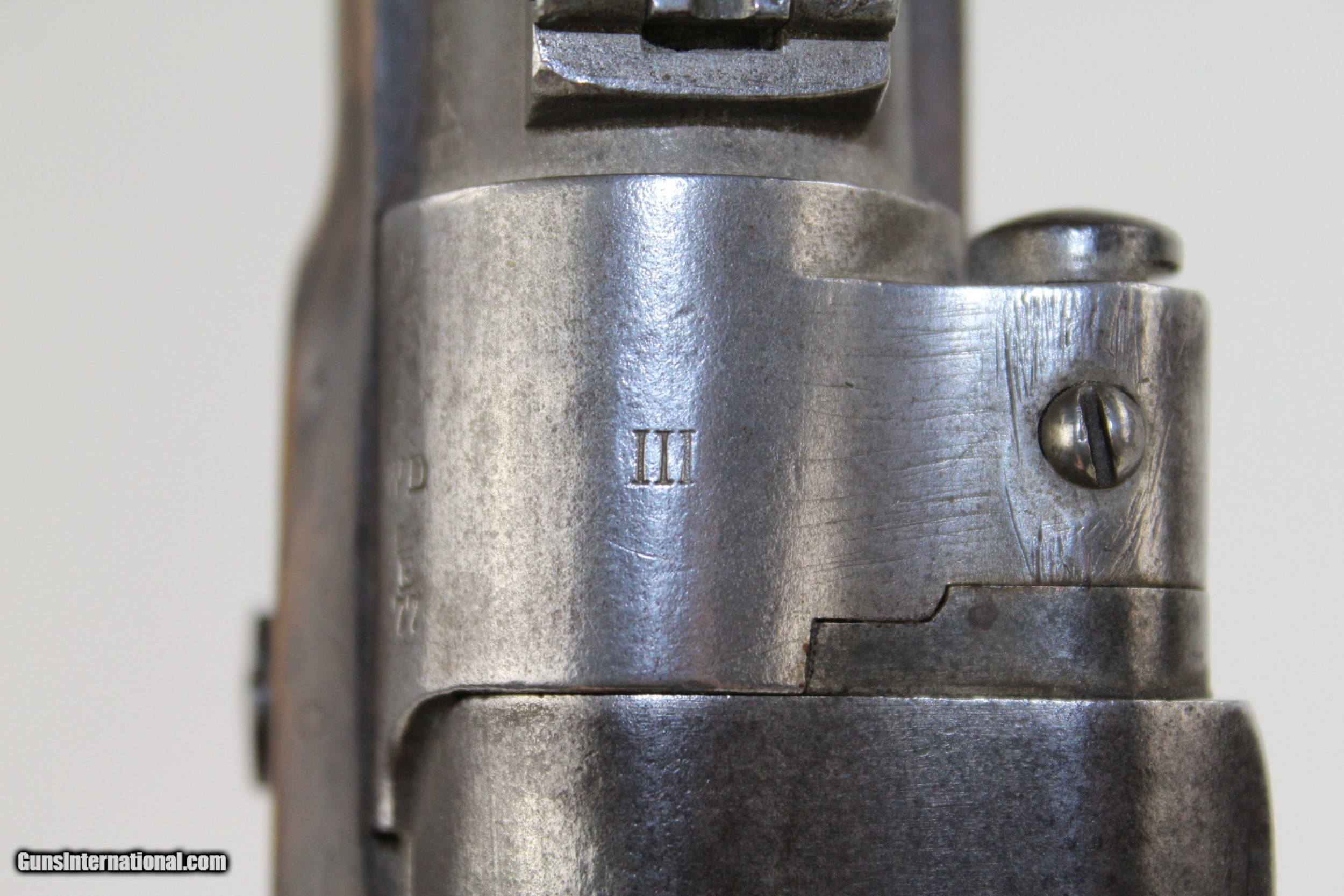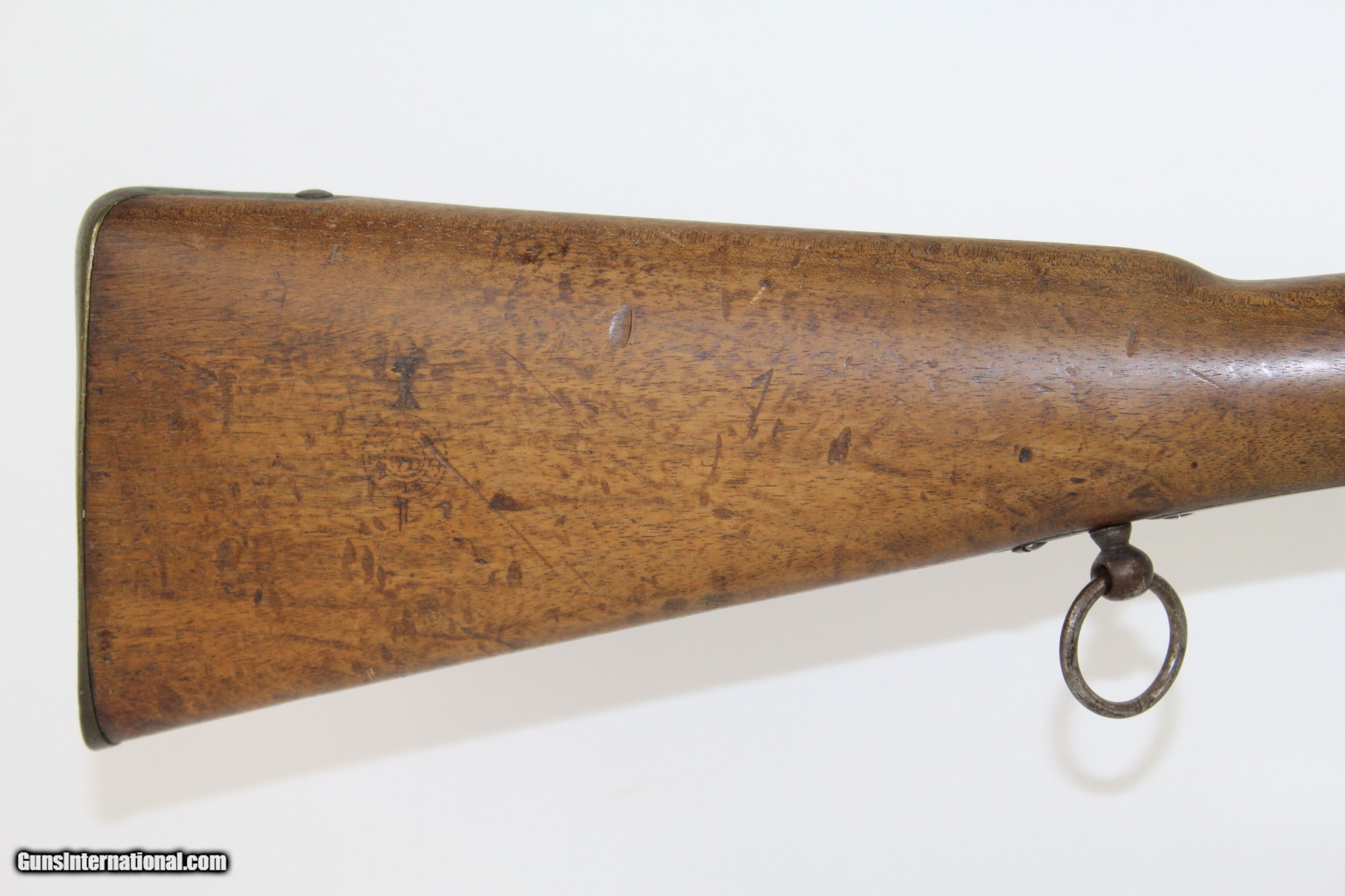 Description: BRITISH Antique ENFIELD-SNIDER Cavalry Carbine Unit Marked British Imperial MK III Dated “1892” Here we present an antique British Enfield Snider MK III Breech Loading Cavalry Carbine, made in 1870. This firearm saw the landscape everywhere the British had a presence in the 19th century. The list is quite significant: Ethiopia, Cape Colony, India, Australia, New Zealand and Canada. The Enfield Snider was not only used worldwide but had a very long service life. It was adopted as the primary service weapon of the British Army in 1866, then was relegated to volunteer and militia forces beginning in 1874, then was pretty much solely in use by the British Indian Army into the 1890s. The lock is marked with a British Royal Cipher for Queen Victoria and dated “1870”. The lock is marked “1870/ENFIELD”. The left side of the stock has been marked “F.A./1892”. The tang of the butt plate is marked “R 4/F/30”. The butt plate has a trap for the cleaning rod and it does indeed contain a two-piece cleaning rod. The left side of the barrel contains various British proof and acceptance markings. There remains a faint circular acceptance marking on the right side of the butt stock with “WD” and “ENFIELD” in it. The overall condition is very good. Much of the original blue remains with a gray patina. The markings are clear and legible. The stock is in great shape. The bore is clear and bright with good rifling. The action on this carbine is excellent. Own the original! This is a legitimate antique and not a reproduction. Barrel 19-1/4 is inches. Caliber: .577 Snider Overall condition as seen in photos. Very Fast. Very Safe. FREE SHIPPING WORLDWIDE. Delivered directly to your door by express mail! Guaranteed AUTHENTIC & Includes CERTIFICATE OF AUTHENTICITY. ancestryguns $1650 #7378 SOLD Antique: Yes |