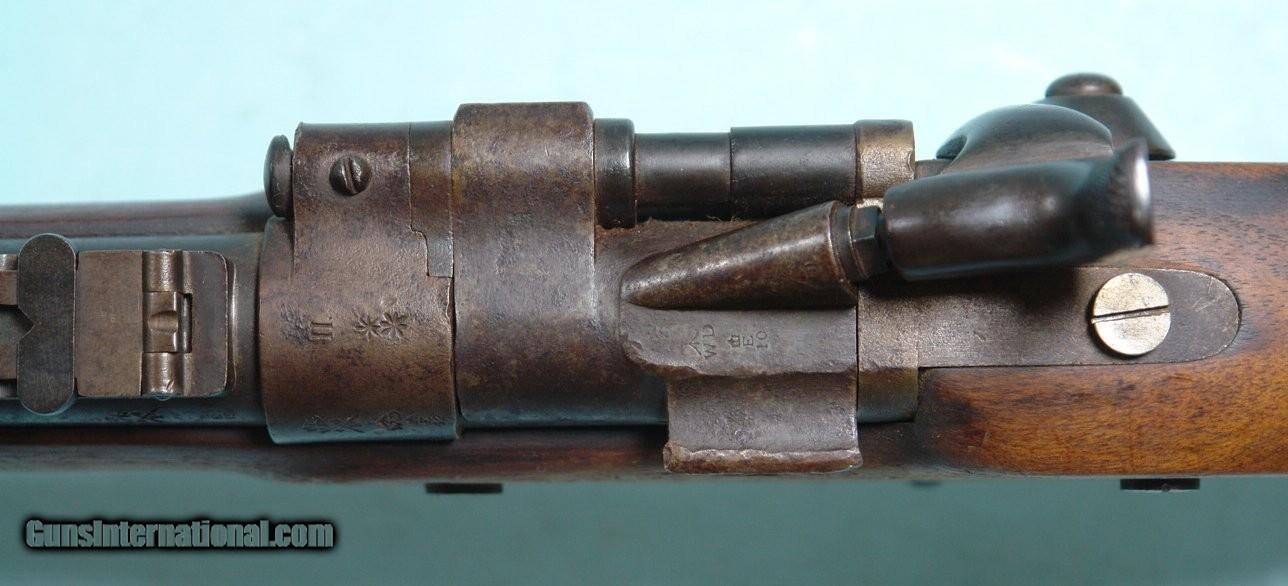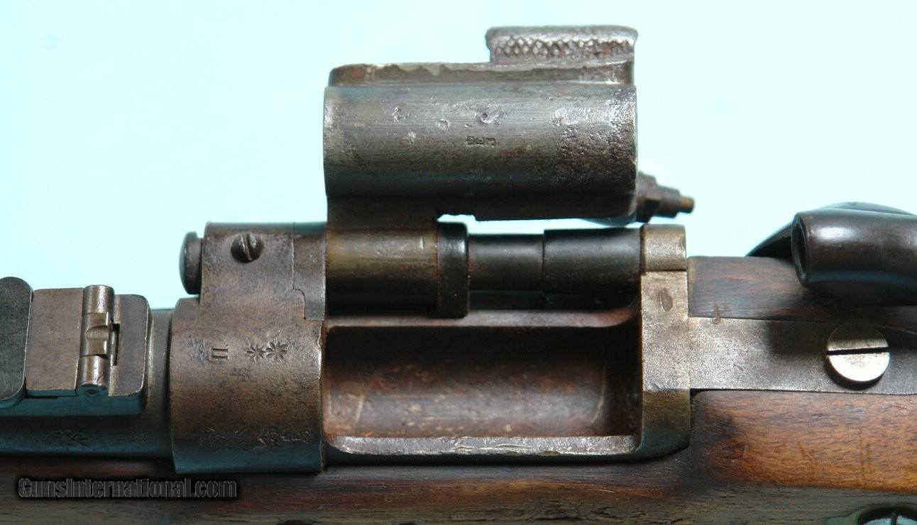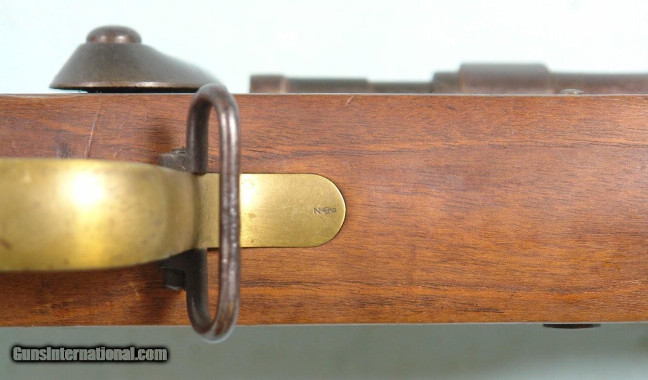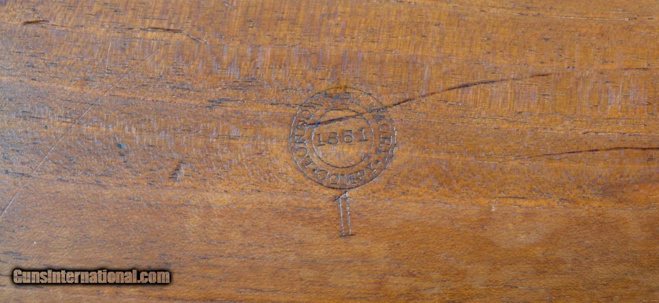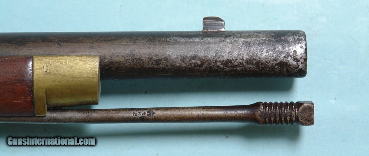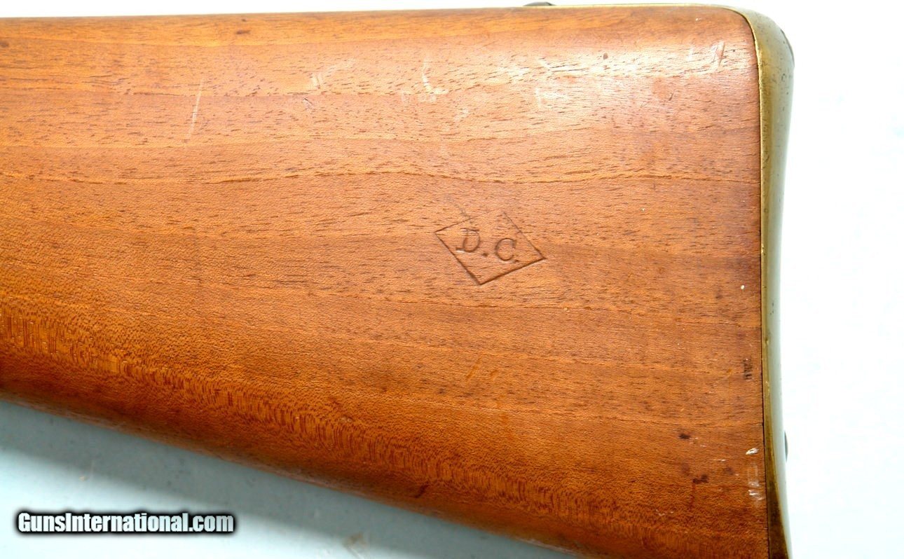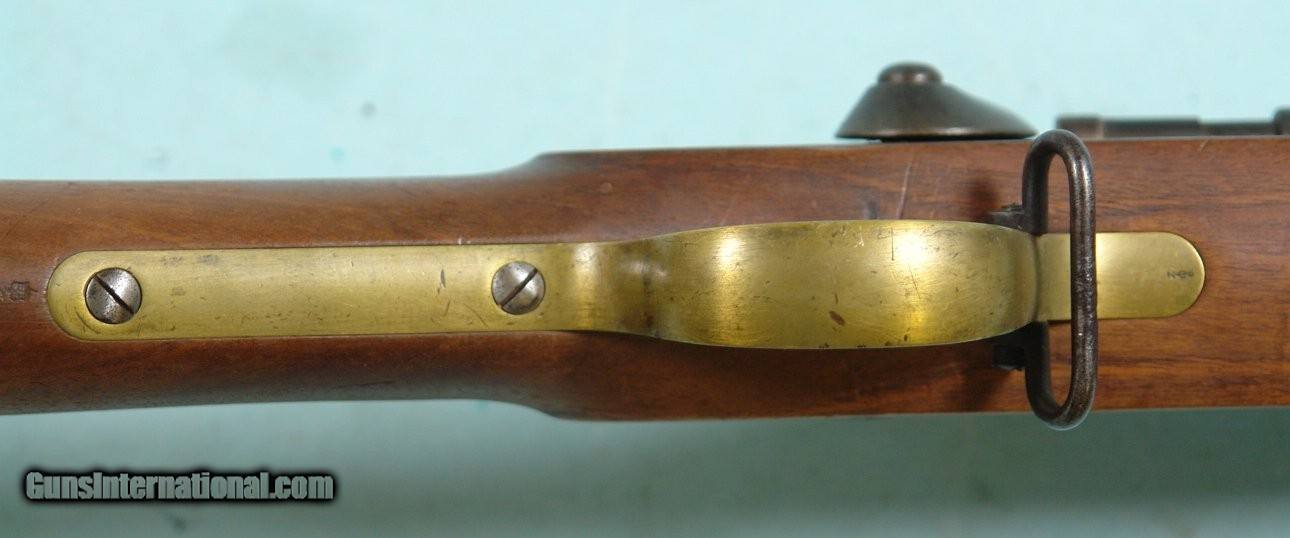 Description: 33092- BRITISH SNIDER-ENFIELD CONVERSION PATTERN 1853 RIFLE MUSKET CIRCA LATE 1860’S. 36” barrel chambered for the .577 Centerfire musket cartridge. All original and matching in excellent plus condition with nearly all the original blue on barrel and the case hardening on lock plate. Lock date stamped “1860”. Snider breech with Royal Ordnance proofs and receiver stamped “II/*”. Stock with mint cartouche and all the original finish. Perfect working order and excellent bore. $1200. Antique: Yes Rifle Caliber: .577 Snider Price: $1,200.00 Contact Seller |