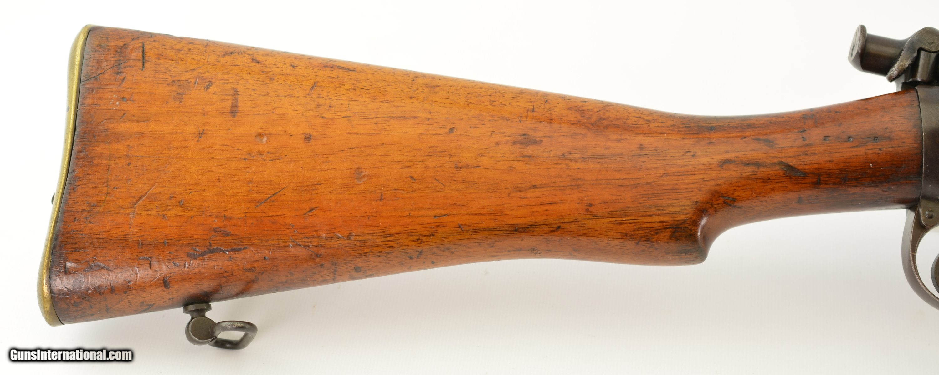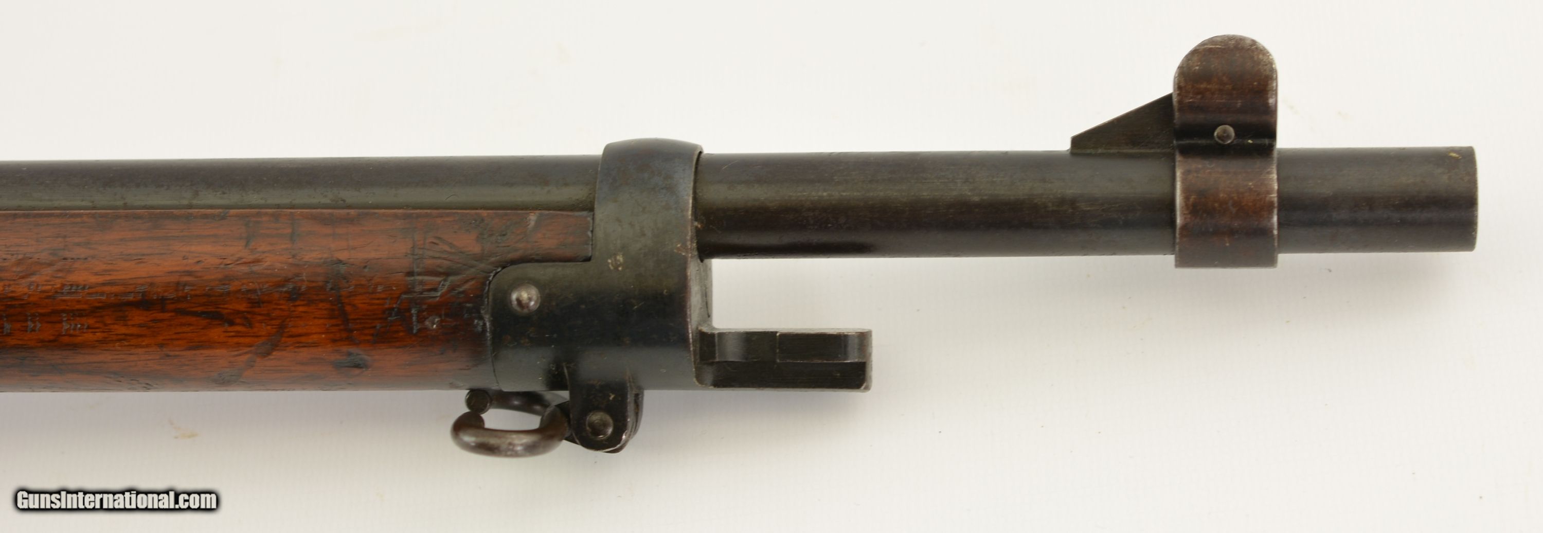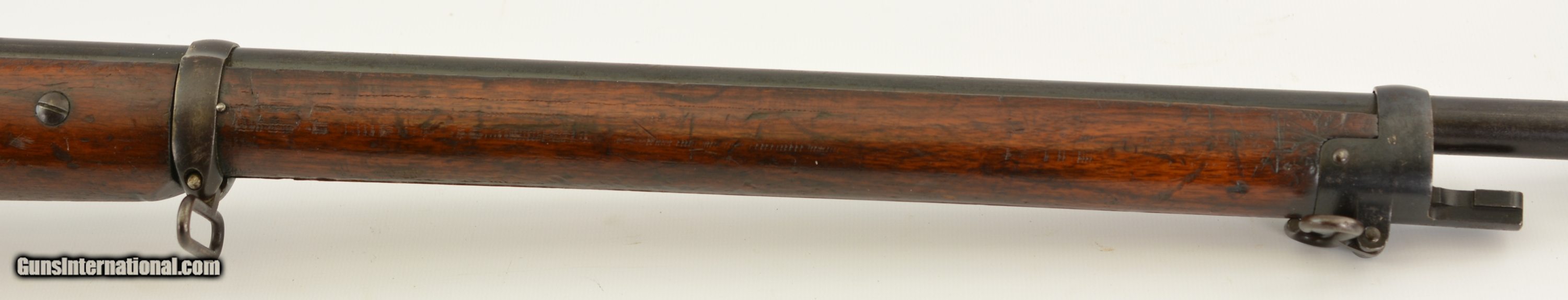 Description: Serial #10648 / 25227, .303 British, 30 1/4" barrel with a fine, bright bore that has some minor freckling within the grooves. This is a "BSA Co." marked rifle, with stacked rifles logo on the knox form. The metal retains 80-85% of the original blue finish that is blending into a smooth, dark plum-brown patina with some silvering along the edges, projections, and bearing surfaces. Some patches of thin freckling are also visible along the top of the "SUPERIOR NICKEL STEEL" marked barrel. The matching bolt is equipped with a safety, and has a mostly bright gray body with some streaks of darker freckling. The forward volley sight is still present, the front sight is equipped with protective wings, a windage adjustable 1800 yd back sight is fitted to the barrel, and a rare, BSA Tippin’s patent folding aperture sight is mounted on the receiver. The walnut stock and forend have numerous small handling marks and blemishes scattered about the added military oil finish, and a previous owner’s initials are engraved on the buttplate tang: "T.D.D." A correct magazine is fitted, and extensive commercial Birmingham proofs are present. This is a very nice Long Lee, in fine plus condition, that would make a great addition to any collection of British military match rifles. FFL or C&R SOLD Curio/Relic: Yes Manufacturer: Enfield Model: MK.1 Serial Number: 10648 / 25227 Caliber Info: .303 Gauge Info: .303 |