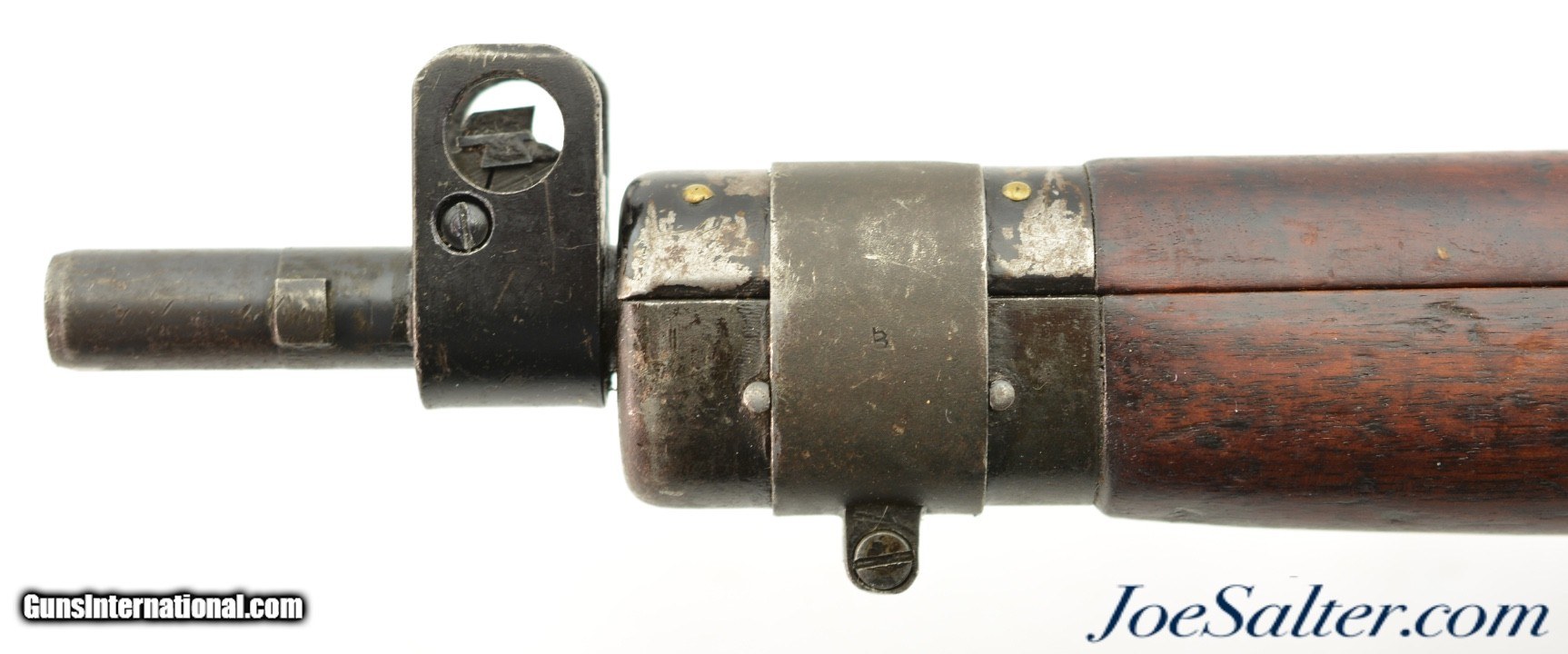 Description: Serial #2L790, .303 British, 25" barrel with an excellent, bright bore. This was originally an early WW2 production rifle that was FTR repaired in 1956 and rebuilt using one of the 1950-made replacement Long Branch receivers, and arsenal renumbered to match the original receiver in 1956. The metal of the receiver retains 95-97% of the arsenal-applied blue finish, while the remaining metal has slightly less blue remaining, with silvering at the muzzle, along the high edges, and along the bearing surfaces of the matching numbered bolt. A small import mark The stock set and handguards are in very good shape, with numerous small handling marks and blemishes scattered about the added military oil finish and flaked Suncorite remaining on the nosecap. The rifle is equipped with a Canadian C Mk.3 sheet metal rear sight, a matching numbered magazine, and "C (Broad Arrow)" marked Canadian canvas sling. Long Branch production of the No. 4 rifle ceased in 1945, but was resumed in 1949 as there were too few remaining in Canadian stores to equip their troops. Series rifle production was finally completed for good in 1950, along with numerous replacement receivers intended to be used to rebuild earlier rifles whose receivers were deemed too worn or damaged to be retained. These receivers were all built in 1950, but were marked with the year of the rebuild ("1956" in the case of this rifle) and stamped with the original serial number of the rifle they were installed on. This example is in very good-near fine condition overall. FFL or C&R; Curio/Relic: Yes Price: $895.00 Contact Seller |