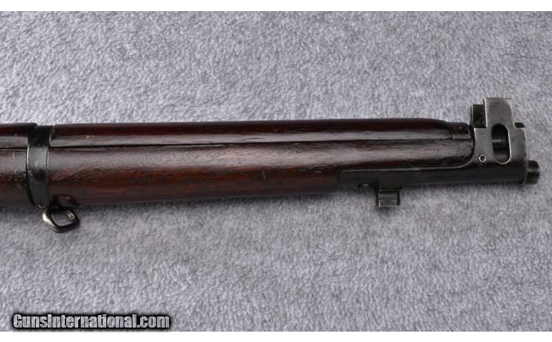 Description: This Enfield has the Canadian crossed flags among its proof marks. Wood shows dings, dents and scratches but remains solid. Finish has darkened with age and shows a drip mark or two of finish. Top of comb on stock has had a 2" square that has been replaced with contrasting wood. All metal has a heavy coat of what appears to be paint covering surface, except for butt plate, magazine and bolt knob which has been worn smooth. Bore remains bright and excellent! .303 British SOLD Curio/Relic: Yes Metal Condition: Good Wood Condition: Good Bore Condition: Excellent Barrels: 26 Triggers: Original Stock Dimensions: 13 1/4" LOP Fore End: Uncheckered Hardwood Pistol Grip - Uncheckered Hardwood Forend Butt Pad: Aluminum Butt Plate Weight: 9.5 lbs. Sights: Post Front - Adjustable Military Ladder Style Rear Item Location: Wheeling |