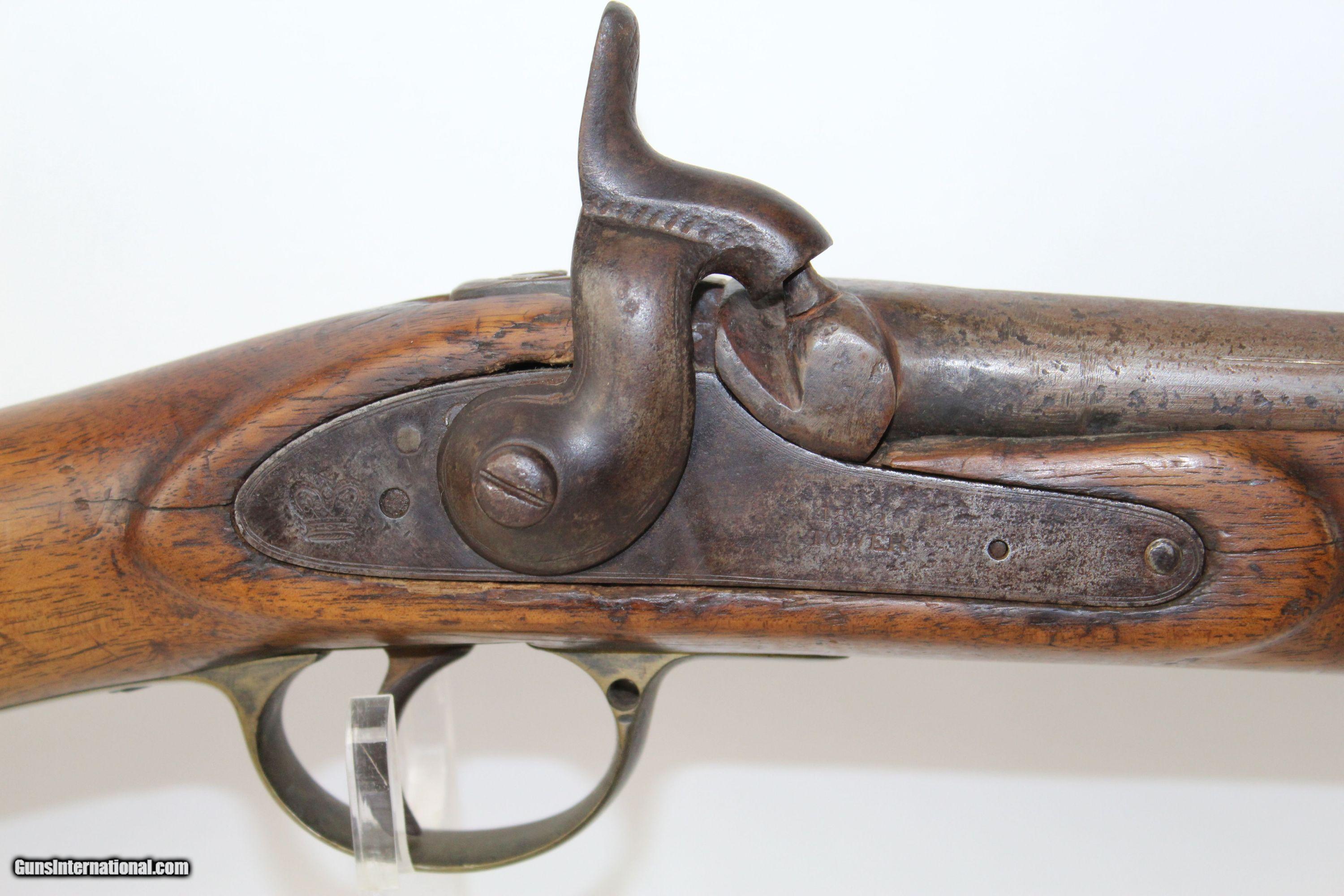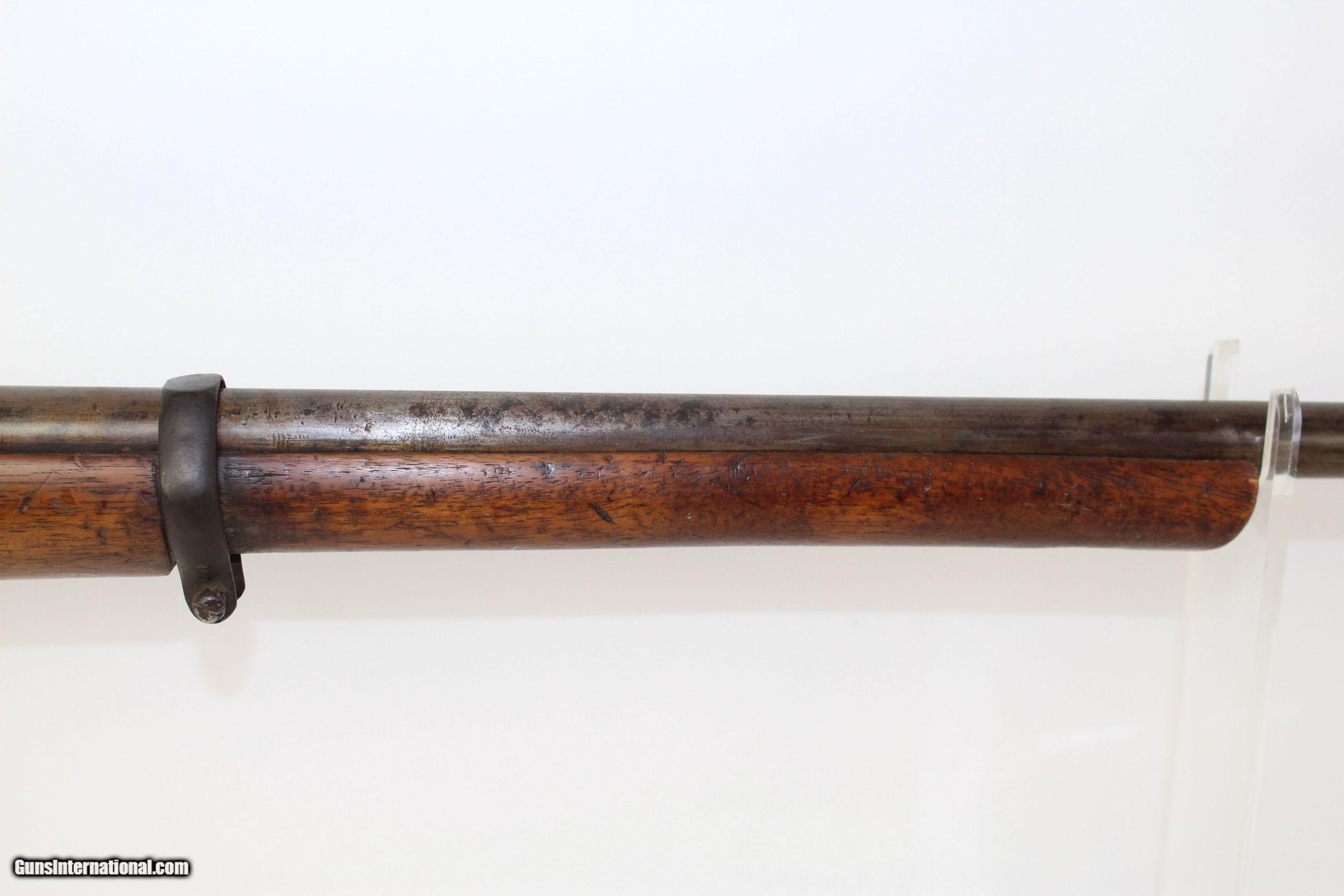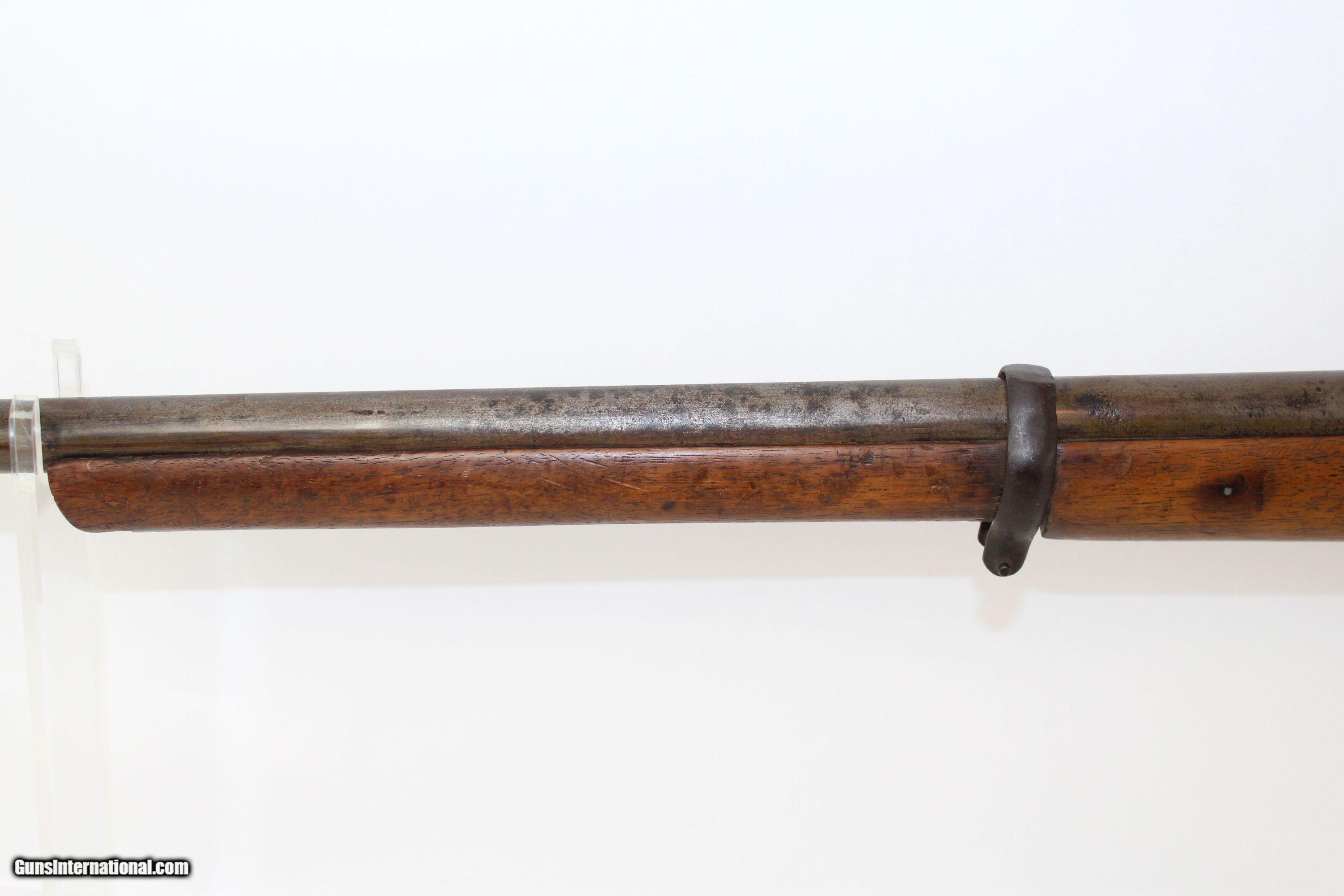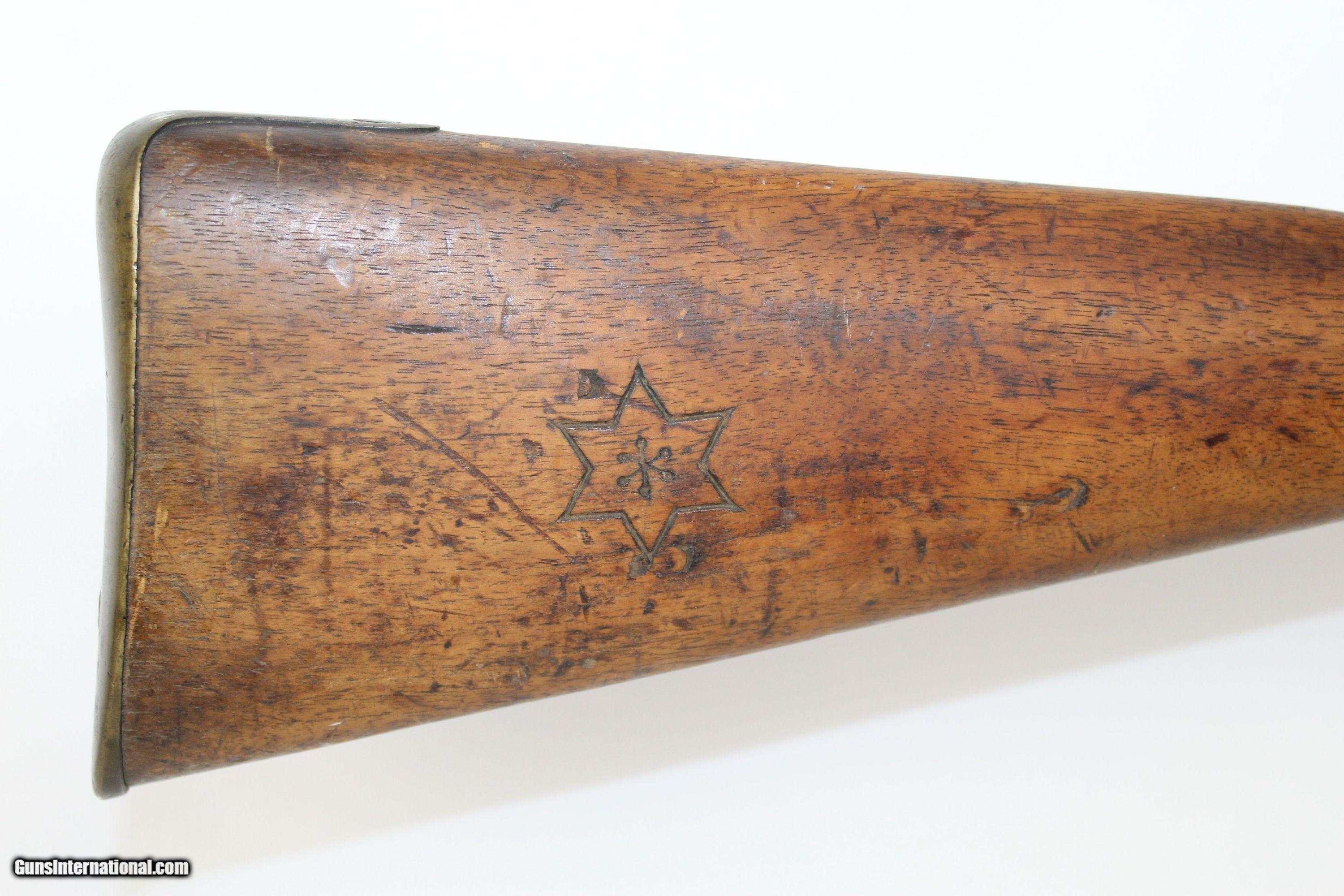 Description: CIVIL WAR Antique “Trench Art” ENFIELD 1853 Musket By George Vorhees of the 124th Illinois Volunteer Infantry Here we present a Civil War Antique Enfield Pattern 1853 Musket, identified to George Vorhees of Batavia, Illinois, who served in B Company of the 124th Illinois Volunteer Infantry Regiment, nicknamed “The Excelsiors”. Per the Report of the Adjutant General of the State of Illinois Volume VI (confirmed in the book below), George Vorhees enlisted on August 6, 1862, then same day that the regiment was formed. He survived the war, mustering out on August 15, 1865. During that period, the 124th Regiment participated in the Siege of Vicksburg, which lasted from May 18 to July 4, 1863. The siege wore heavily on both the Union and Confederate soldiers, the combatants and non-combatants alike. Those besieged were tough as nails as we will soon read about. But after several months of dwindling food supplies, constant shelling and untold emotional toll, Vickburg was surrendered. Upon entering the city, one soldier of the 124th gave this account of the carnage and the perception of the siege from the point of view of the besieged, recorded in History of the 124th Regiment, Illinois Infantry Volunteers Otherwise Known as the “Hundred and Two Dozen” From August, 1862, to August, 1865 (by R.L. Howard and published 1880): But notwithstanding all we found to prove their fearful suffering and loss during the siege, everybody in Vicksburg—unless talking upon some other subject, and telling the truth by accident—stoutly maintained that we had done them very little damage. The long and terrible struggle which had terminated in the unconditional surrender of more than 30,000 famishing troops, and such a vast quantity of munitions of war, which, ere it reached that result, had wiped out whole batteries and companies, till not a man remained, which had rained iron hail and leaden death upon their devoted heads from a thousand cannon and more than 50,000 rifles, night and day, for weeks, till every place of business was closed, and all dwellings abandoned, the inhabitants having gone into the earth like prairie dogs for safety, and which had killed non-combatants by scores and hundreds in their places of shelter, and as they sought to go a few steps by night in the streets, all that had been a mere bagatelle—a simple farce. We had been greatly mistaken if we thought we had punished them much; very greatly mistaken. But we must have suffered terribly, they said. Such ability to hide the plainest facts from their eyes, and fortify themselves in transparent falsehoods which had nearly ruined them, we could scarcely believe a sane people capable of. But there it was, before us every day, and some of its changes continually ringing in our ears. This Enfield 1853 bears carvings into the left side of the stock: “G. Voorhees”, “124 Ill.”, “Co. B.”, and “VICKSBURG.” There is also a hand-carved hexagram with a six-armed star in the center on the right side of the butt stock. There are several more very small markings on the underside of the wrist, just behind the trigger guard. One appears to be a maker’s mark, while the other two are hexagrams (think Star of David) with the letter “D” within each. Commercial British proof marks are located on the left side of the barrel. Was this George Vorhees’s issued musket or was this a battlefield pick-up on which he whiled away the periods of down-time of the siege recording these few bits of information that would cause us to read about him 155 years later? The overall condition is that of a relic. The metal surfaces have a brown patina to them. The markings are clear. The stock is very smooth with old handling marks. The bore is thick with dust. The action is currently out of commission due to a broken sear spring, which could be replaced. More than a musket, this is a historical piece of trench art from the Siege of Vicksburg. Own the original! This is a legitimate antique and not a reproduction. Barrel is 38 inches. Caliber: .60 Overall condition as seen in photos. Very Fast. Very Safe. FREE SHIPPING WORLDWIDE. Delivered directly to your door by express mail! Guaranteed AUTHENTIC & Includes CERTIFICATE OF AUTHENTICITY. ancestryguns $2000 #5262 SOLD Antique: Yes |