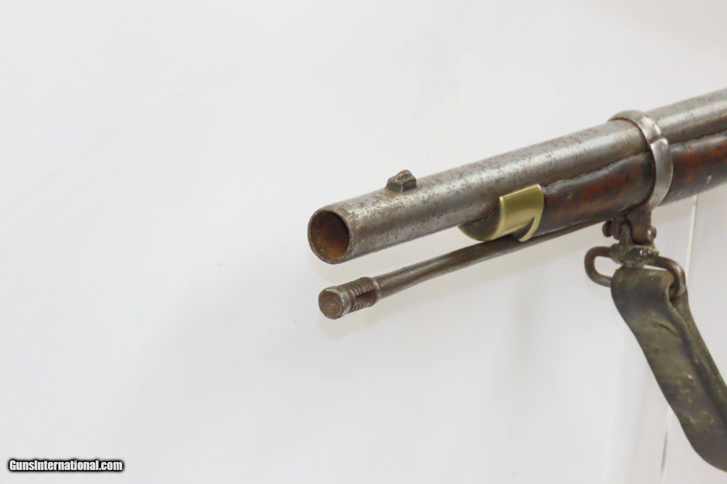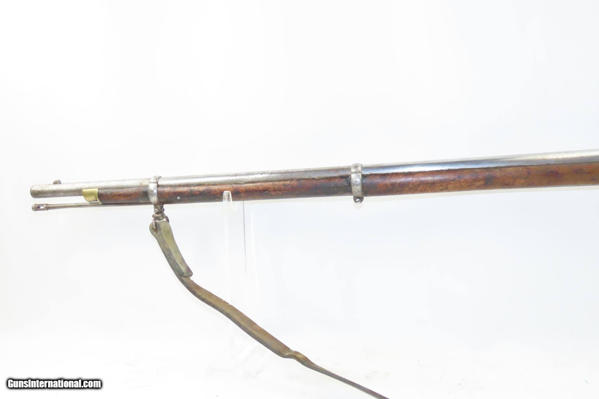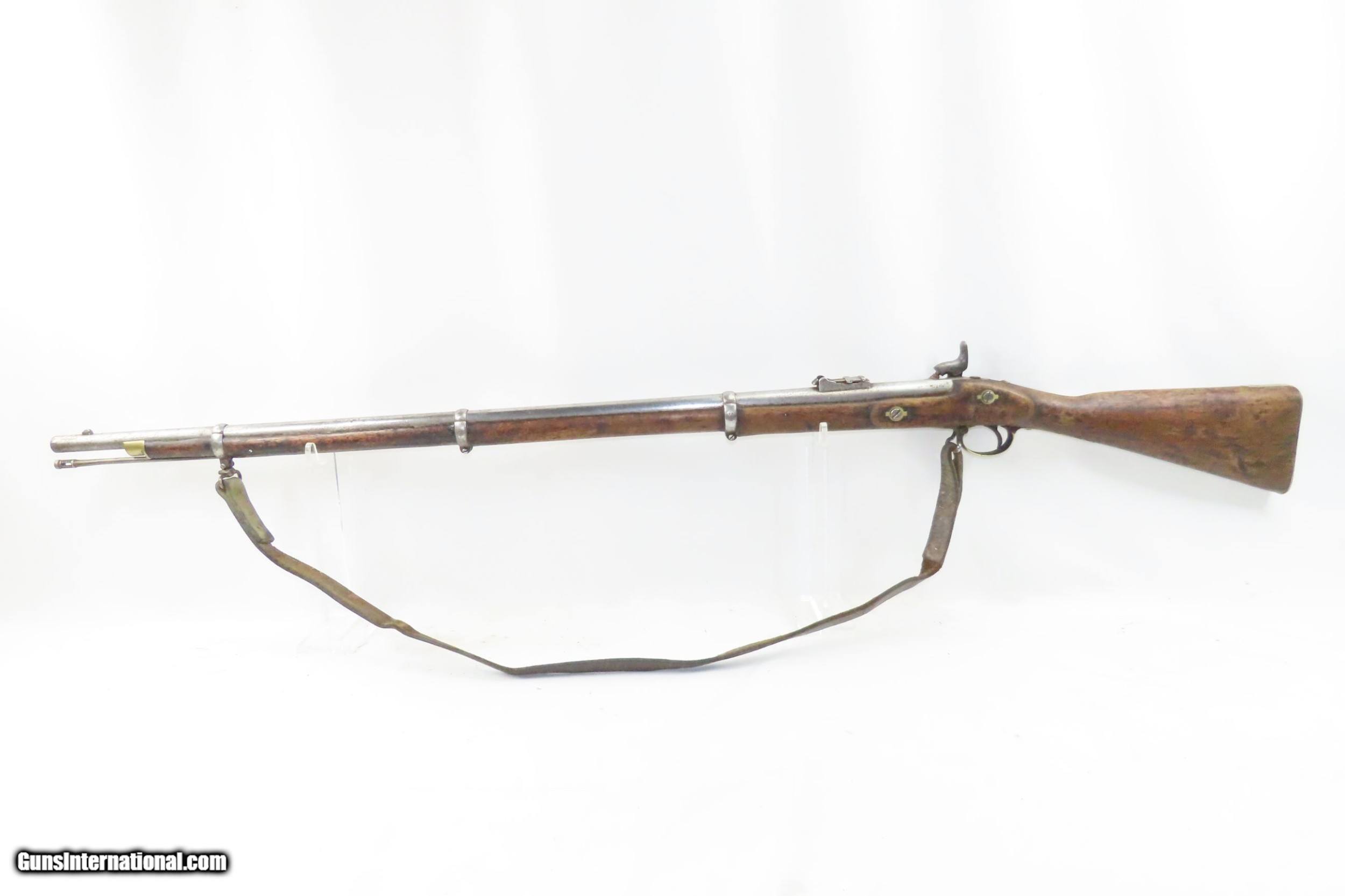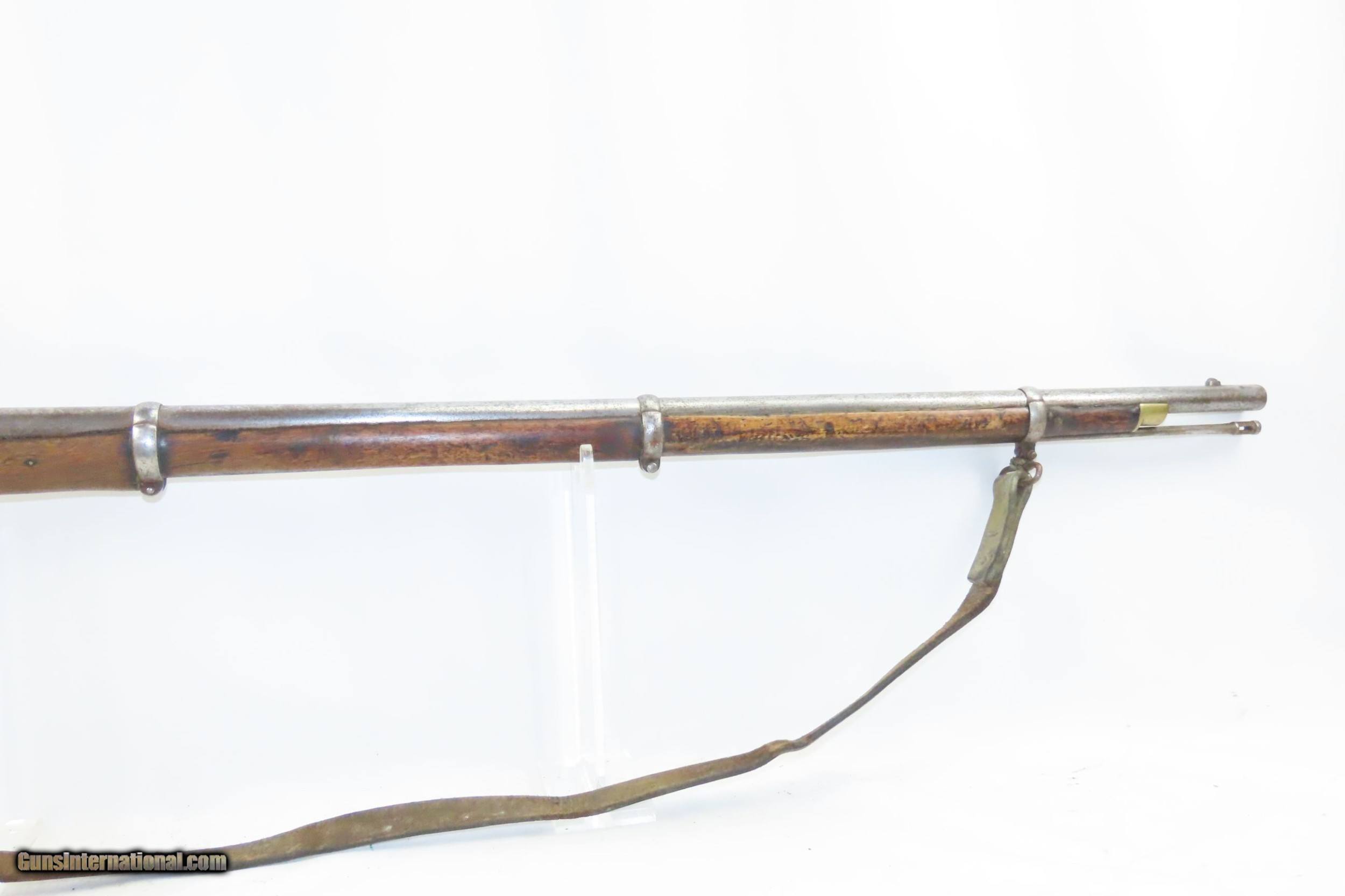 Description: CIVIL WAR Era Antique TOWER Marked ENFIELD Pattern 1853 Perc. Rifle-Musket Civil War Era Dated “1858” w/SLING and Bring Back Letter Here we present an antique British Tower Marked Civil War Era Pattern 1853 Enfield Percussion Rifle-Musket, made in Birmingham, England in 1858. The P-1853 was Britain’s adopted rifle from 1853 until the Snider system was adopted to transform arms into breech-loaders. In addition to its use around the world with the British military, this was one of the most popular arms for the infantry during the American Civil War. Of all the British arms, the Pattern 1853 is perhaps the best known and regarded weapon that replaced all earlier infantry models in the British Army. The Enfield 1853 rifle-musket was used by both the North and the South in the American Civil War and was the second most widely used infantry weapon in the war, surpassed only by the Springfield Model 1861 Rifled Musket. The Confederates imported more Enfields during the course of the war than any other small arm, buying from private contractors and gun runners. It has been estimated that over 900,000 P53 Enfields were imported into America and saw service in every major engagement of the war. The overall condition is good. Strong action. The bore is in good shape for its age. This example sports a solid stock with an expected amount of wear. Good leather sling. Clear markings. “1858/TOWER” marked lock. Own the original! This is a legitimate antique and not a reproduction. Barrel is 39 inches. Caliber: .62 Percussion Overall condition as seen in photos. Very Fast. Very Safe. FREE SHIPPING WORLDWIDE. Delivered directly to your door by express mail! Guaranteed AUTHENTIC & Includes CERTIFICATE OF AUTHENTICITY. ancestryguns $1400 #226969 SOLD Antique: Yes |