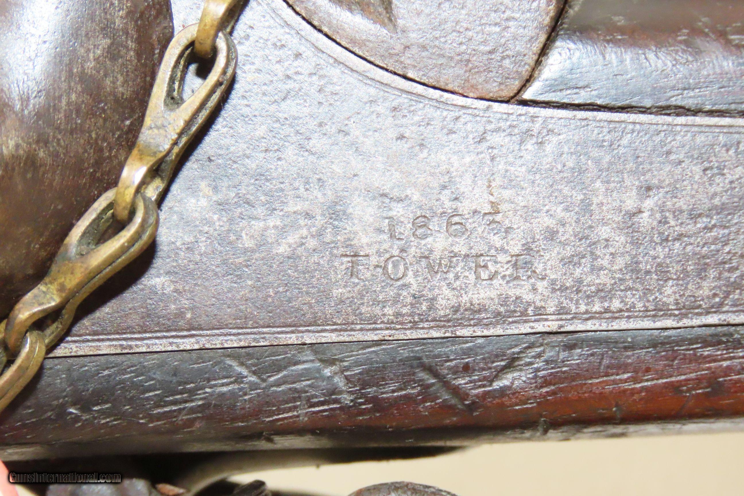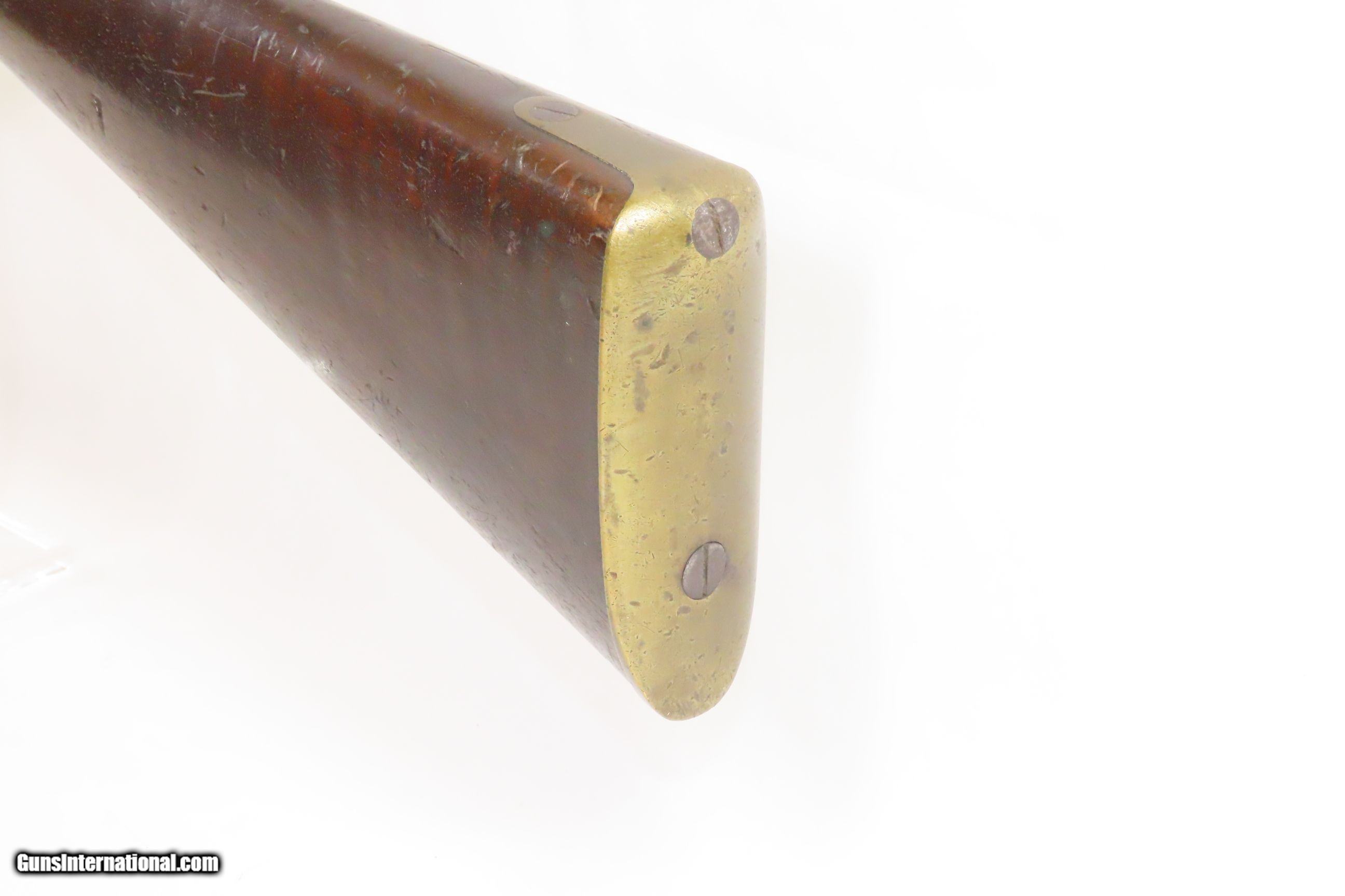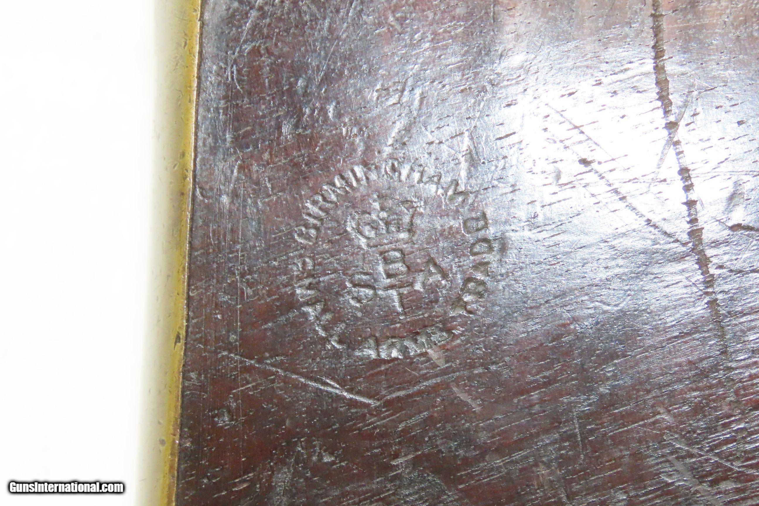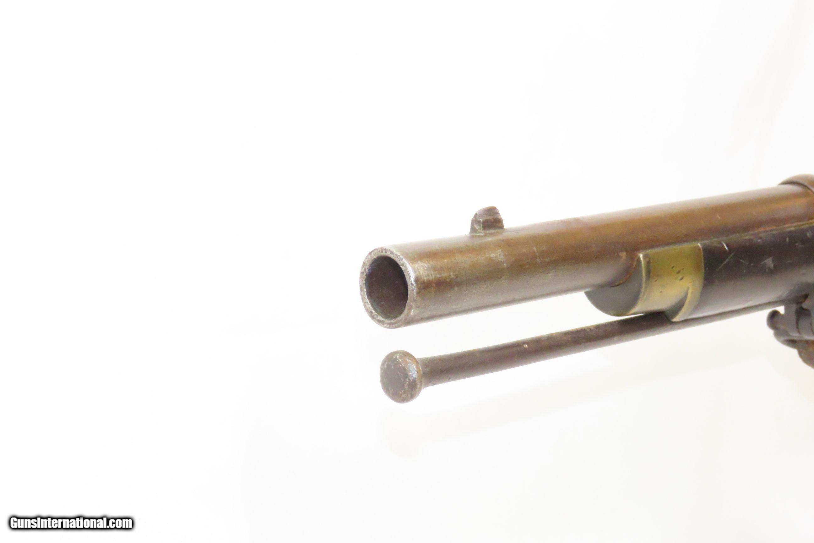 Description: Commercial Pattern 1853 ENFIELD Infantry Rifle-Musket Antique Tower .577 CW BIRMINGHAM SMALL ARMS TRADE w/BAYONET & SLING Here we present an antique Enfield Pattern 1853 Three Band Rifle-Musket, made in 1863 in England. The P53 was the British Military Ordnance Board’s choice for adoption as the primary long arm in 1853. It was considered the apex European military gun of that time, introduced by the British War Department after several studies to improve the calibers and the dimensions of the previous models. However, it kept the same general appearance of the earlier pattern 1851. The overwhelming majority of P53 Enfield Rifles were made by commercial gun makers in Birmingham and London under contract. The Enfield 1853 rifle-musket was also used by both the North and the South in the American Civil War and was the second most widely used infantry weapon in the war, surpassed only by the Springfield Model 1861 Rifled Musket. The Confederates imported more Enfields during the course of the war than any other small arm, buying from private contractors and gun runners. It has been estimated that over 900,000 P53 Enfields were imported into America and saw service in every major engagement of the war. These were also used in the Crimean War from 1854 to 1856, the Sepoy Mutiny from 1857 to 1858, the New Zealand Land Wars that ended in 1872, and many various other conflicts, especially in colonies in British Imperial possession in the 1850s, 60s and 70s. The overall condition is very good. Nice plum patina. The action is excellent. The bore is in good condition; patinated with strong rifling. The stock is dark and shows two stamps behind the trigger guard as well as a stocker name rearward of those. “A.W.” is stamped on the left stock flat. Stable split at the front of the left stock flat; otherwise solid. Comes with the bayonet, scabbard, and the sling. A nice piece! Own the original! This is a legitimate antique and not a reproduction. Barrel is 39 inches. Caliber: .577 Percussion Overall condition as seen in photos. Very Fast. Very Safe. FREE SHIPPING WORLDWIDE. Delivered directly to your door by express mail! Guaranteed AUTHENTIC & Includes CERTIFICATE OF AUTHENTICITY. ancestryguns $2800 #227854 SOLD Antique: Yes |