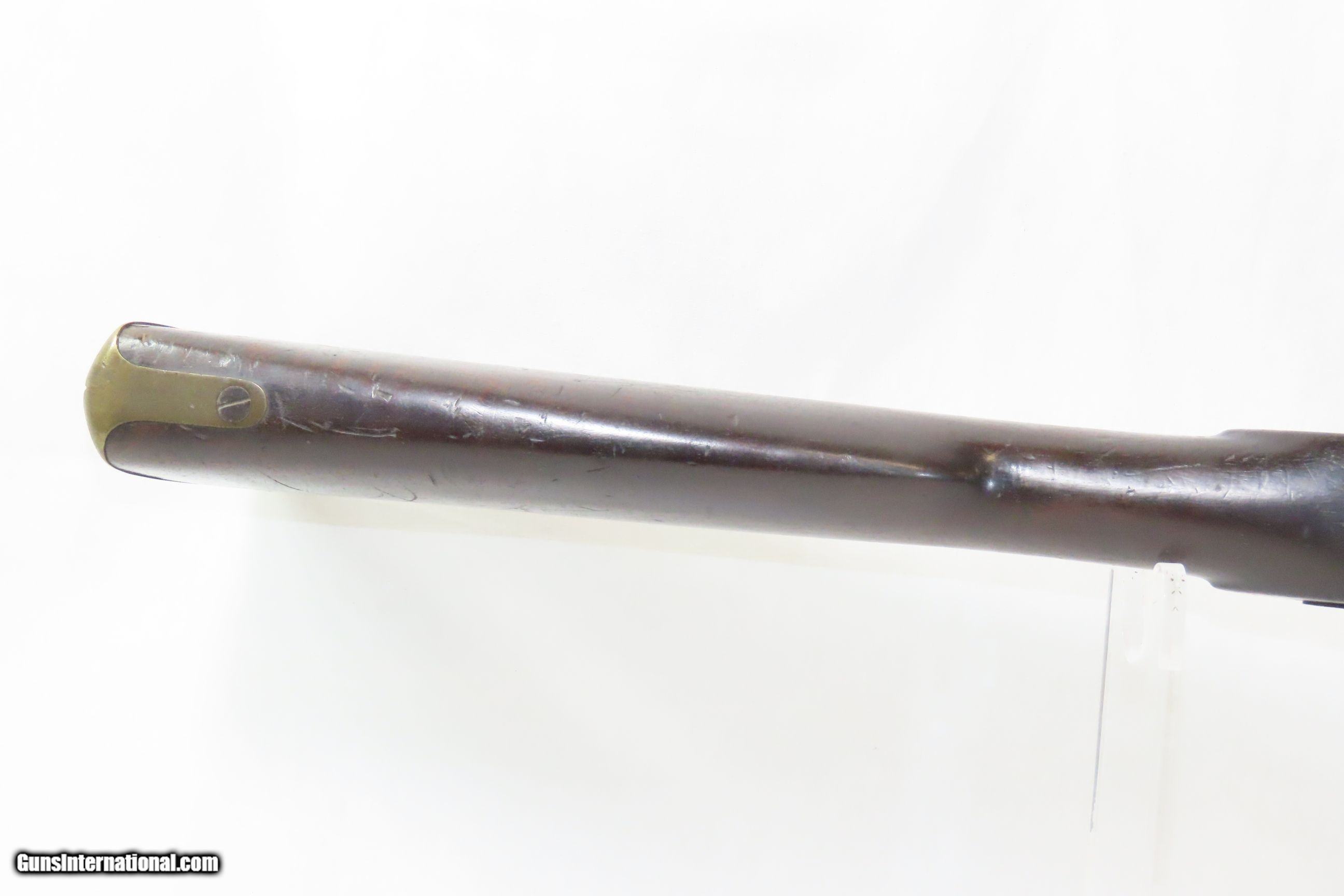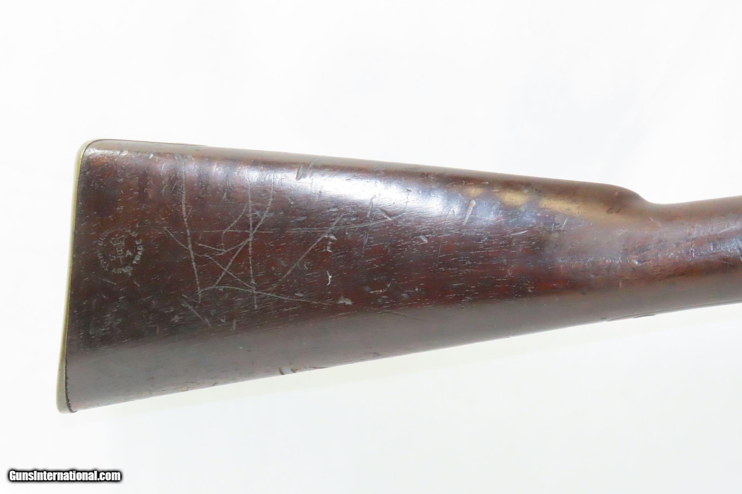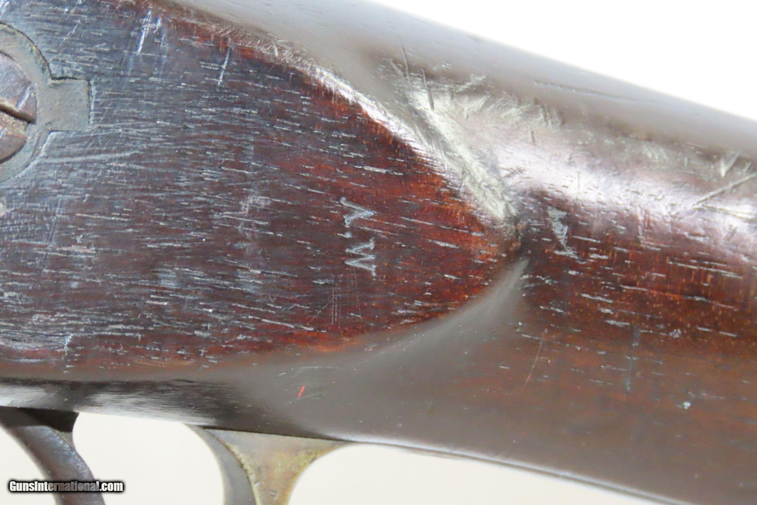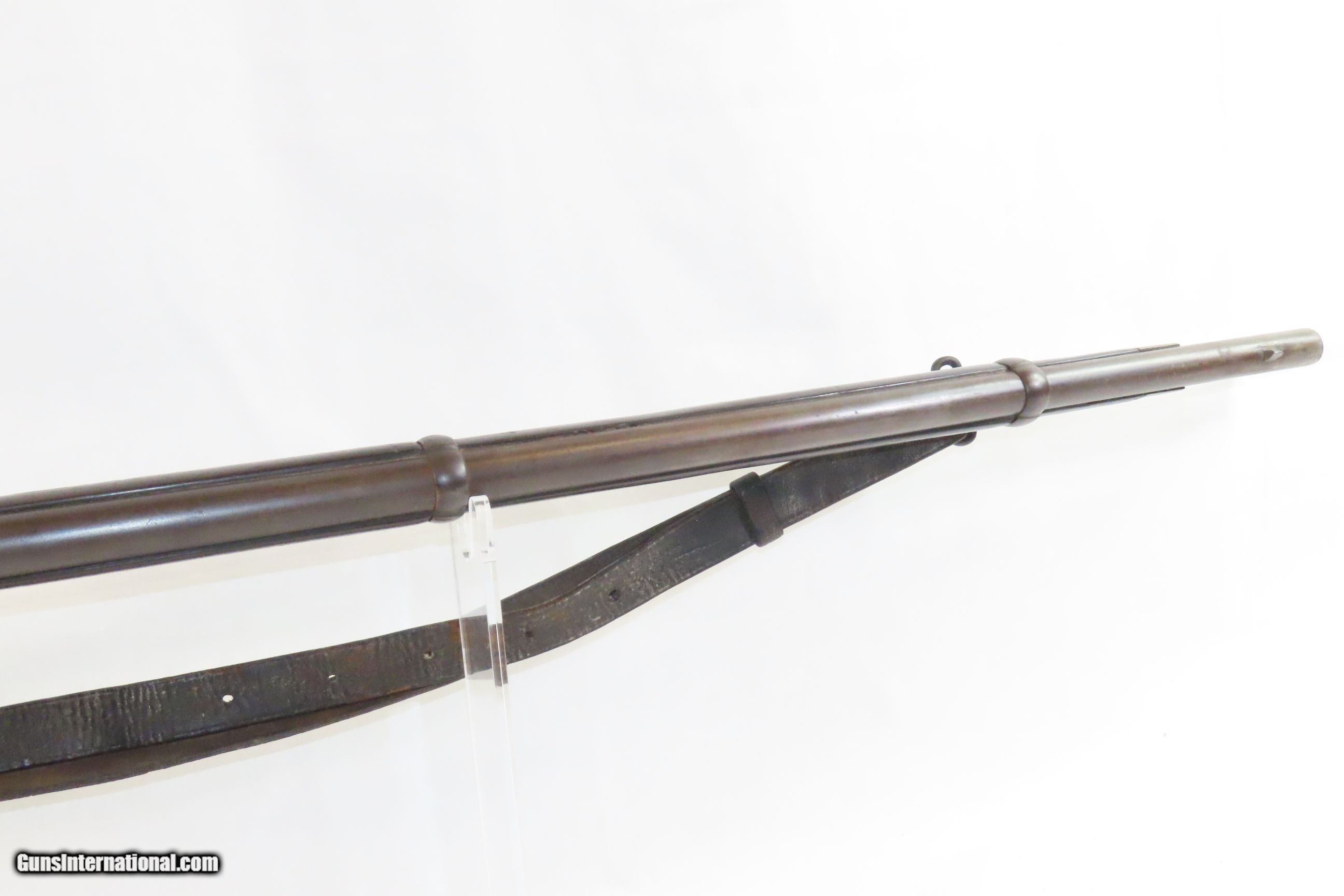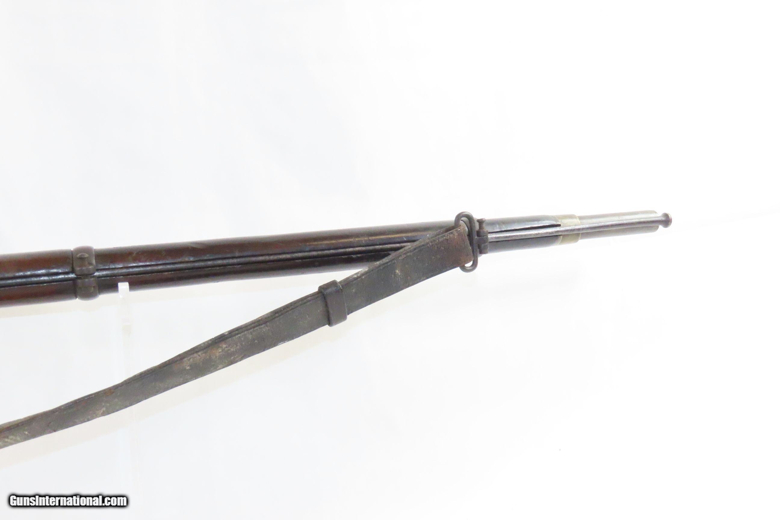 Description: Commercial Pattern 1853 ENFIELD Infantry Rifle-Musket Antique Tower .577 CW BIRMINGHAM SMALL ARMS TRADE w/BAYONET & SLING Here we present an antique Enfield Pattern 1853 Three Band Rifle-Musket, made in 1863 in England. The P53 was the British Military Ordnance Board’s choice for adoption as the primary long arm in 1853. It was considered the apex European military gun of that time, introduced by the British War Department after several studies to improve the calibers and the dimensions of the previous models. However, it kept the same general appearance of the earlier pattern 1851. The overwhelming majority of P53 Enfield Rifles were made by commercial gun makers in Birmingham and London under contract. The Enfield 1853 rifle-musket was also used by both the North and the South in the American Civil War and was the second most widely used infantry weapon in the war, surpassed only by the Springfield Model 1861 Rifled Musket. The Confederates imported more Enfields during the course of the war than any other small arm, buying from private contractors and gun runners. It has been estimated that over 900,000 P53 Enfields were imported into America and saw service in every major engagement of the war. These were also used in the Crimean War from 1854 to 1856, the Sepoy Mutiny from 1857 to 1858, the New Zealand Land Wars that ended in 1872, and many various other conflicts, especially in colonies in British Imperial possession in the 1850s, 60s and 70s. The overall condition is very good. Nice plum patina. The action is excellent. The bore is in good condition; patinated with strong rifling. The stock is dark and shows two stamps behind the trigger guard as well as a stocker name rearward of those. “A.W.” is stamped on the left stock flat. Stable split at the front of the left stock flat; otherwise solid. Comes with the bayonet, scabbard, and the sling. A nice piece! Own the original! This is a legitimate antique and not a reproduction. Barrel is 39 inches. Caliber: .577 Percussion Overall condition as seen in photos. Very Fast. Very Safe. FREE SHIPPING WORLDWIDE. Delivered directly to your door by express mail! Guaranteed AUTHENTIC & Includes CERTIFICATE OF AUTHENTICITY. ancestryguns $2800 #227854 SOLD Antique: Yes |