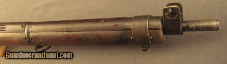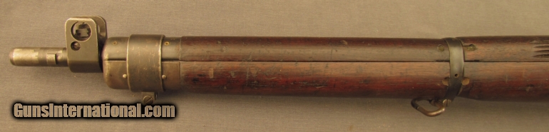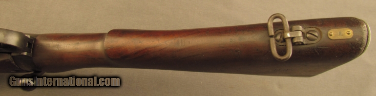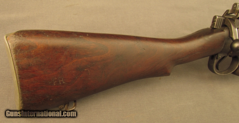 Description: Serial #17L9382, .303 British, 25” barrel with an excellent, bright bore. This 1942 dated rifle has retained about 90% plus of the original blue finish with some mild silvering and fading at the muzzle and along the exposed edges and high points. The matching numbered bolt has a similar amount of blue present with some streaks along the now pewter gray body and some very mild fading on the handle and safety lug. The correct two-position rear sight is fitted and the rifle has neither an import stamp, nor any British proofs. The walnut stock and furniture are in fine condition with several minor handling marks and small surface blemishes marring the otherwise very good-near fine armory re-applied military oil finish. The forend and Canadian marked barrel band have been modified to accept an Indian rifle grenade sight mount. There are some faint initials scratched into the wood on the right side of the buttstock, as well as a crisp “FR” stamp as well (“FR” is an Indian rework mark, applied most likely when the grenade sight modifications were added). A single unnumbered magazine is included which is in matching condition. This is a handsome, war dated, early production Canadian rifle and rates fine plus condition overall. {Refs. “The Lee-Enfield A Century of Lee-Metford & Lee-Enfield Rifles & Carbines” by Ian Skennerton; 2007; and “India's Enfields” 4th Edition by Robert Edwards; 2003} FFL or C&R SOLD Manufacturer: Enfield Model: No.4 Serial Number: 17L9382 Caliber Info: .303 Gauge Info: .303 |