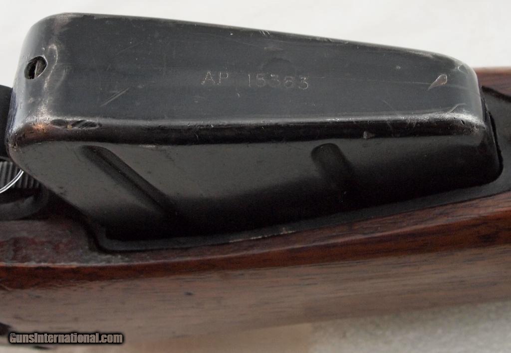 Description: Enfield #4 MKI, .303 BRIT, 24" bbl, shiny bore, good rifling, blued finish, adjustable rear peep sight, military wing front sight, numbers match on receiver - bolt lever - stock - strap - magazine, sling loops, and steel butt plate with compartment door. This is a nice rifle. See pictures. Add 3% for Credit Card Shipping $25.00 SOLD |
